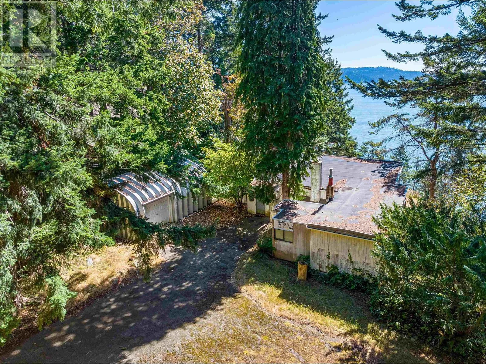 Have you been searching for trophy waterfront property for your family legacy home only 45 minutes commute from Downtown Vancouver? 1.049 Acres in exclusive Queen Charlotte Heights offers many options for siting a spectacular home featuring forever south views to Passage Island. The original 3-bedroom rustic cottage is enjoyed as a weekend retreat for over 40 years by current owners. True Cabin vibe features exposed log beams and wood stove, while the huge deck is a showstopper with Orca sightings seasonally. A steel structure garage/workshop is ready for your island toys or your contractor to have security for tools and power. This is an opportunity to create your own personal paradise on idyllic Bowen Island. Extremely private lot, yet an easy hike down to Snug Cove and trail through Crippen Park steps from your level driveway. This unique offering for the ultimate west coast lifestyle awaits your vision. Municipal water and septic in place. Act now and enjoy for decades to come. Viewings only by appoint. (id:27476)