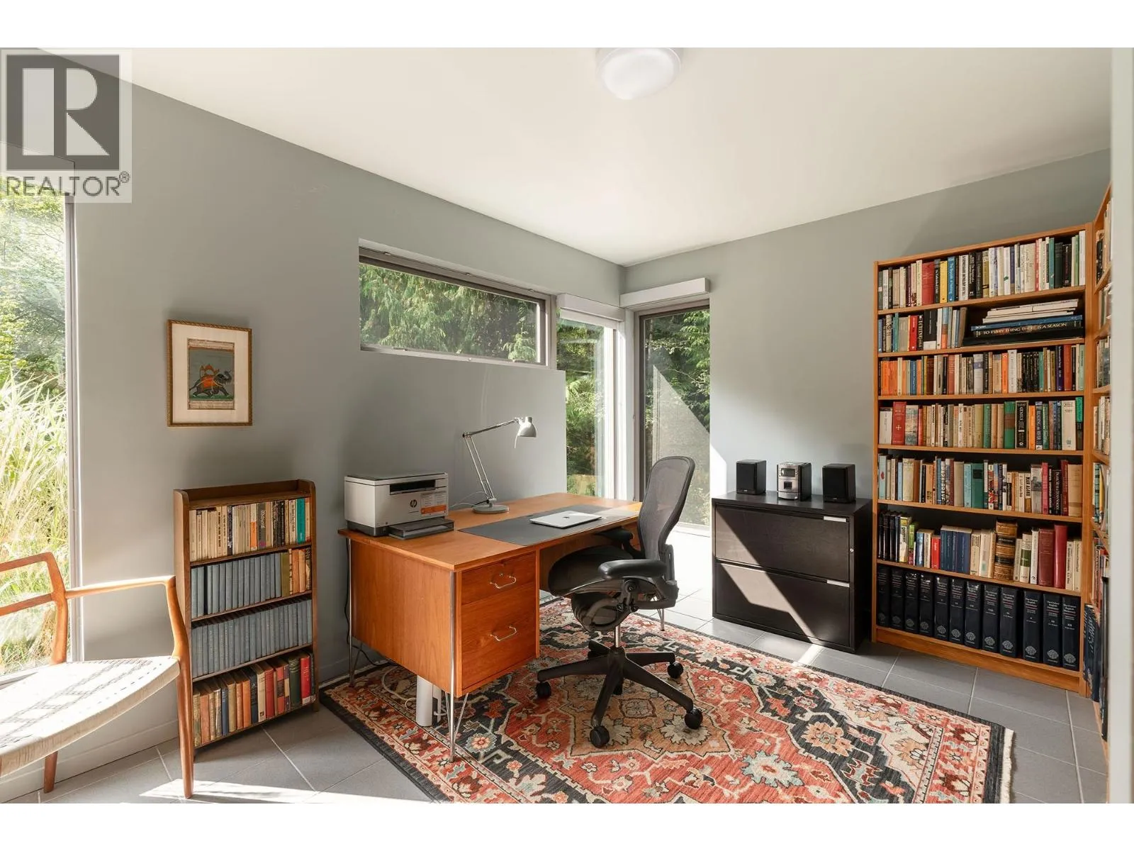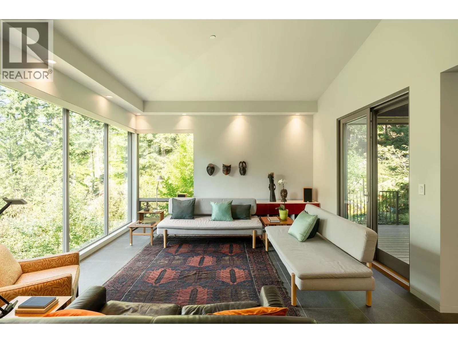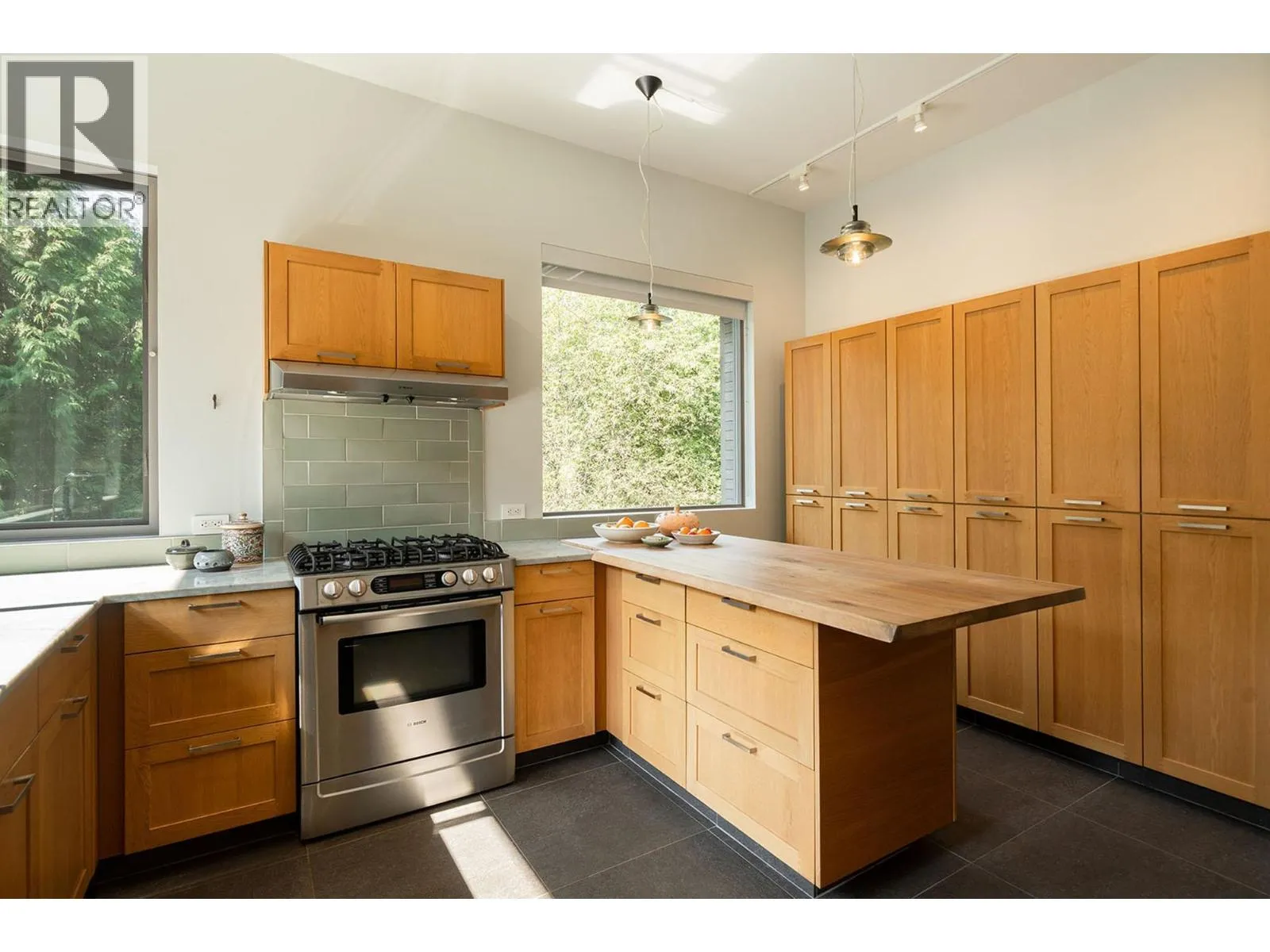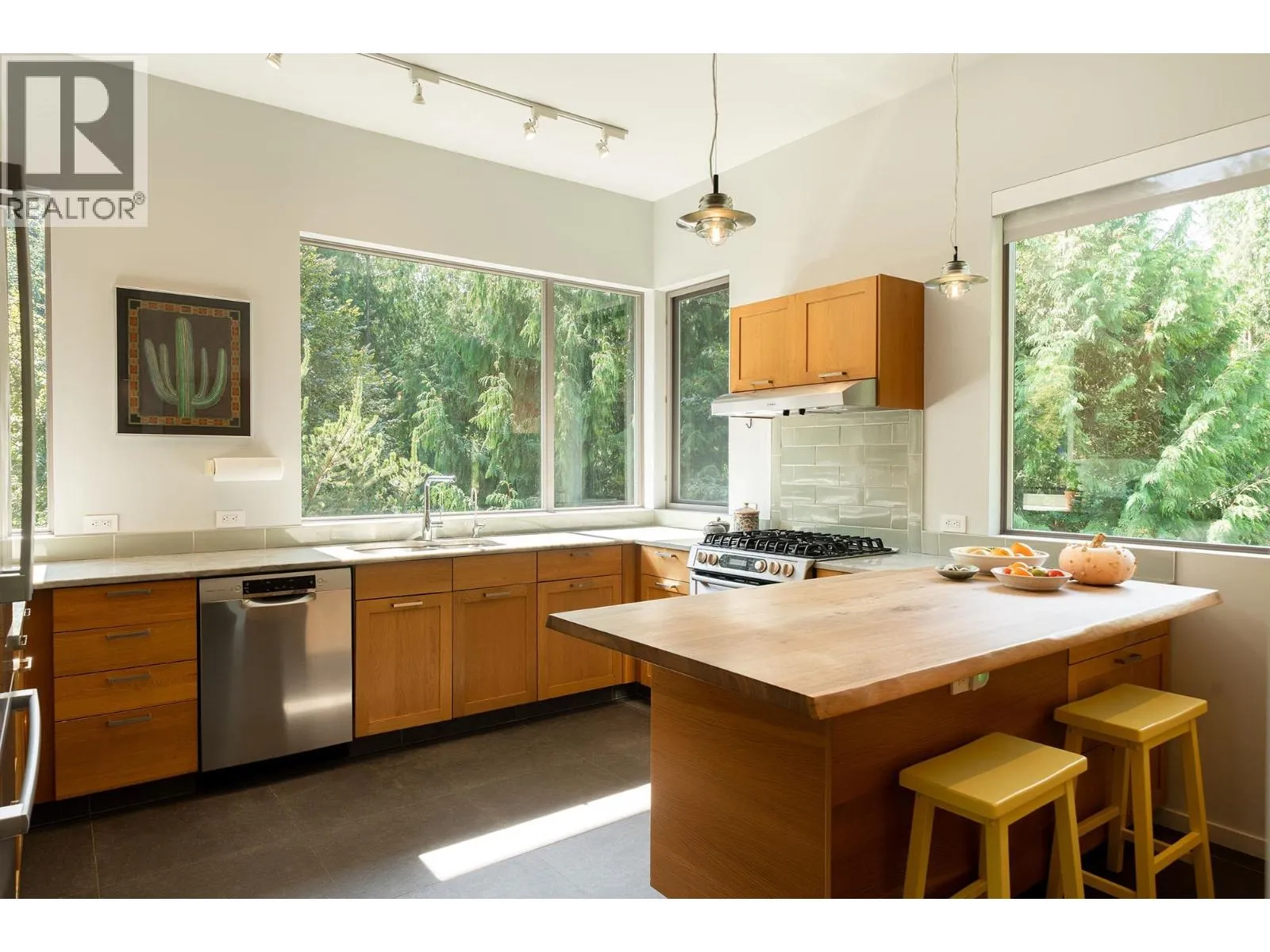 Tucked away from the road among a mature, flourishing garden this exquisite designer home will have you in a zen state of mind from the moment you arrive. Japanese influences are evident with the use of radiant heated stone and tile flooring, clean lines, and purposely placed windows to bring the outside in. The primary bedroom features a spa-like ensuite with limestone shower tiles & counters (with fossils!). The indoor Finnish dry sauna completes your daily relaxation ritual. The flexible floor plan includes multiple rooms that can be bedrooms, art studios, or offices. Outdoor spaces include a sunny south-facing deck off the kitchen and another deck off the living room with access to the backyard. In the terraced garden flowering trees and shrubs, roses, a multitude of perennials, plus numerous fruits and vegetables fill the eye with endless beauty. When you´re ready for a swim just walk down the street to intimate King Edward Bay Beach where access is only 60m (approx.) from the end of the driveway. (id:27476)