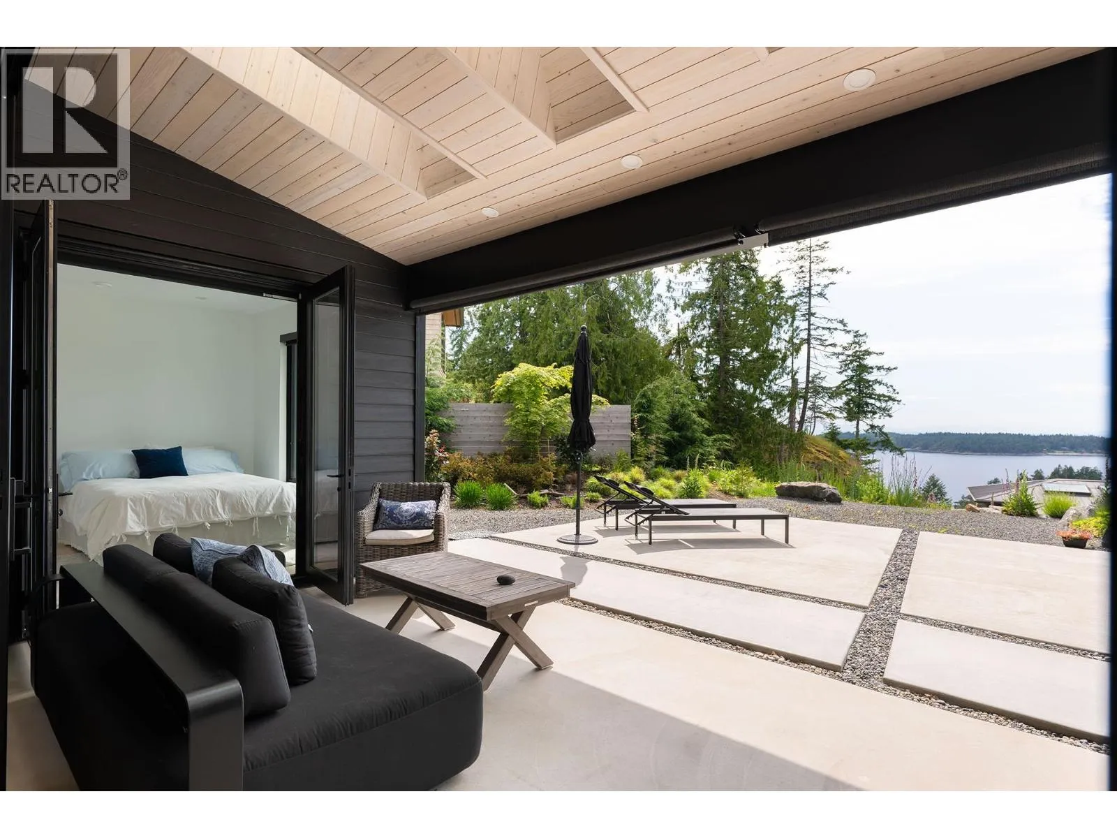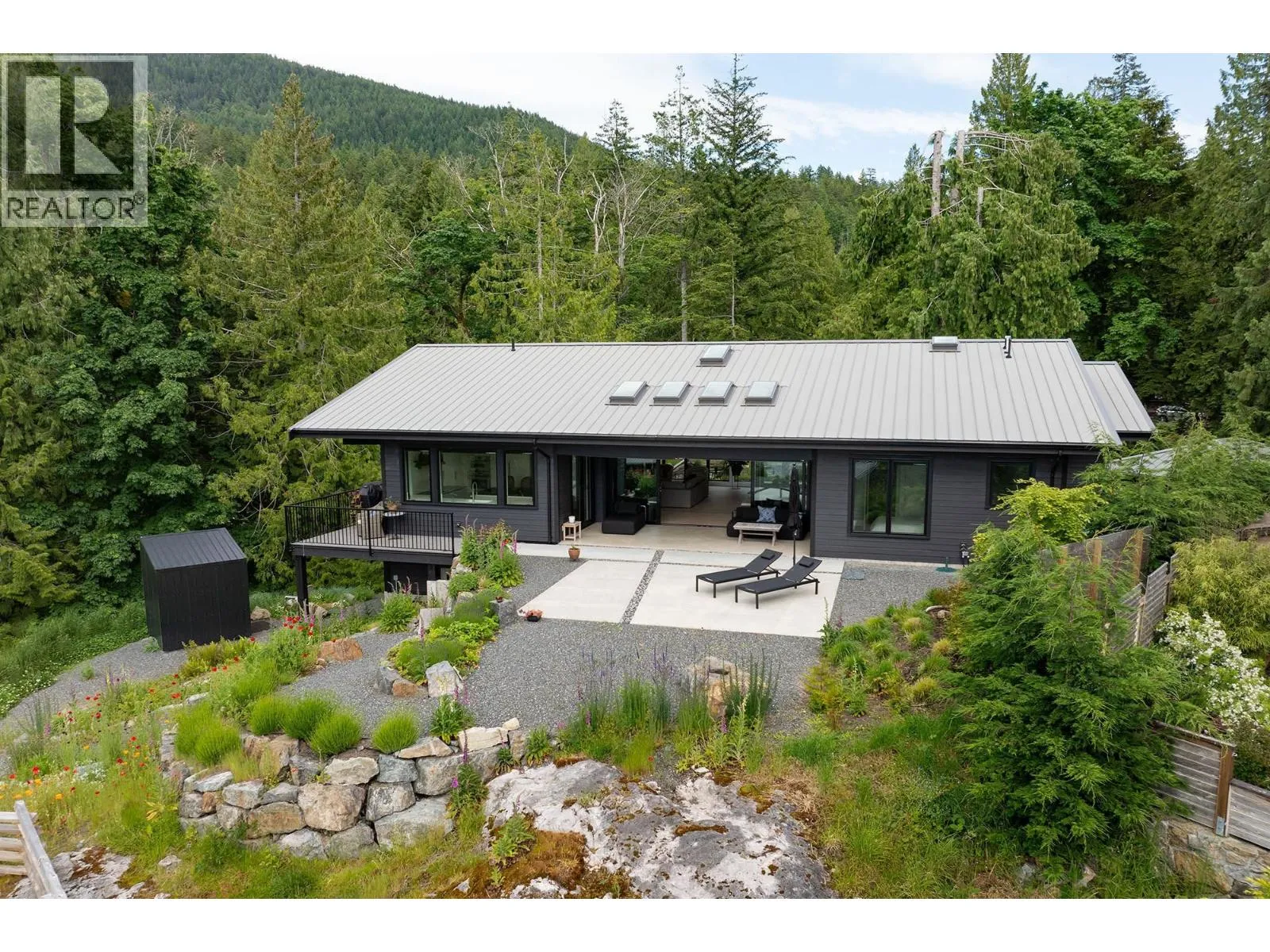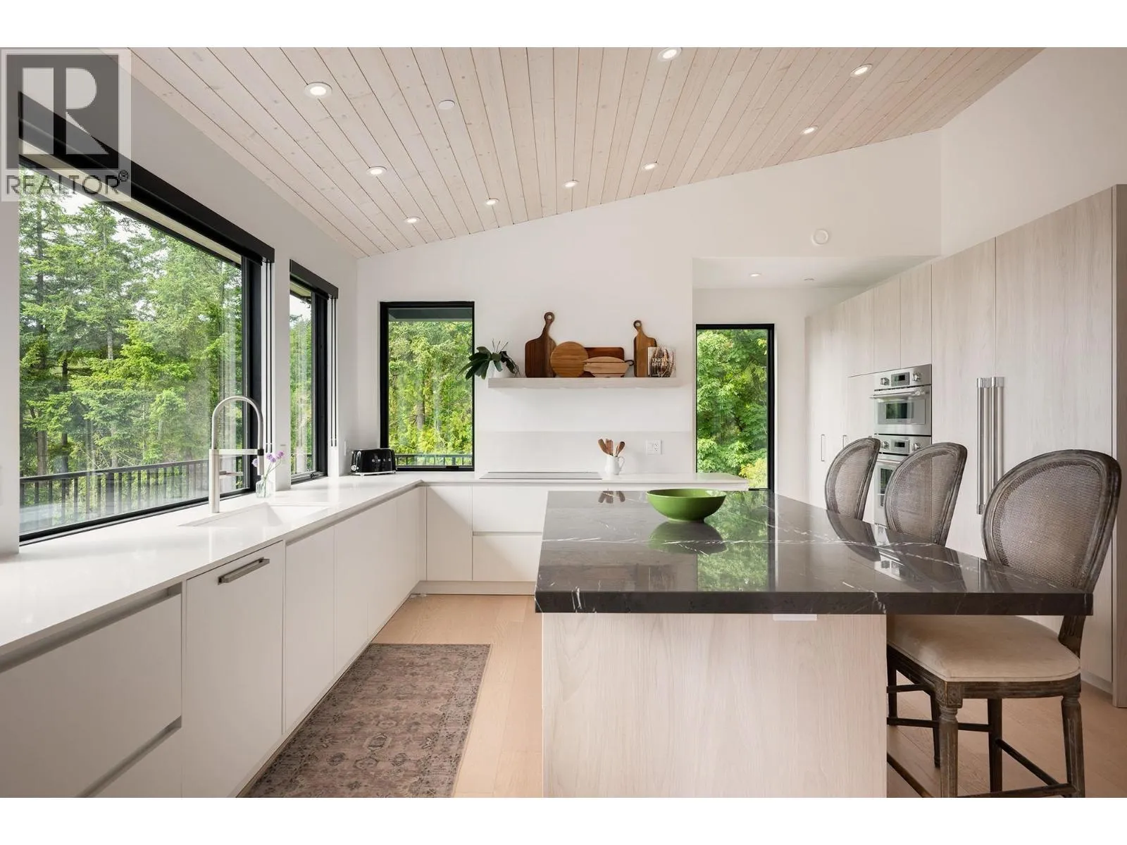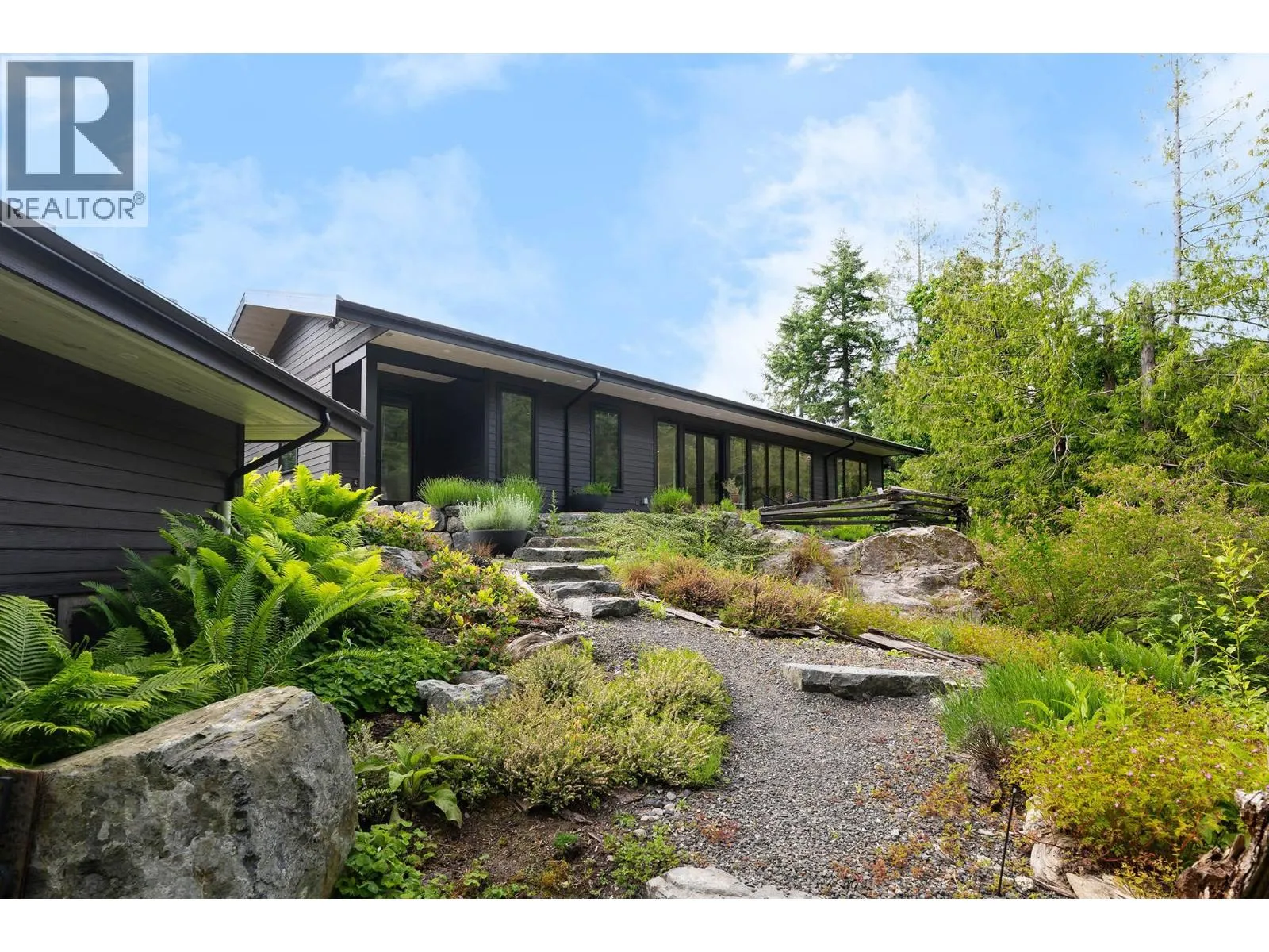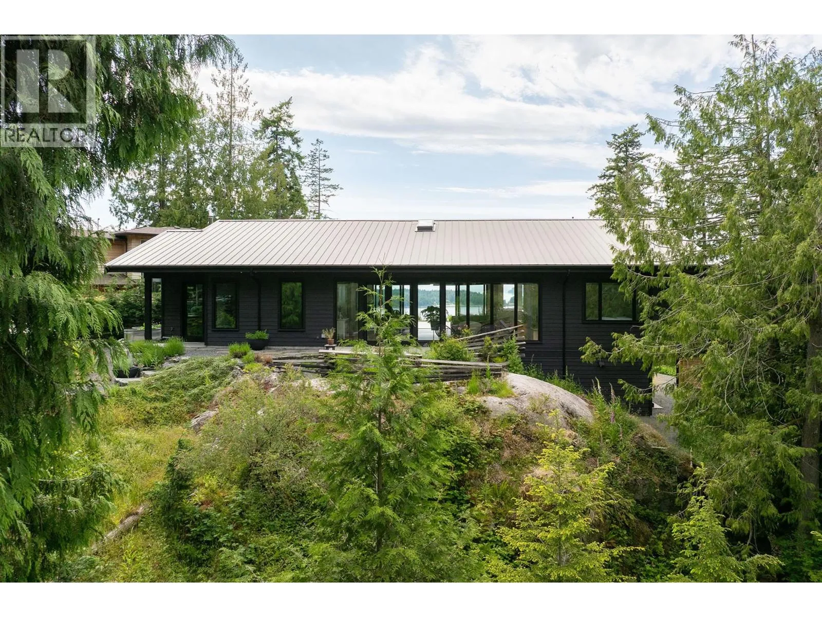 An elegant blend of luxury and sustainability is showcased in this 2022 custom home on the west side Bowen Island, where the ever-changing coastal views are mesmerizing. Designed to focus on healthy living with maximum natural light, the house features a multitude of skylights, high ceilings, and tall windows, most of which open. When it´s too hot or too cold allow the HRV (with HEPA filter) and radiant heated AND cooled flooring (controlled by a heat pump) keep your space just as you like it. During a power outage there´s significant backup with room for more. Built using FireSmart principles, there is fibre cement board cladding, drought-tolerant landscaping, minimal use of wood, and a metal roof that collects rainwater into cisterns (4500 gallons) for a state-of-the-art water treatment system that provides potable water. Surrounded by mature forest with hiking trails at your doorstep, and where world-class ocean & island views take center stage, you will feel privileged to make your home here at Evergreen. (id:27476)