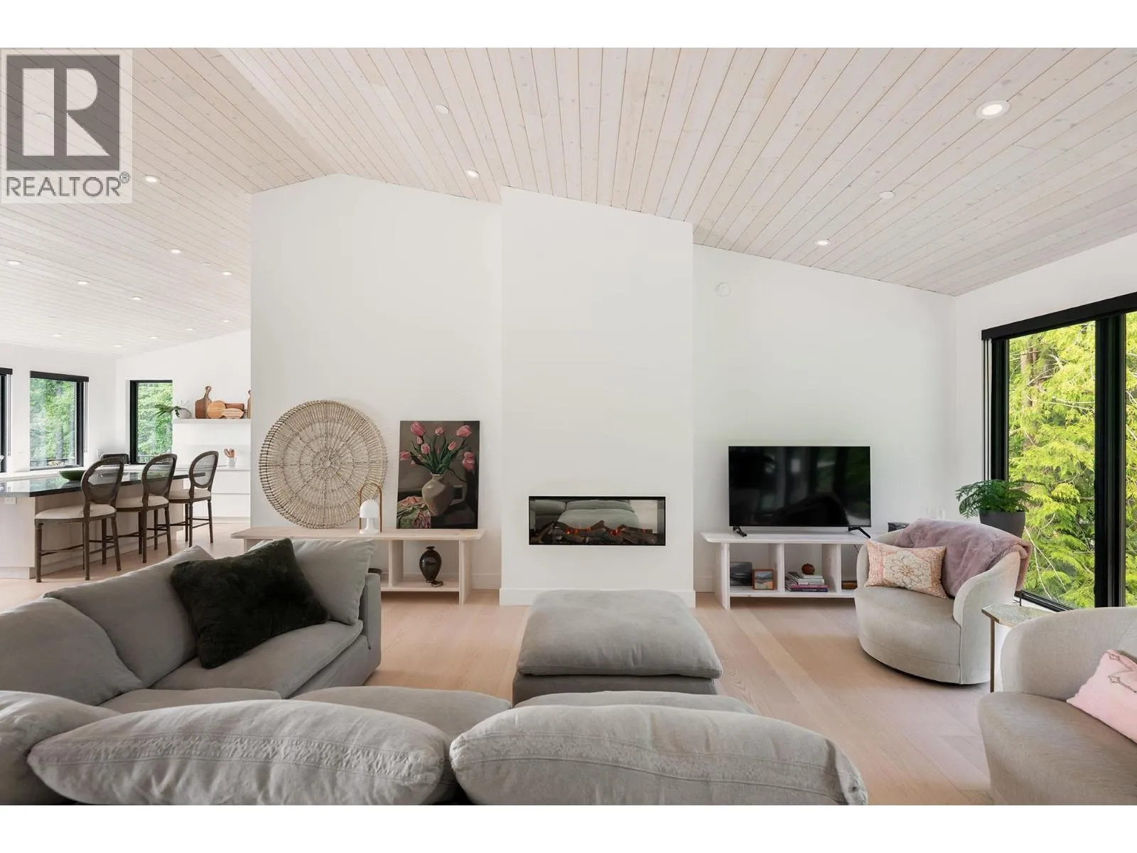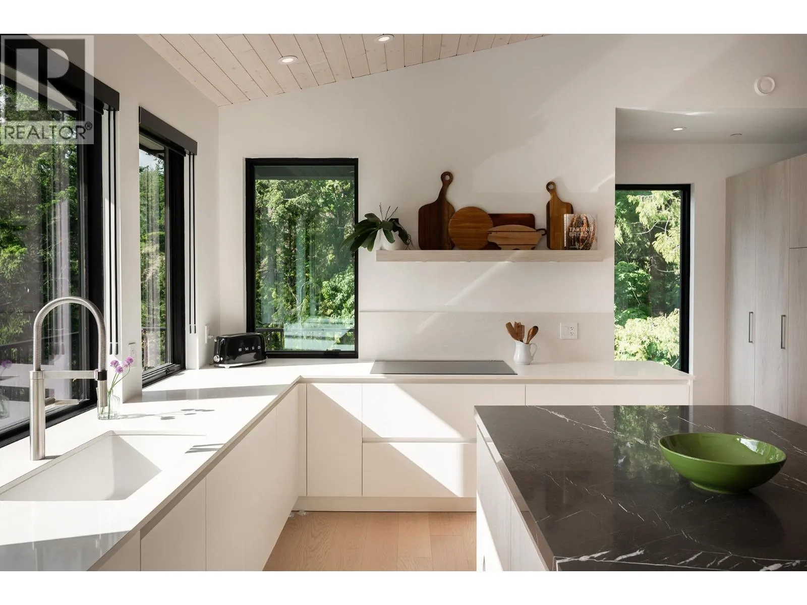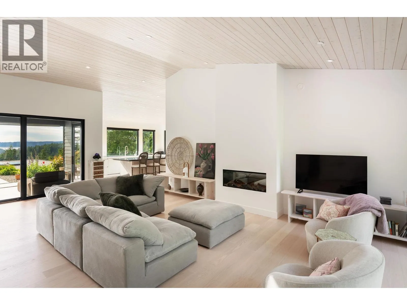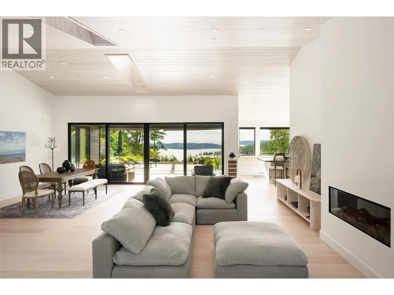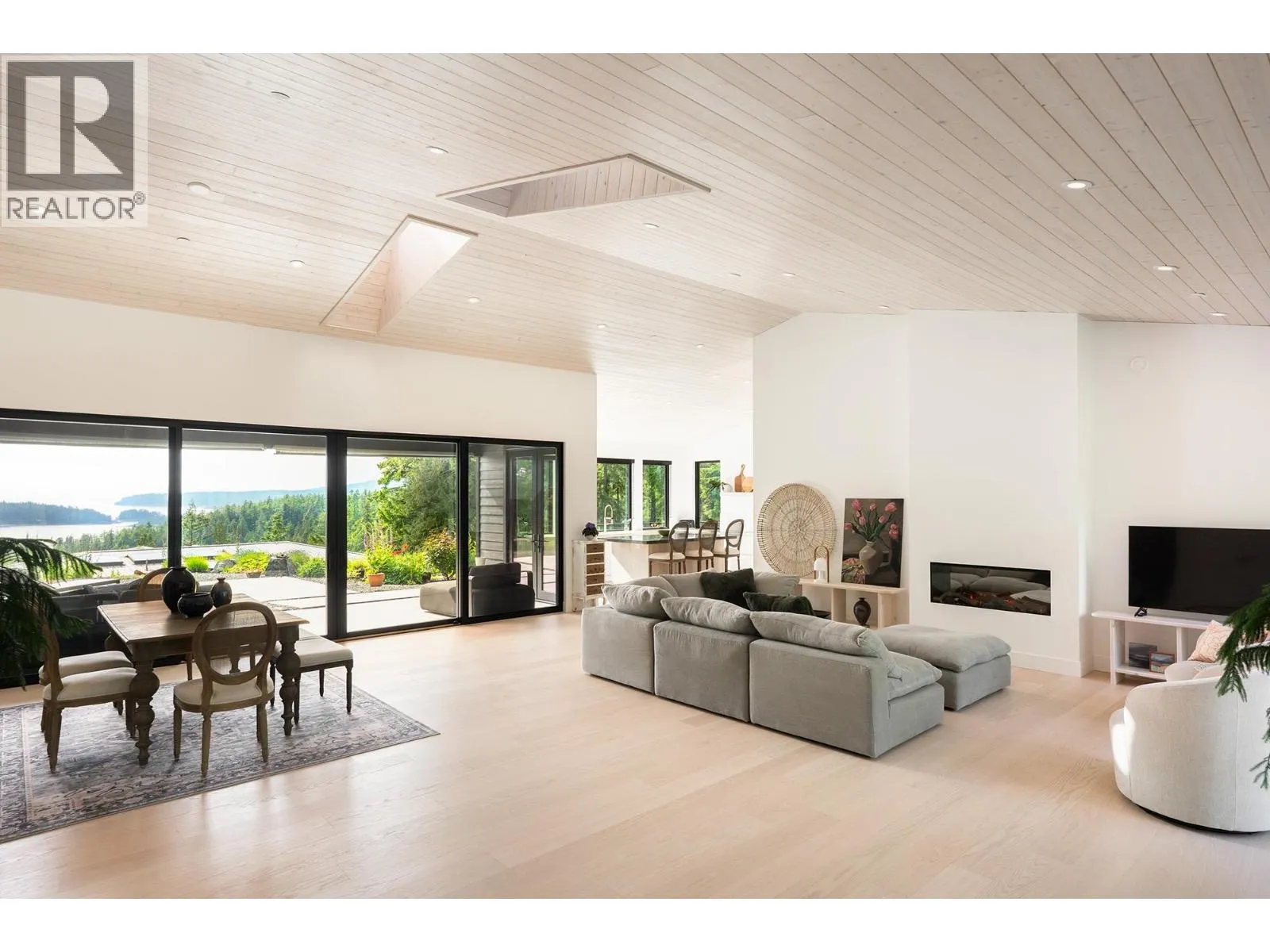 An elegant blend of luxury and sustainability is showcased in this 2022 custom home on the west side Bowen Island, where the ever-changing coastal views are mesmerizing. Designed to focus on healthy living with maximum natural light, the house features a multitude of skylights, high ceilings, and tall windows, most of which open. When it´s too hot or too cold allow the HRV (with HEPA filter) and radiant heated AND cooled flooring (controlled by a heat pump) keep your space just as you like it. During a power outage there´s significant backup with room for more. Built using FireSmart principles, there is fibre cement board cladding, drought-tolerant landscaping, minimal use of wood, and a metal roof that collects rainwater into cisterns (4500 gallons) for a state-of-the-art water treatment system that provides potable water. Surrounded by mature forest with hiking trails at your doorstep, and where world-class ocean & island views take center stage, you will feel privileged to make your home here at Evergreen. (id:27476)