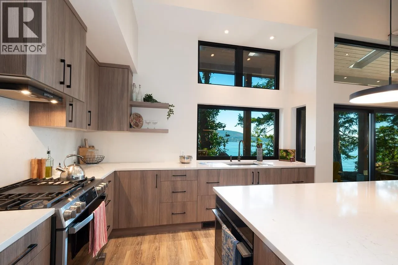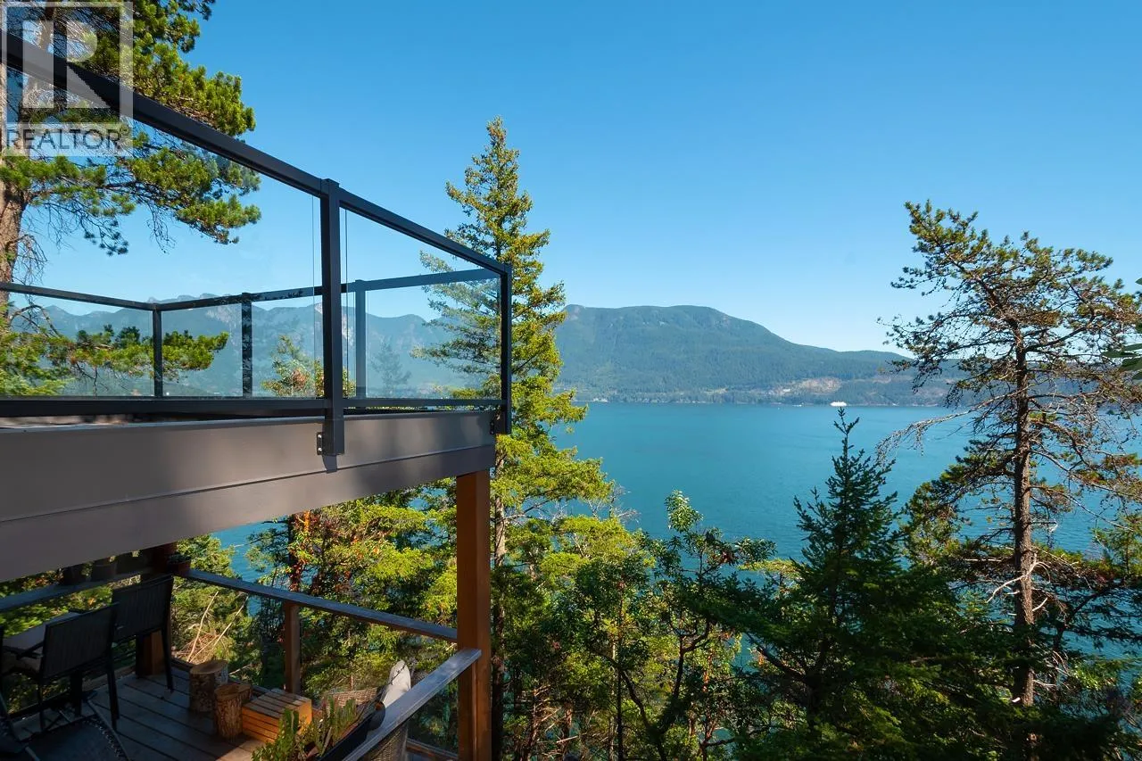 This 2022-built waterfront Bowen Home is perched with perfection upon the bluffs of Eaglecliff. Facing east/south east, with stunning views of Howe Sound to the North Shore Mountains/Sea To Sky Corridor. Level entry, with the main portion of the home featuring 2-3 bedrooms, high ceilings, and an open plan LR/DR/Kitchen that opens out onto a beautiful patio complete with water feature. Downstairs is a one-bedroom legal suite with separate entry, laundry and covered patio with its own superb view. The flat front yard has a prepped possible location for a garage/carport. Close to Baker and Eaglecliff Beaches, and only a five minute drive to Snug Cove. (id:27476)