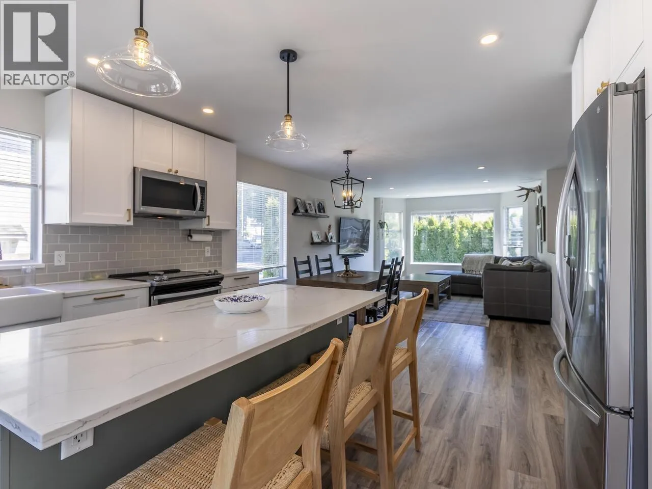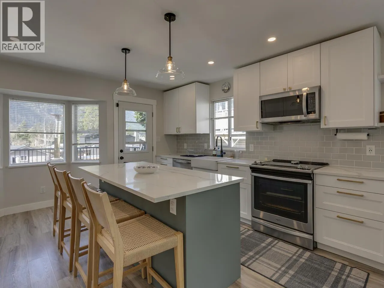 The best Brackendale homes just feel right the moment you walk in. This one opens into a thoughtfully designed custom kitchen built for everyday living and entertaining - quartz island, farmhouse sink, seamlessly open to the living room. Both bathrooms are fully renovated with heated tile floors. The primary bedroom has a walk-in closet and steps out to a private east-facing deck. Out back, a custom sauna, fire pit, and mountain views make the yard somewhere you'll spend your days and evenings. A self-contained suite with its own private gated yard handles the mortgage without getting in your way. Gas is already run for a heat pump, a future fireplace, and outdoor entertaining. Lane access if you want to build further. The kind of home Brackendale delivers when everything comes together (id:27476)