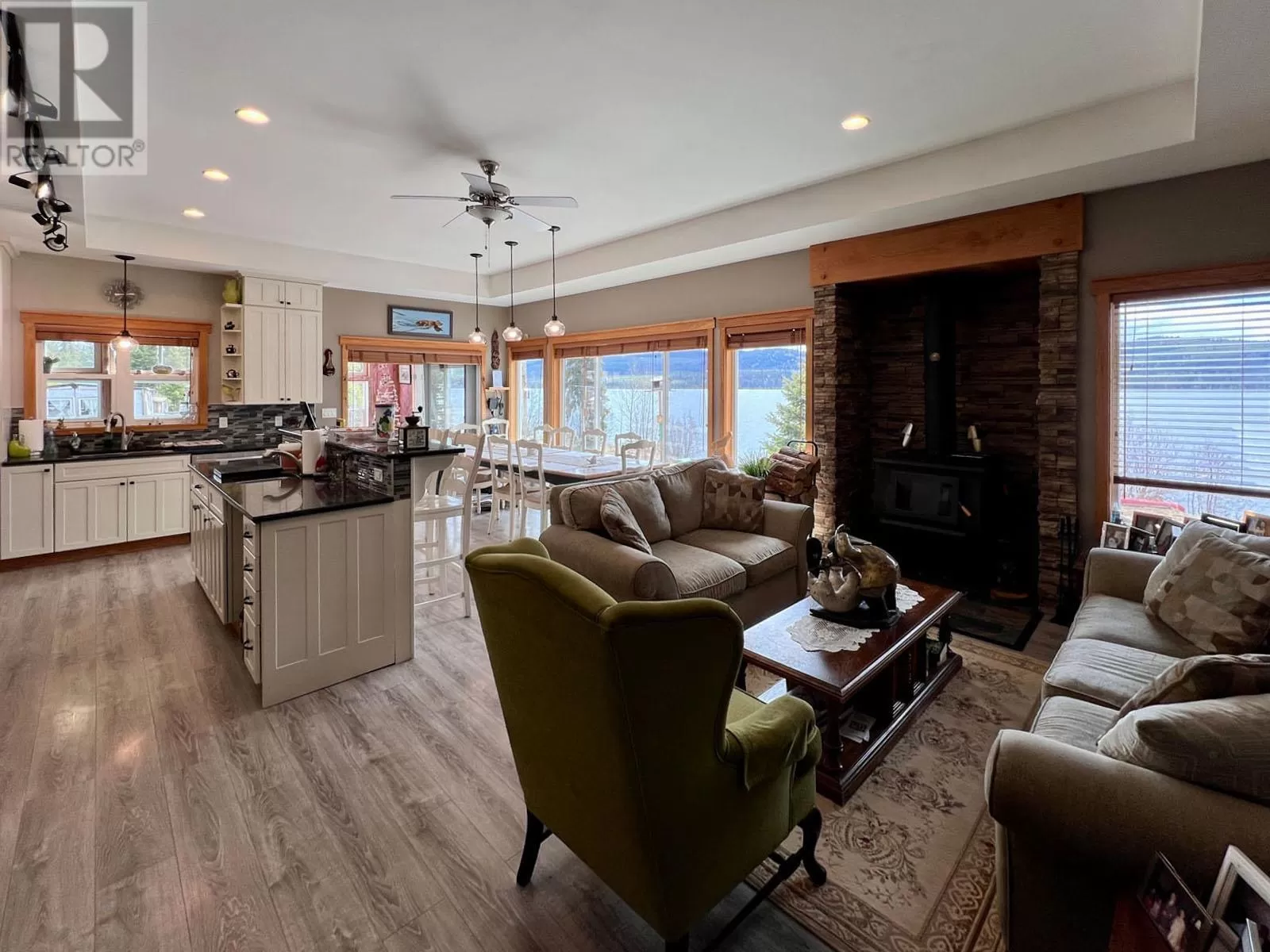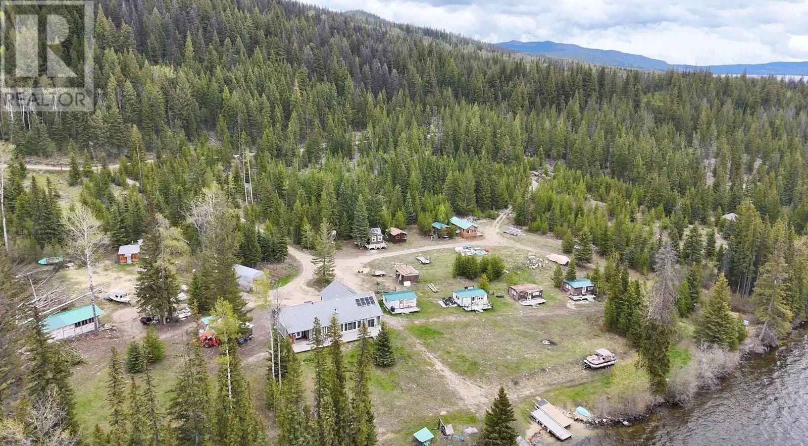 Lakefront getaway offering 7.1 acres & 800' of frontage on Bonaparte Lake (largest undeveloped lake in TNRD). Crowned by an 1,820 sq ft custom built home with panoramic views, modern kitchen & enormous outdoor living space. This 2- bedroom, 2-bathroom home is both functional & modem yet cozy & welcoming. With a wood stove, laundry, solarium and additional sleeping options, the home is the perfect entertainment space. The property offers 8 cabins (5-good condition), washhouse, shop & underground cold storage. Serviced by 3 registered septic systems the property does have commercial options with its Lake Resort zoning. The shoreline is gentle allowing you to launch boats from the property. Dock systems are in place to moor fishing boats and bring your catch onshore. Ample wildlife. (id:27476)