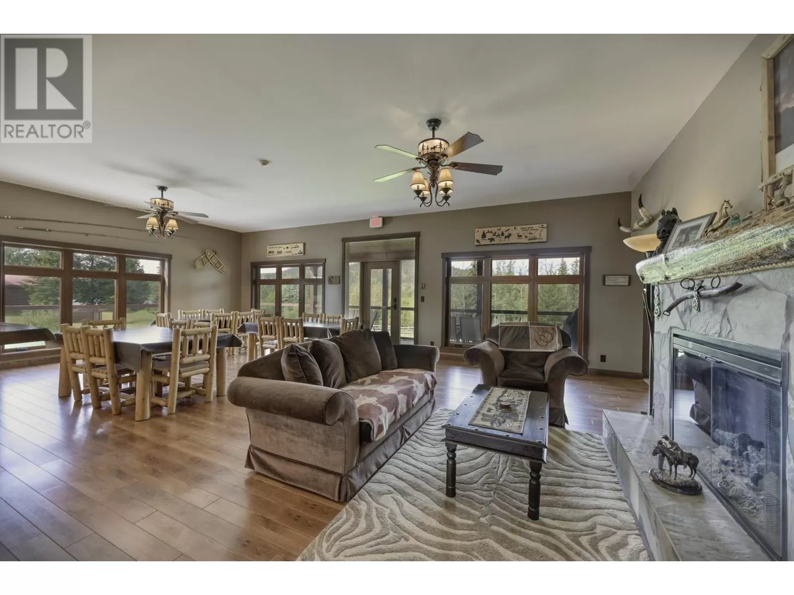 Discover Your Private Lakefront Paradise. Escape to an extraordinary 285-acre lakefront retreat, a truly secluded gem surrounded by vast Crown Land in British Columbia. This unique property boasts a private lake and miles of pristine trails, offering unparalleled privacy and endless adventure for outdoor enthusiasts. This professionally certified guest ranch is currently a private residence, but comes turnkey with all furniture and equipment included, ready to continue its successful operation as a commercial lodge or your personal sanctuary. The extensive accommodations feature a spacious 9-bedroom guest lodge with 6 ensuite bathrooms, plus two charming guest log cabins. A cozy log home with 2 bedrooms & 2 bathrooms completes the picture, bringing the total to 13 bedrooms & 13 bathrooms across the estate. Beyond the ample sleeping quarters, the property offers exceptional amenities for entertainment and recreation. Enjoy a dedicated games room and five kitchens, incl. fully equipped commercial kitchen. (id:27476)