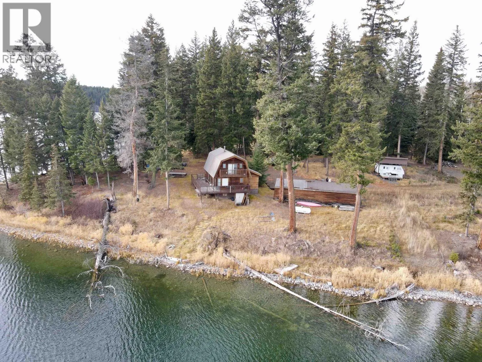 Court ordered sale. Extremely rare 700ft of relatively flat waterfront on Bridge Lake on 2.2 acres. Property has a cozy, two-bedroom, two-bathroom, three-3 storey cabin with metal roof and wrap around deck. Approximately 40 minutes east of 100 Mile. This home offers a primary bedroom with an ensuite, open-concept kitchen and living area perfect for family vacations. Fully covered RV trailer area with a wrap around deck, perfect for kids or extra guests. Lots of room and privacy. Zoned RR3. These types of waterfront properties do not come around very often. Schedule A to accompany all offers. (id:27476)