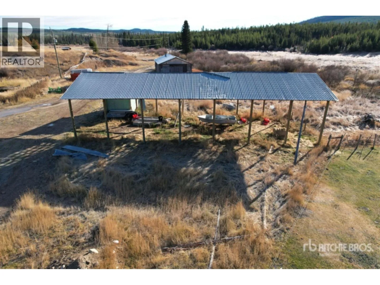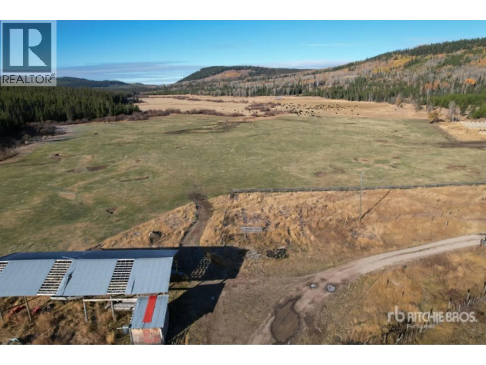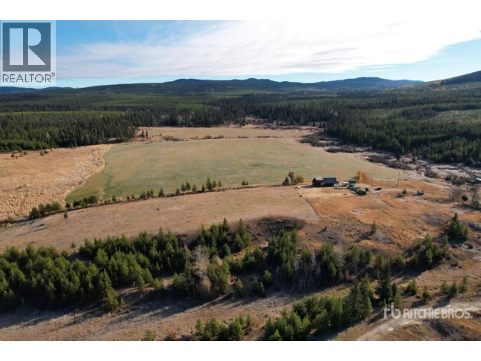 Tucked in a private high-country valley 25 km south of Bridge Lake, Red Creek Ranch captures the timeless beauty of the Cariboo-Thompson region-broad natural meadows, clear running water, and open range rising toward the mountains. At 3,840 feet and spanning 520 ± acres, the ranch blends hayfields, grazing land, forest, and creek into one naturally abundant landscape. Roughly 340 ± acres support productive hay and pasture ground, offering up to 2,533 AUM. Wild grasses, wetlands, and naturally occurring meadows create a balanced terrain that has sustained livestock for generations. Red Creek provides spring flood irrigation that sustains the valley through summer. Recent upgrades include new fencing, improved corrals, and a modern cattle squeeze with load-out chutes. A modest home, workshop, and hay shed sit along a gravel drive with well water, power, and phone. TO SELL AT RESERVED AUCTION ON OR AFTER MARCH 3, 2026. (id:27476)