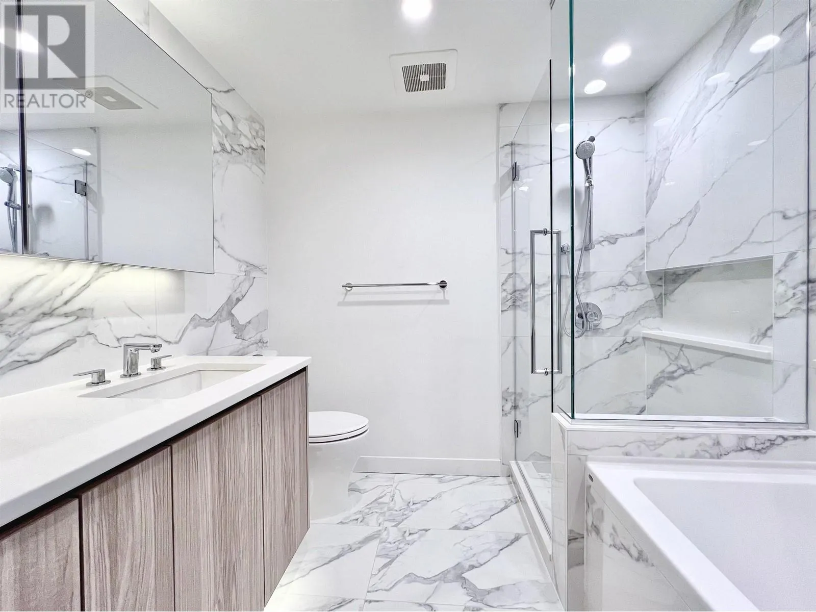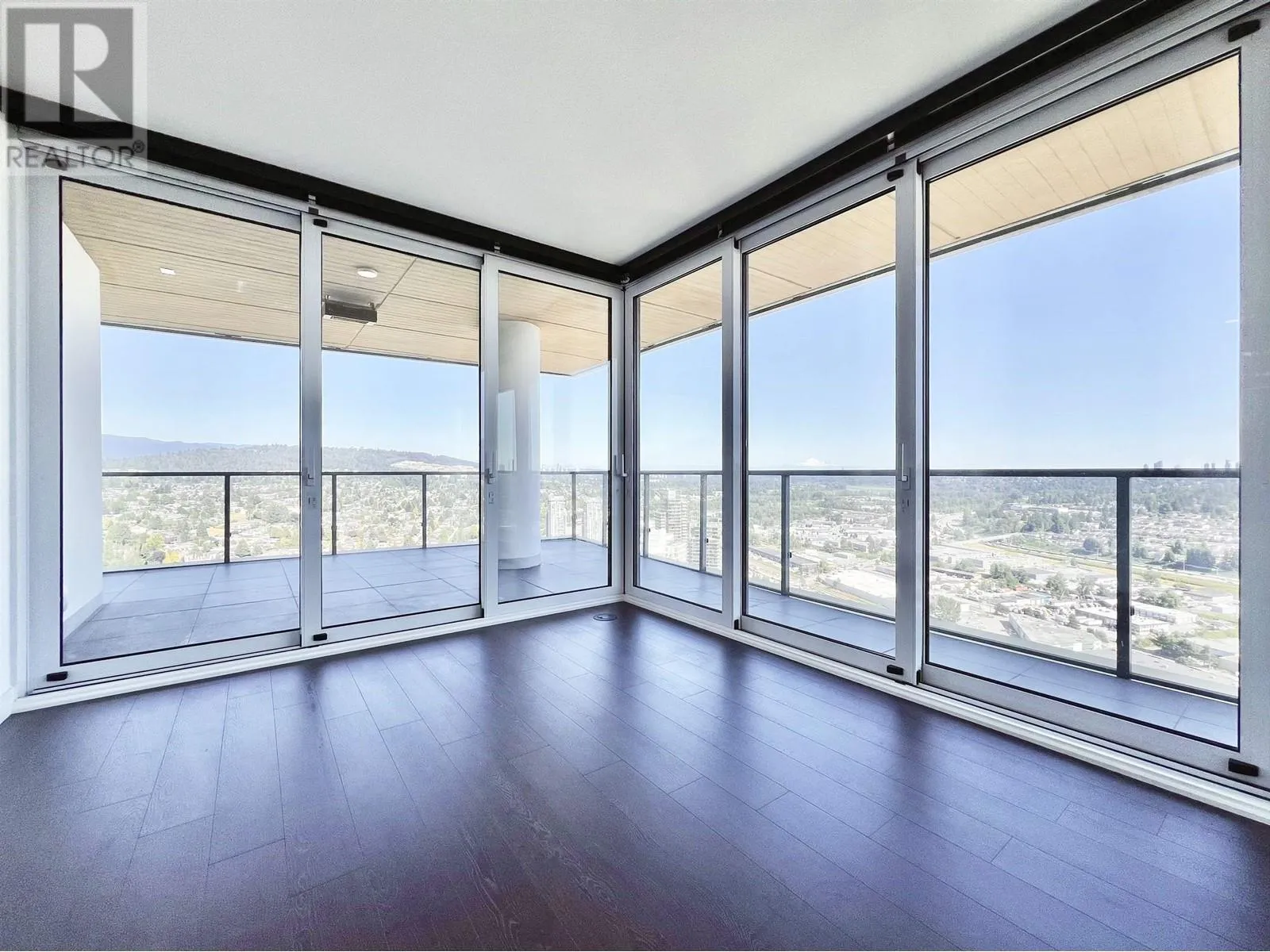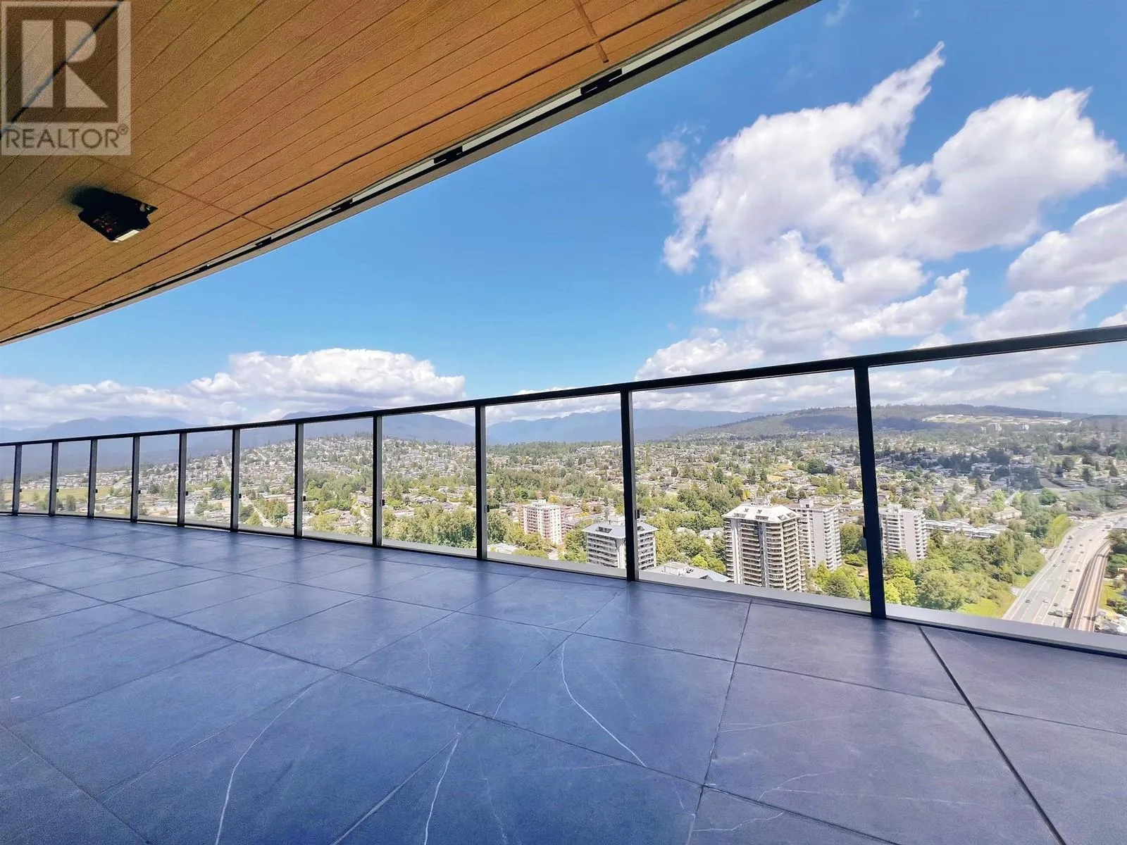 AMAZING views on the 37th floor! This stunning 1,265 sq. ft. 3 Bed 3 Bath North/east/south CORNER home boasts unobstructed panoramic views of the city & mountains. Enjoy seamless indoor/outdoor living accessing 600 sq. ft. of covered & heated wrap around balcony. Premium finishes with A/C, electric roller shades, Bosch appliances with gas cooking, laundry room, & closet organizers. World-class hotel style amenities with 24/7 concierge services. Steps from Brentwood Mall and skytrain station. 2 EV Parking & 1 Locker included. 2-5-10 warranty. Must see! (id:27476)