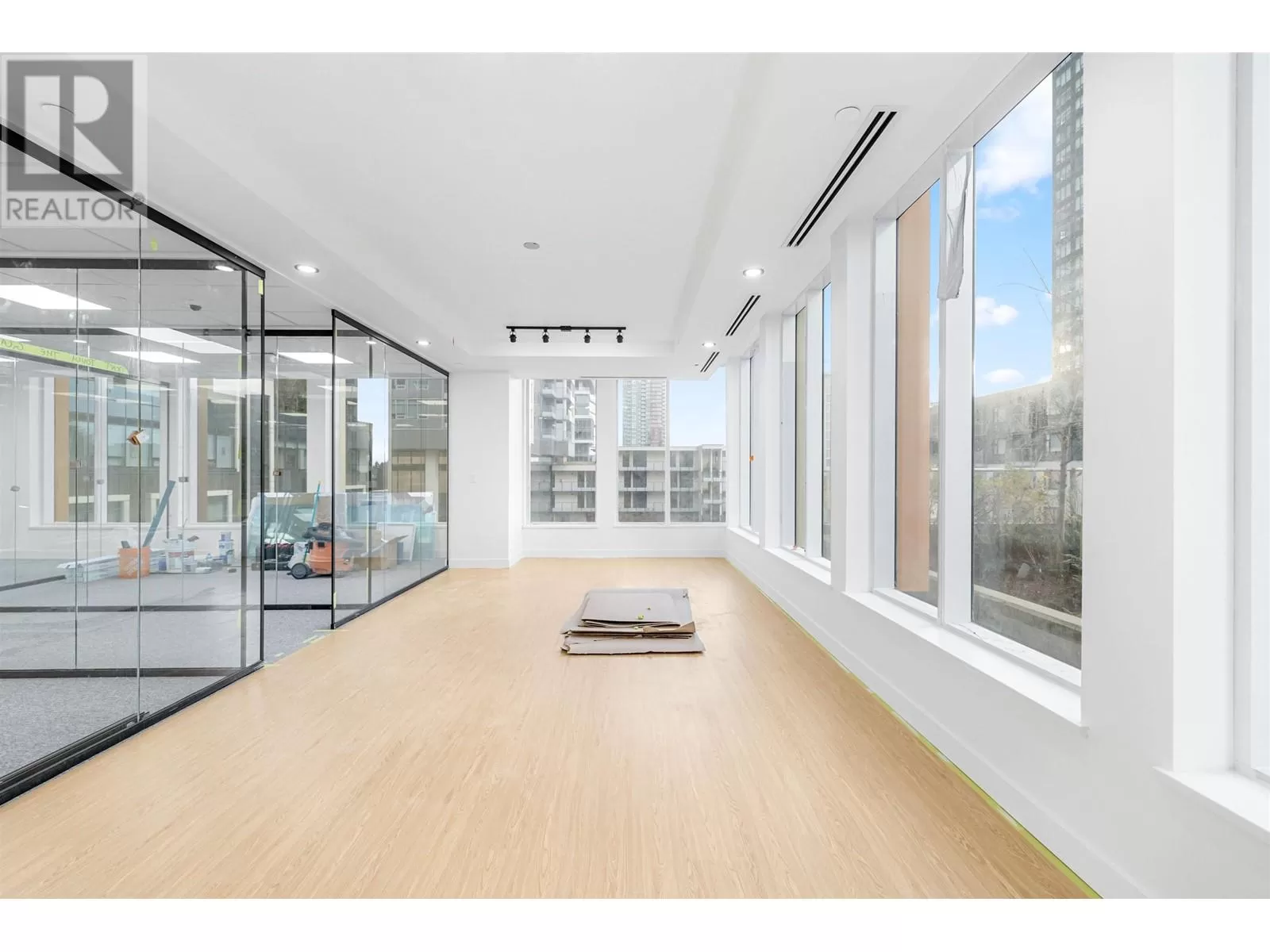 Brand new AAA office space located across from Metrotown and just a 1-minute walk to Skytrain. This bright SE corner unit features high ceilings, floor-to-ceiling windows, and air conditioning. Recently built out with $250K in improvements, including a reception area, kitchenette, glass-enclosed offices, and boardroom. Building amenities include concierge service, 3 elevators, executive boardroom, 5 meeting rooms, a training room, and business lounge. Additional perks include a restaurant, spa, daycare on the third floor, and 2 levels of underground parking. Call agent for details. (id:27476)