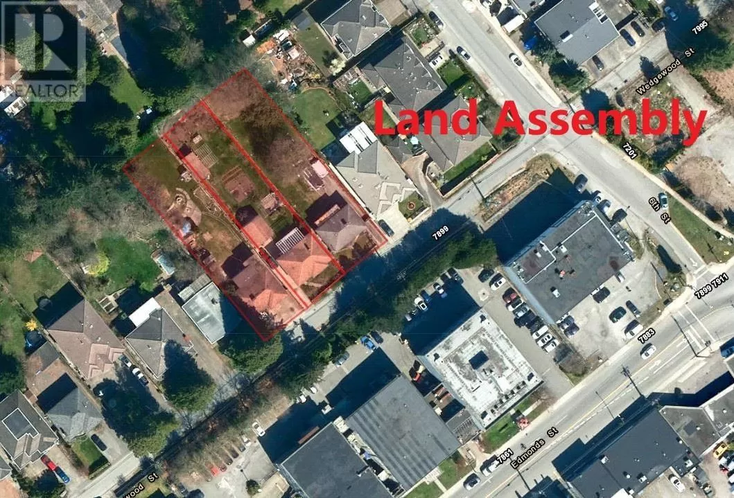 LAND ASSEMBLY - ATTENTION DEVELOPERS! Rare opportunity to acquire a prime development site! Three lots-7843, 7853 & 7863-sold as a package, each lot approximately 50 x 207 sq. ft., totaling 31,050 sq. ft. This site is located next to Edmonds St., and waits to be developed into a 4 storey Apartment building(buyer to verify with the city). Situated in a rapidly growing area with excellent amenities, transit access, and strong future potential. (id:27476)