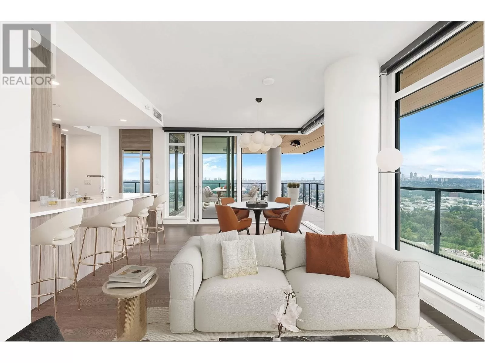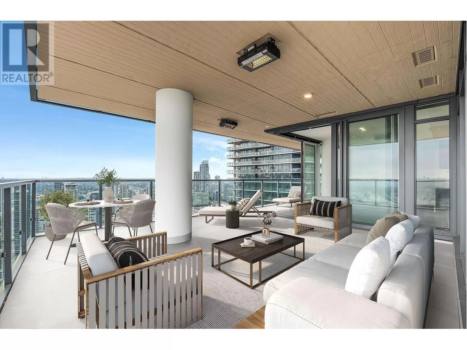 LUXURIOUS HOME IN THE SKY!! The top end high-rise apartment unit was finished by the most famous developer Concord Pacific with the best craftsmanship!! South facing unit with the best layout!! Whatever you can imagine in a most contemporary home are all included in the unit: 9 feet high ceiling, central air conditioning, best branded appliances, over 500 sf tiled balcony (largest in the whole building) with out-door heaters, most functional floor plan with separate 2 bedrooms on opposite sides of the unit. Great location, steps to skytrain station, Brentwood Shopping Mall, elementary school. This shall the best new home you've been looking for!! Open House 2:00 to 4:00 pm on March 2. (id:27476)
