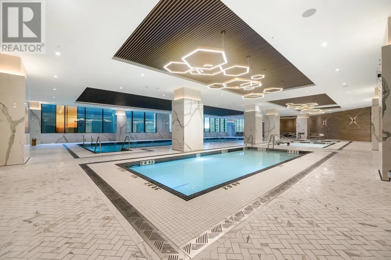 Welcome to Luxury Living! Situated on the 57th floor of Burnaby's tallest building, this exquisite 2-bedroom, 1-bathroom home features an open-concept layout and a spacious private balcony that offers amazing unobstructed panoramic views of the city, mountains, and ocean. Air conditioning for your comfort. The beautiful gourmet kitchen is equipped with a Blomberg refrigerator, Fulgor Milano gas cooktop, and custom cabinetry. Experience tons of exceptional amenities including pools, sauna, hot tub, fitness center, golf simulator, bowling alley, basketball court, playground, private theater, karaoke room, and social lounges. Its unbeatable location provides easy walking access to shopping, restaurants, and the SkyTrain. Call now to make it yours! (id:27476)