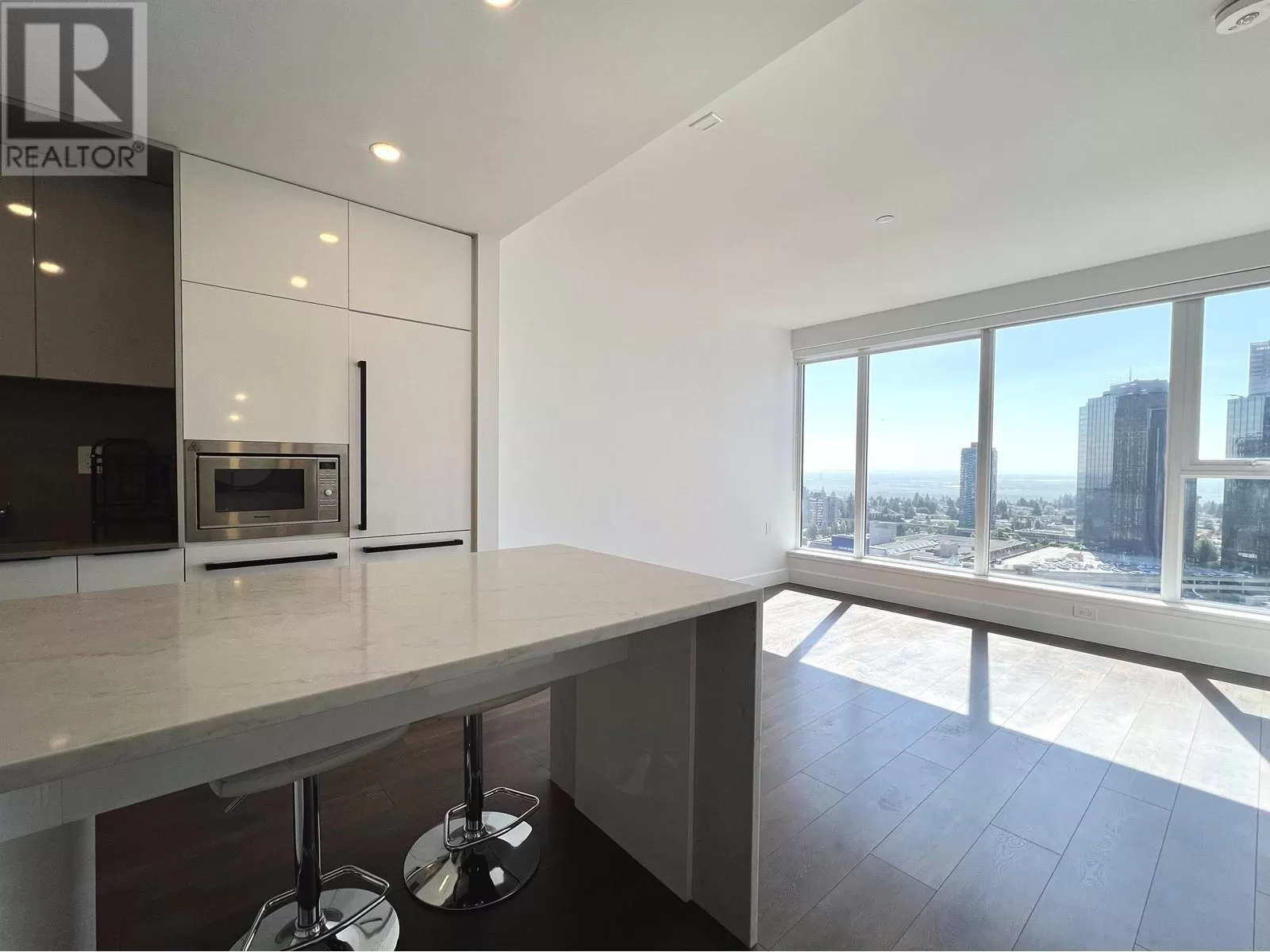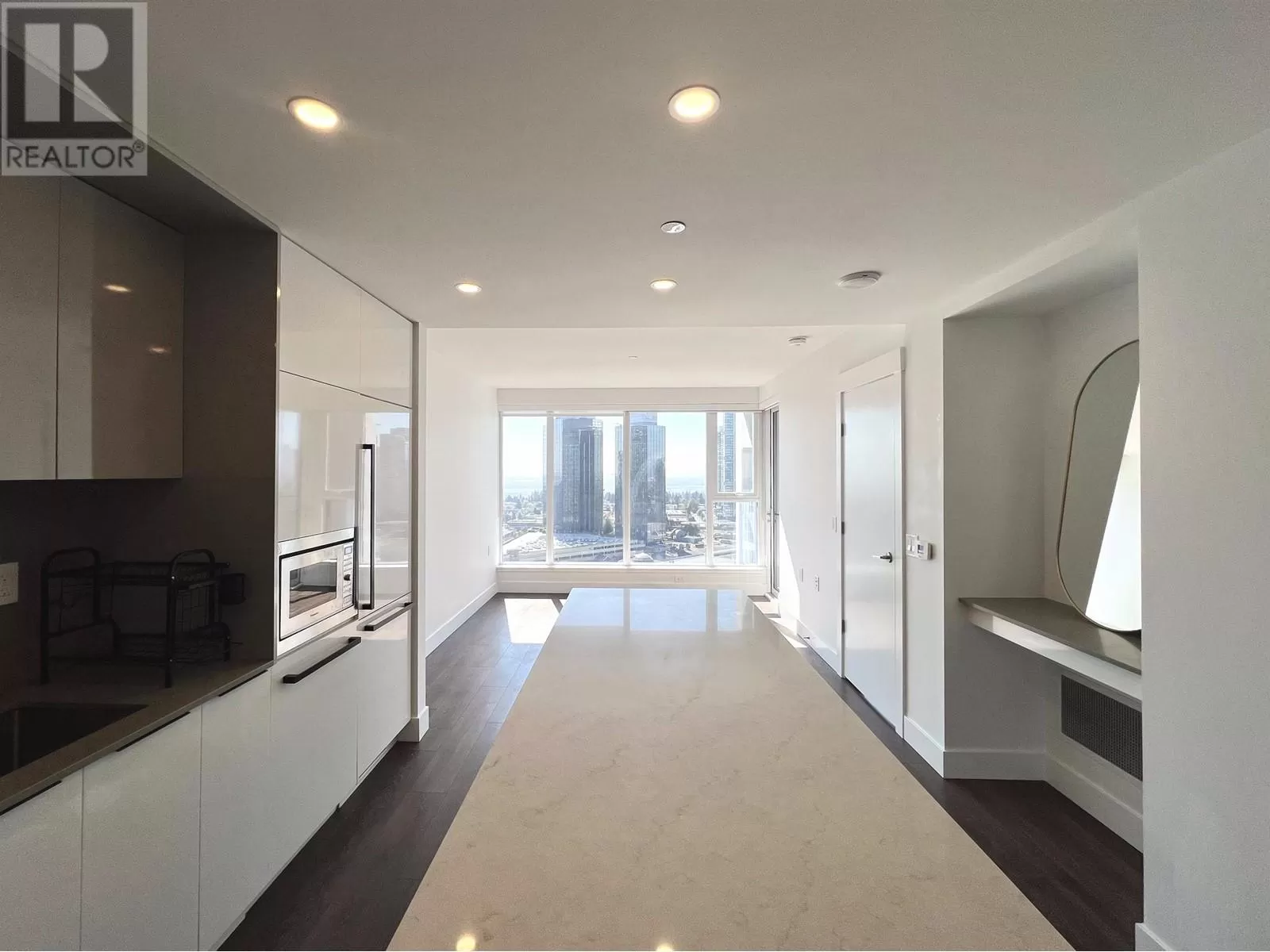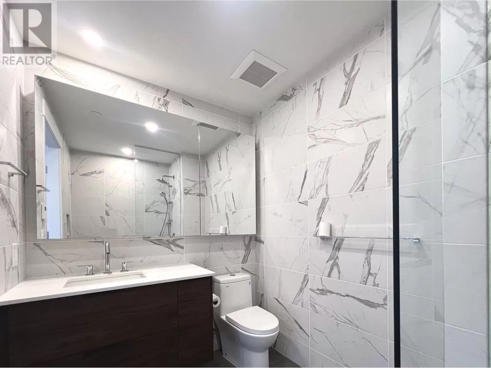Location, location, location. Welcome to the Sussex Metrotown by Townline, sitting right in the heart of Metrotown. Very new and well maintained one bedroom unit, walking distance to Metropolis, Crystal Mall, restaurants, Burnaby Library, and so much more. This unit presents you with a stunning south-facing view of the entire city which also compliments the beautiful city and water view. The kitchen includes Bosch Appliances with premium finishes. This building also presents the owner the convenient access to over 6000 square ft of amenities including bowling alley, exercise center, concierge, yoga room and much more. Unit comes with central air conditioning, one parking and one locker. (id:27476)
