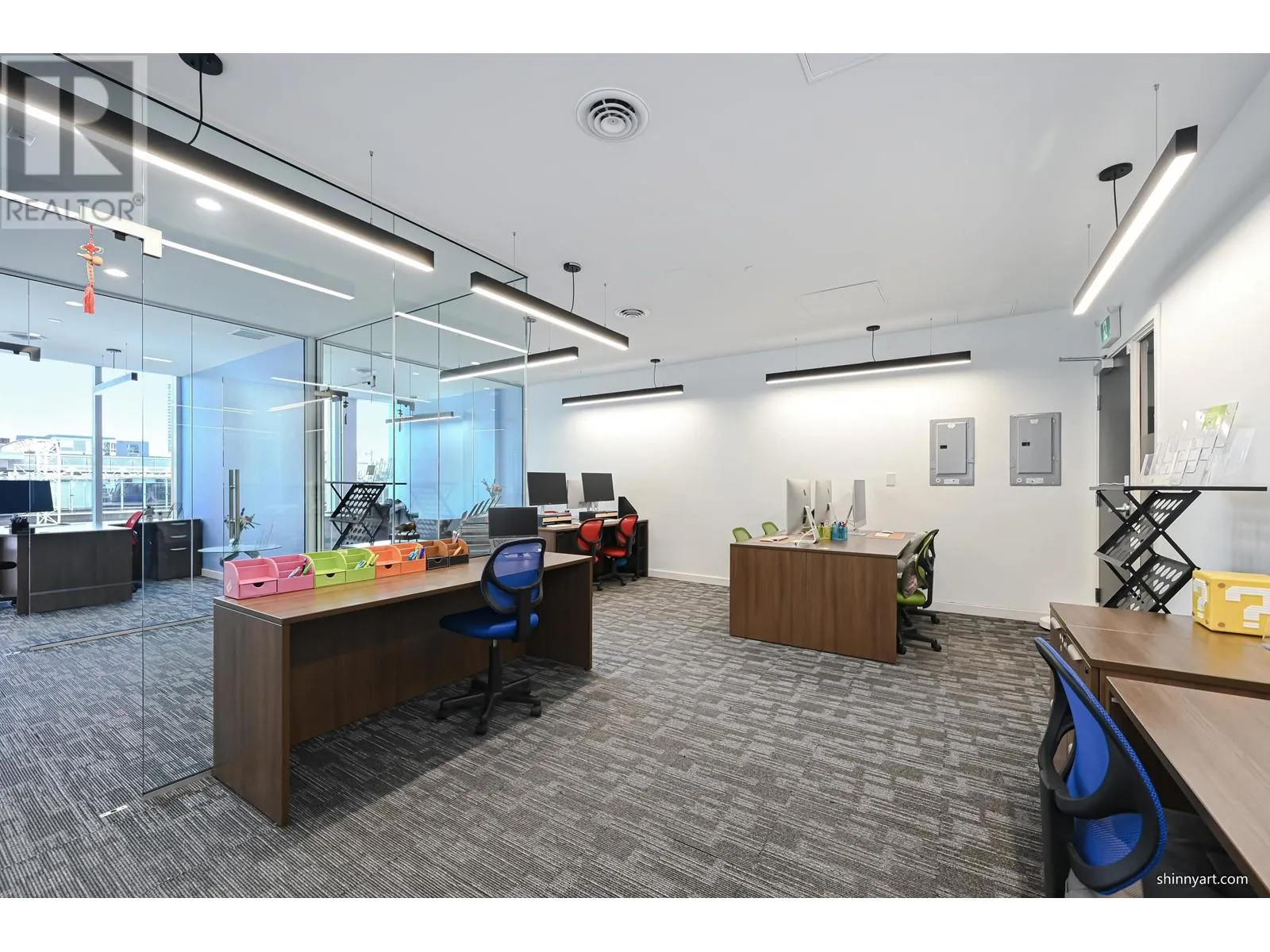 Elevate your business in this stunning, move-in-ready office space located in the core area at Metrotown, just cross the street from Skytrain Station. "The Centre"is a high-profile LEED Silver AAA office building with HVAC, high ceiling & floor to ceiling windows. The combined area 1,510 sqft, over $200K improvements, featuring a sleek, modern design and a thoughtful layout. One meeting room, three private offices, an open working area, and a stylish reception to impress clients, offers a perfect blend of private and collaborative workspaces. Building amenities include concierge service, 3 elevators, lounge, co-working boardroom, meeting rooms tailored to your needs. Three designated parking in total. Premium sale/lease opportunity for professional firms, startups, or growing businesses seeking a premium, turnkey office solution. The total base rent per annum is $63,420.00. Unit #404, #405, and #406 must be leased together. (id:27476)