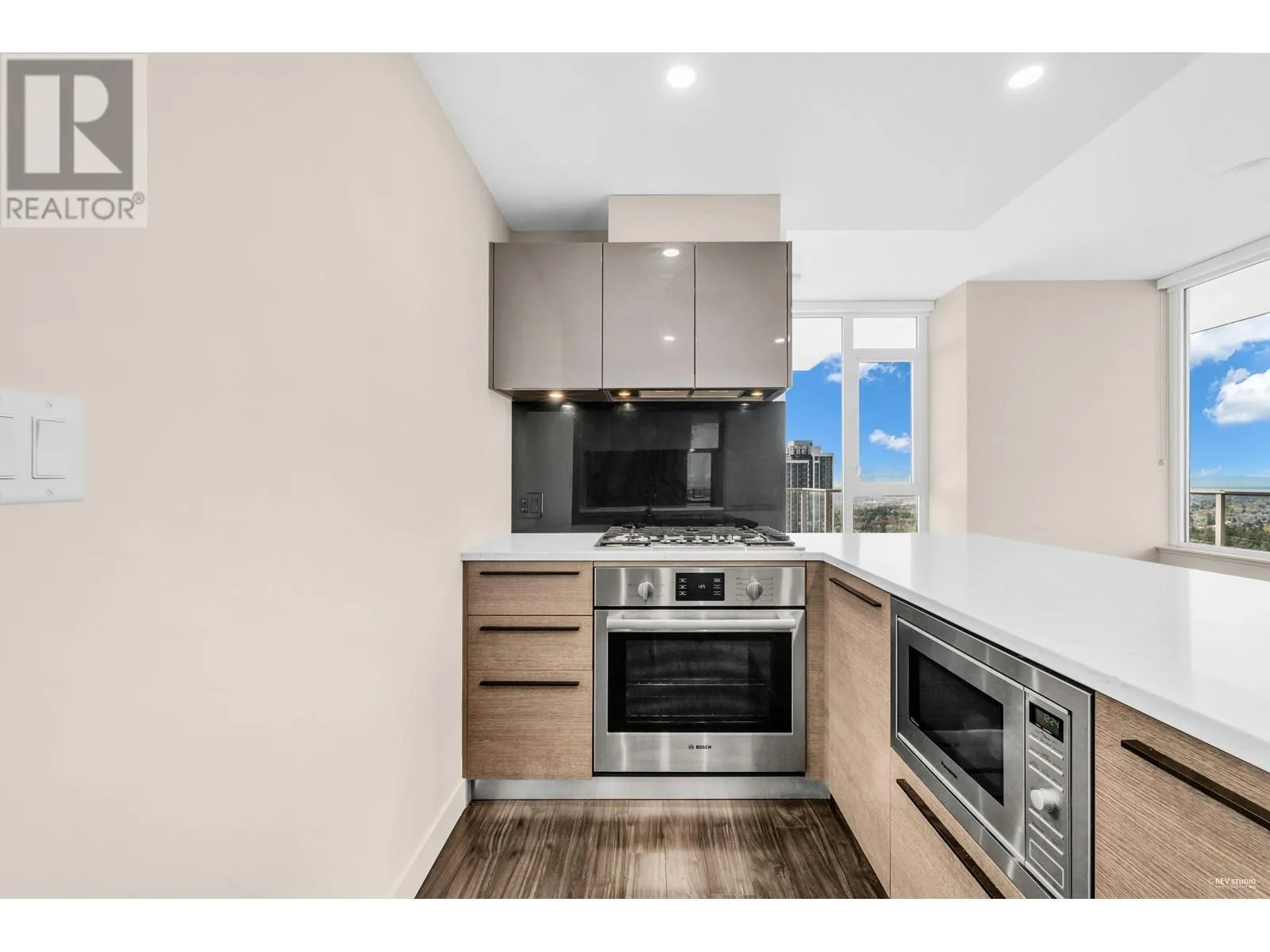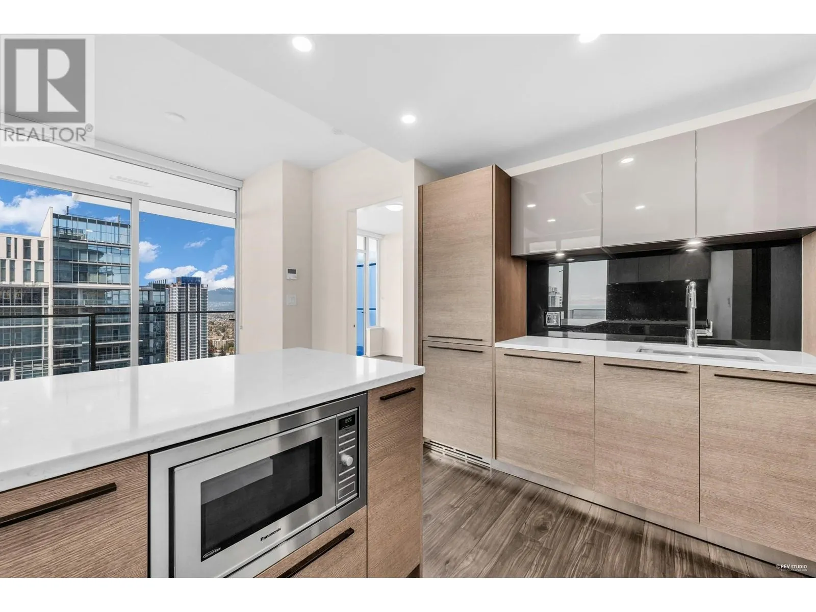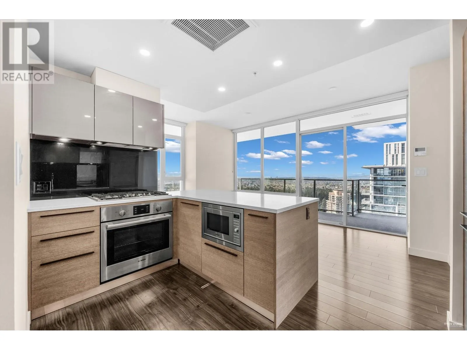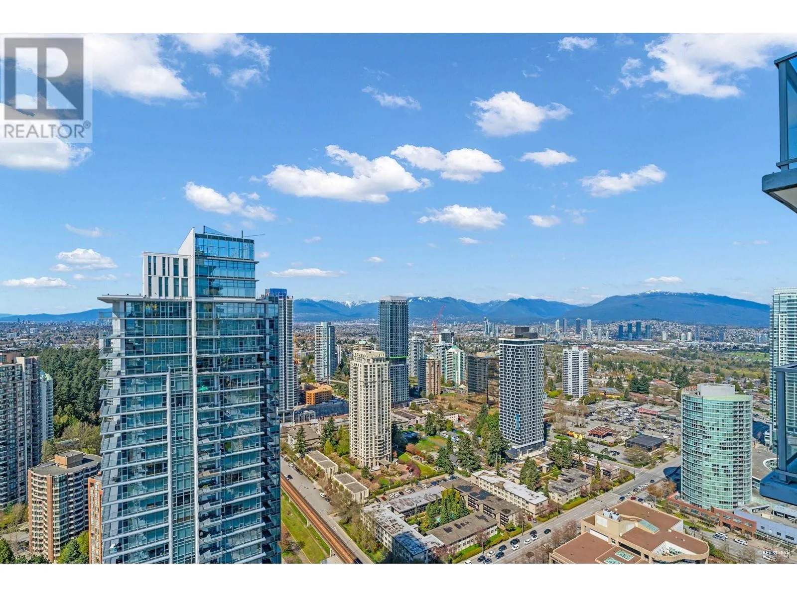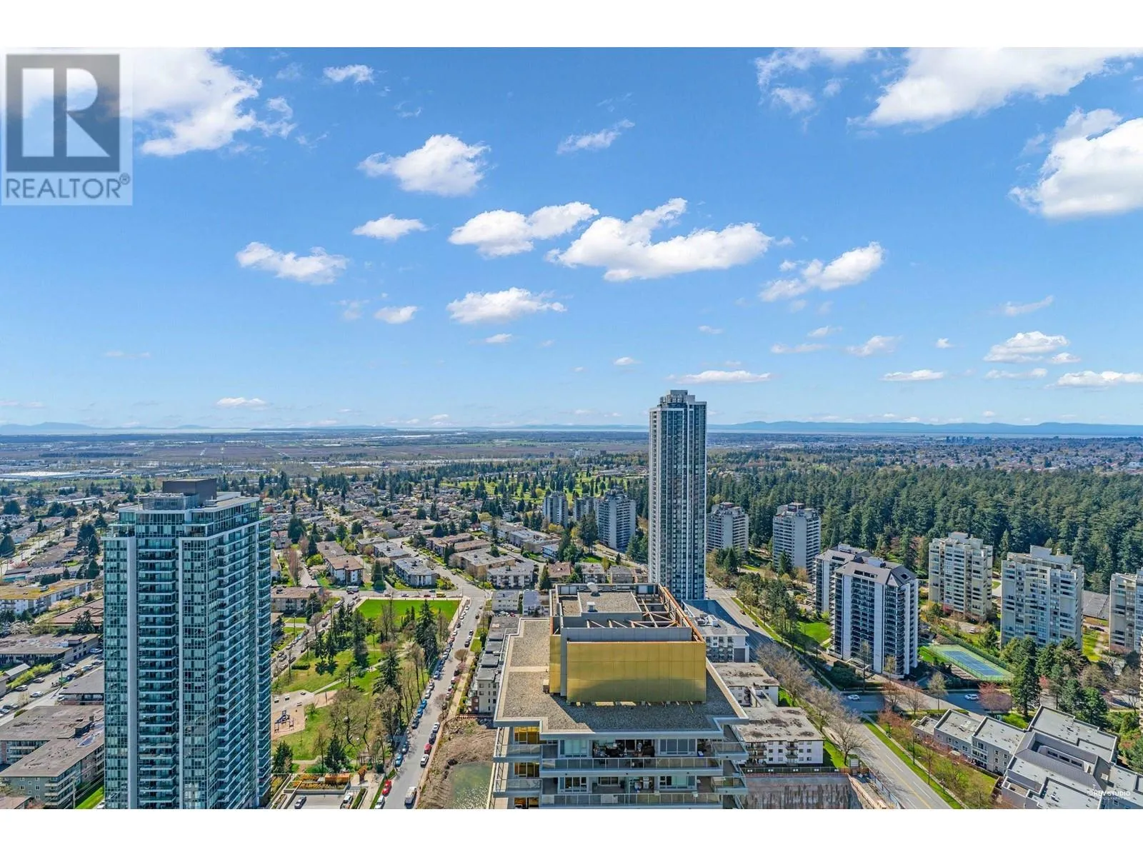 Gold House North Tower by Rize Alliance located in the heart of Metrotown in Burnaby. This high level 2 beds 2 full baths unit faces Southwest with spectacular mountain and city views. Large wrap around balcony for year round entertainment. Functional layout with 9' ceilings throughout. High-end modern kitchen equipped with Armony soft-close cabinetry and integrated Bosch appliances. Central A/C. Over 30,000 SF of Amenities including a Fitness Centre, Party & Study Room, Social Lounges, BBQ area and 24 hour Concierge. Pets & Rental allowed. Located just steps away from Skytrain Station, Station Square, Metrotown Mall, Crystal Mall and Bus loop, restaurants, banks, Bonsor Community Centre & much more. (id:27476)
