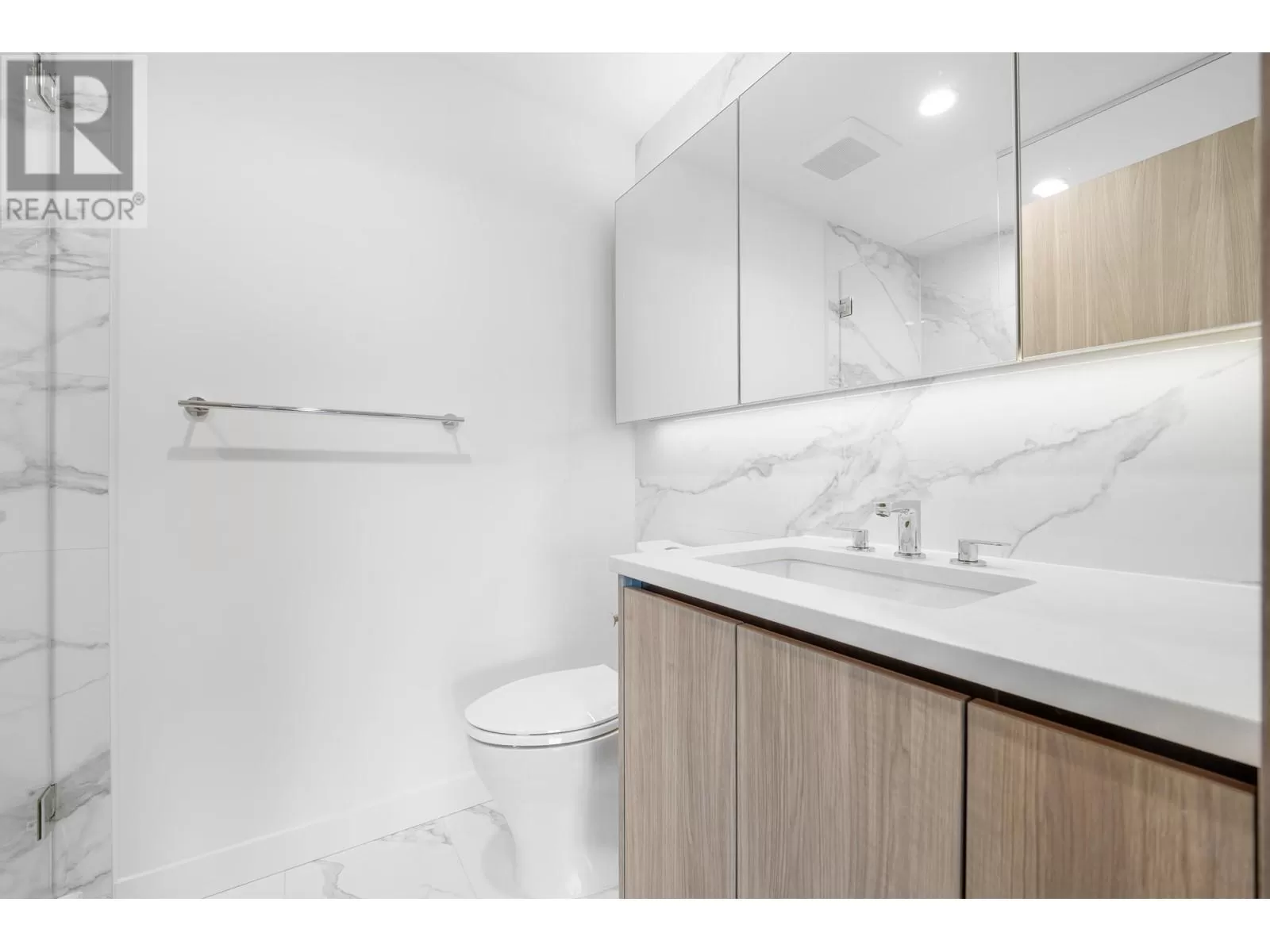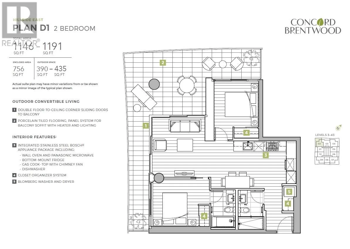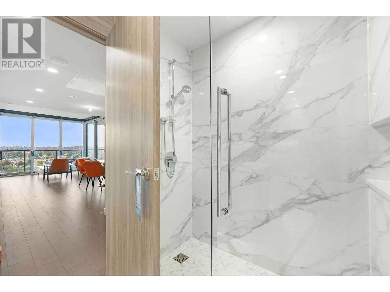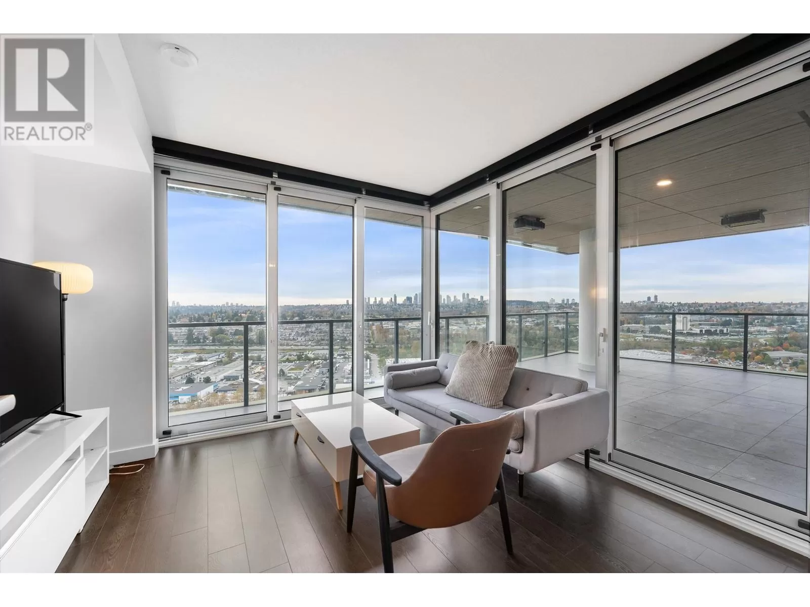 Experience breathtaking views and a deck designed for entertaining in this stunning Concord Brentwood Hillside southeast corner unit. This 2 bedroom, 2 bathroom home delivers sweeping, unobstructed views of Metrotown from the south-east to the west. The expansive outdoor area features luxurious heated stone floor tiles, providing year-round comfort. The sought-after floor plan maximizes space by positioning bedrooms on opposite sides of the living room. Enjoy AC with a smart thermostat and a top-of-the-line kitchen featuring integrated Bosch appliances. oncord Pacific´s world-class amenities, including a gym, yoga studio, karaoke room, and both manual and automatic car wash facilities. Open House: (id:27476)