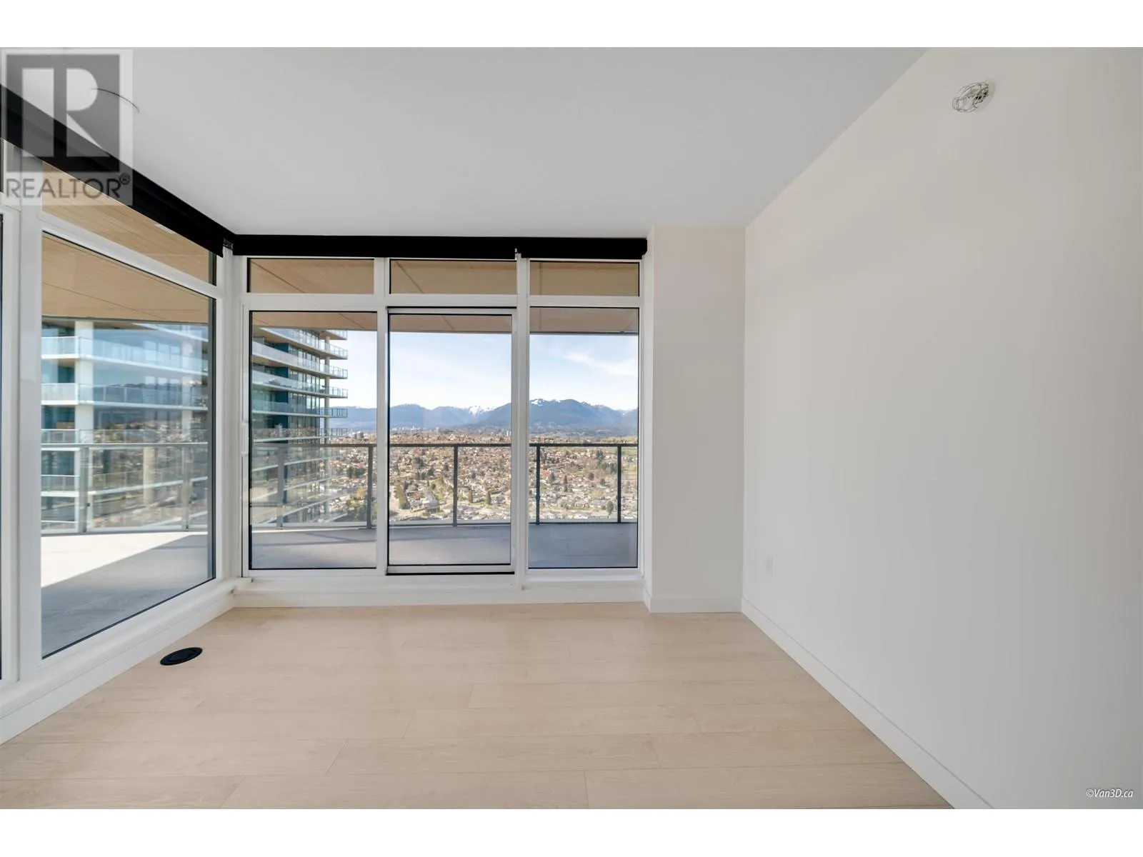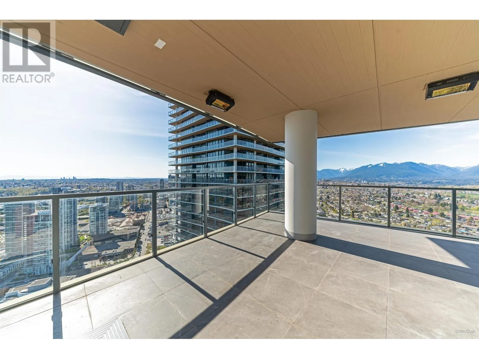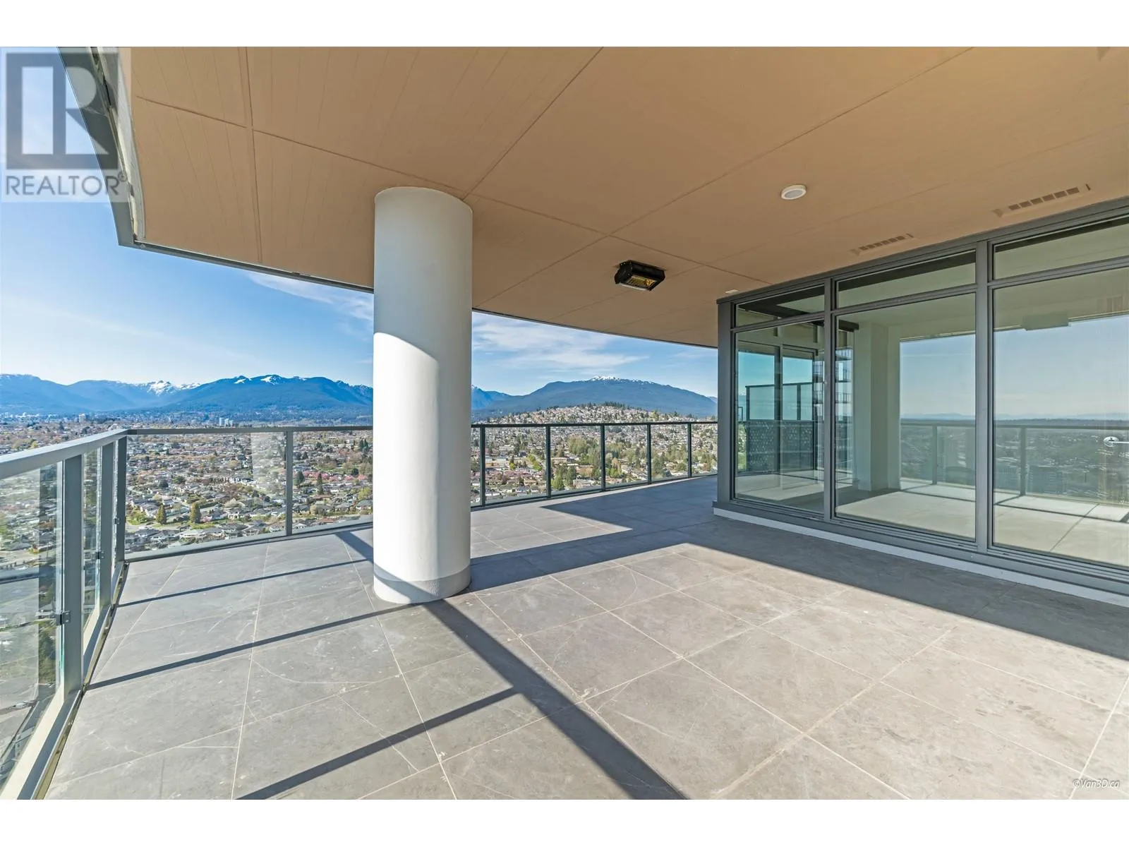 Brand new 2 bedroom unit in the sold out high floor exclusive Sky Collection. West facing corner unit showcases stunning views of Metrotown and the North Shore Mountains. Bedrooms are on opposite sides for added privacy. The gourmet kitchen includes a 5-burner gas cooktop and oven. A 500+ sqft tiled balcony with radiant ceiling heaters connects seamlessly via retractable glass doors. Amenities include concierge, car wash, dog grooming station, karaoke room, sports lounge, pingpong, fitness centre, yoga room. Enjoy automatic blinds in the living room, built-in closets automatic lighting, and air conditioning for year-round comfort. Steps away from Brentwood Mall, skytrain, shops and restaurants. Bonus: adaptive unit with automatic front door and sliding door. Can easily be easily converted. EV charging parking stall + locker (id:27476)