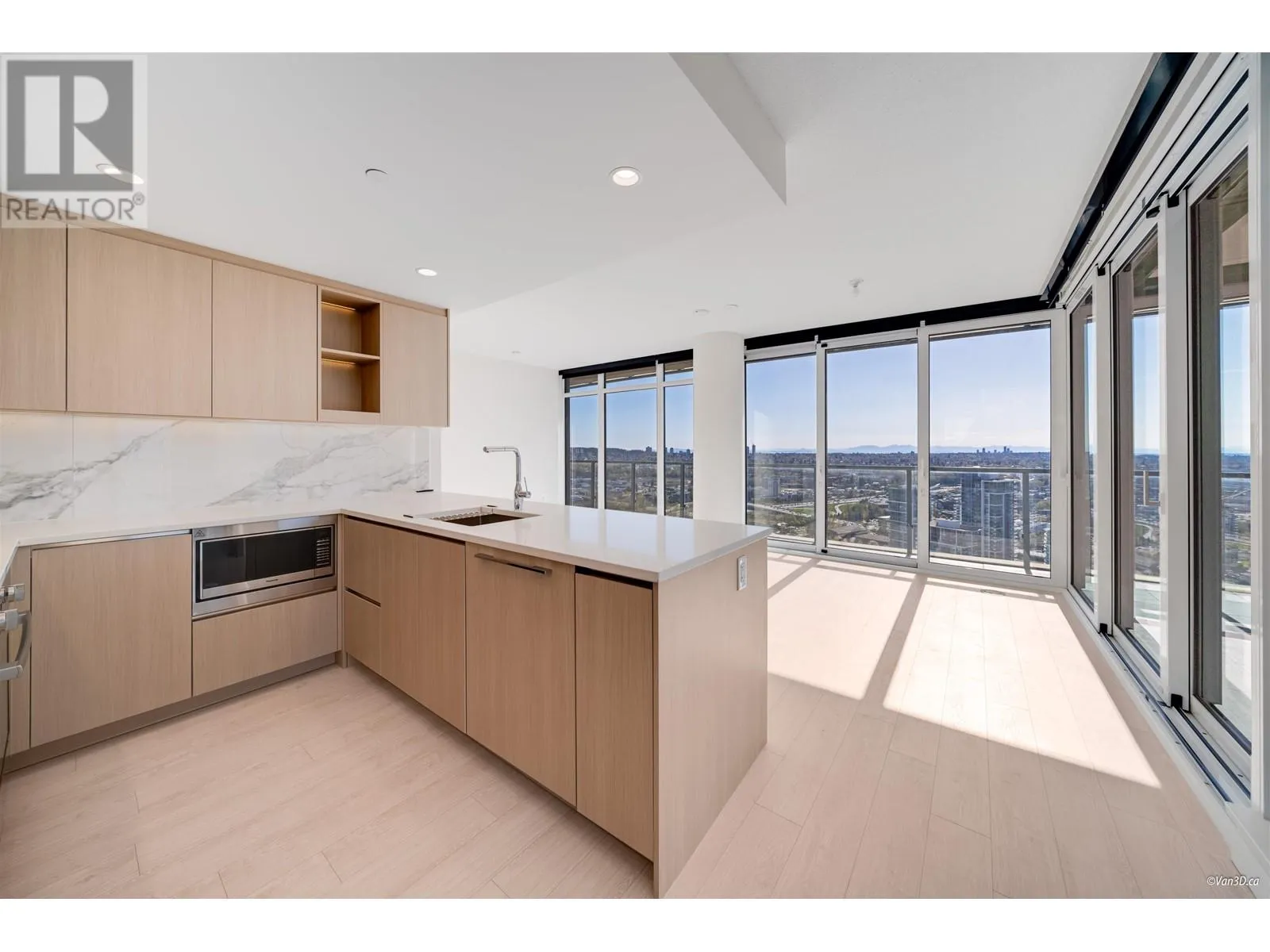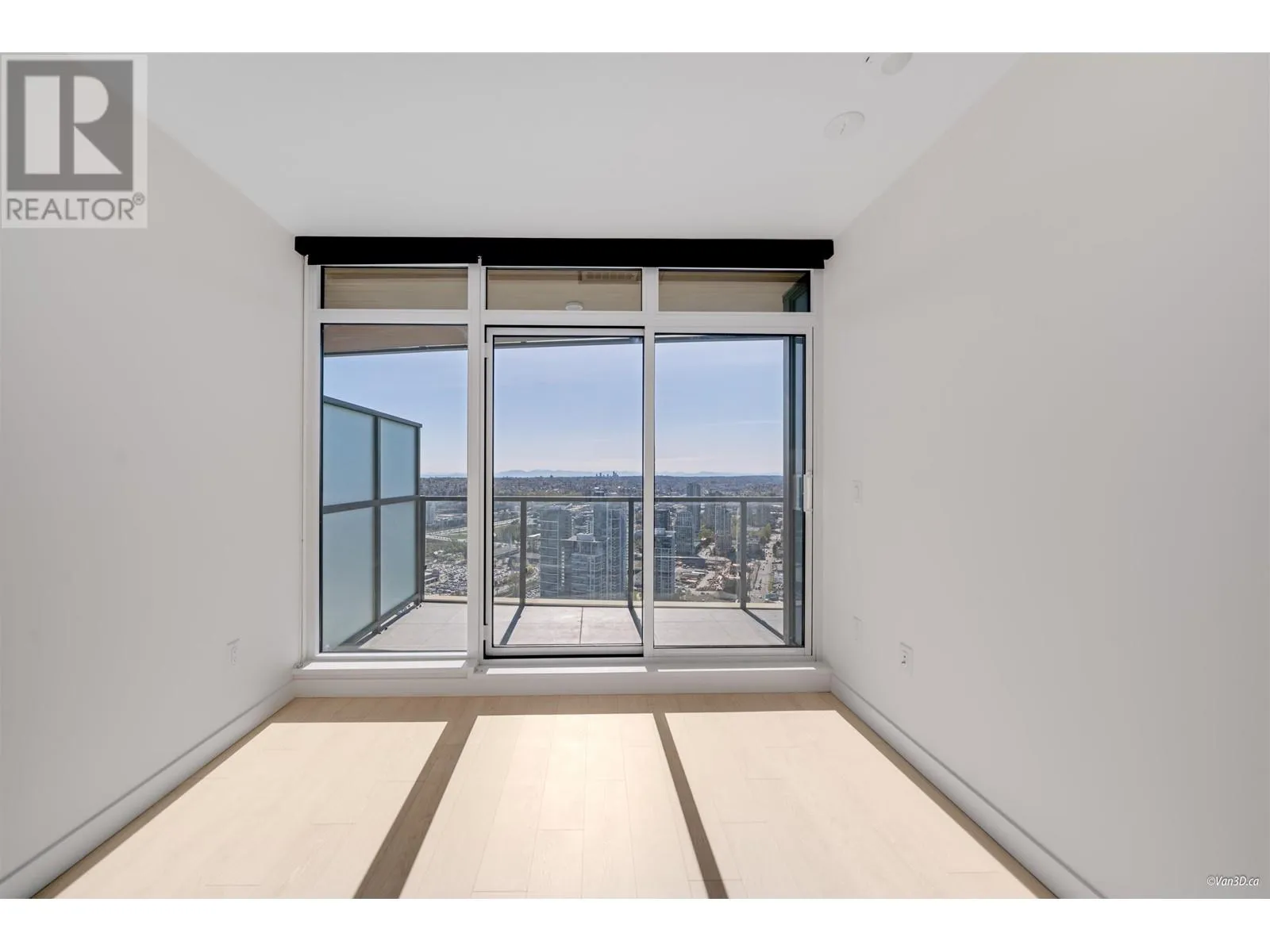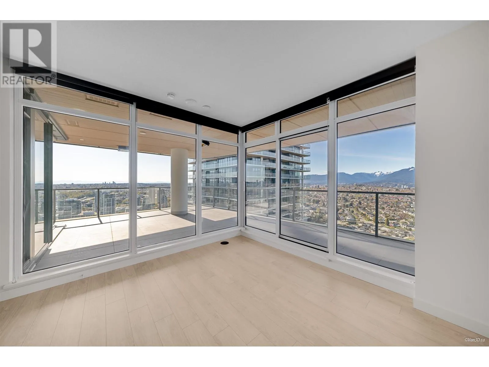Brand new 2 bedroom unit in the sold out high floor exclusive Sky Collection. West facing corner unit showcases stunning views of Metrotown and the North Shore Mountains. Bedrooms are on opposite sides for added privacy. The gourmet kitchen includes a 5-burner gas cooktop and oven. A 500+ sqft tiled balcony with radiant ceiling heaters connects seamlessly via retractable glass doors. Amenities include concierge, car wash, dog grooming station, karaoke room, sports lounge, pingpong, fitness centre, yoga room. Enjoy automatic blinds in the living room, built-in closets automatic lighting, and air conditioning for year-round comfort. Steps away from Brentwood Mall, skytrain, shops and restaurants. Bonus: adaptive unit with automatic front door and sliding door. Can easily be easily converted. EV charging parking stall + locker (id:27476)