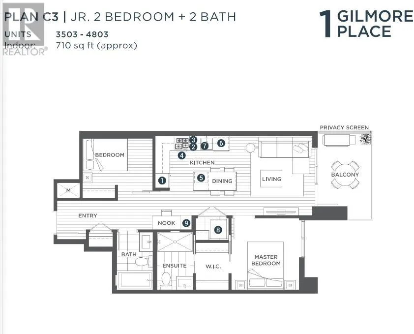 Welcome to Gilmore Place in the heart of Brentwood. This EAST FACING 2 BED, 2 BATH residence is the most efficient floorplan in the building! This home offers great indoor/outdoor living space, 9ft ceilings, AC & Distinguished finishes, create a true essence of a luxury home. Enjoy cozy morning coffees & BBQ´s while entertaining & overlooking the city with 365 days of captivating sunsets! Amenity rich with 24 hour Concierge, Exercise Facility, Entertainment Lounge, Theatre Room, Indoor/Outdoor Pool, Billiards, Childrens Play & More! Includes: PARKING & 2 STORAGE. With Steps to Amazing Brentwood, Gilmore Skytrain, retail, shops, restaurants & the new T&T coming, an effortless lifestyle. (id:27476)