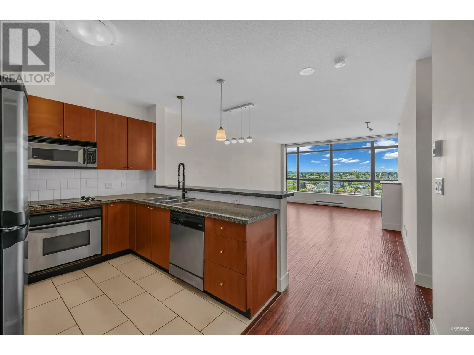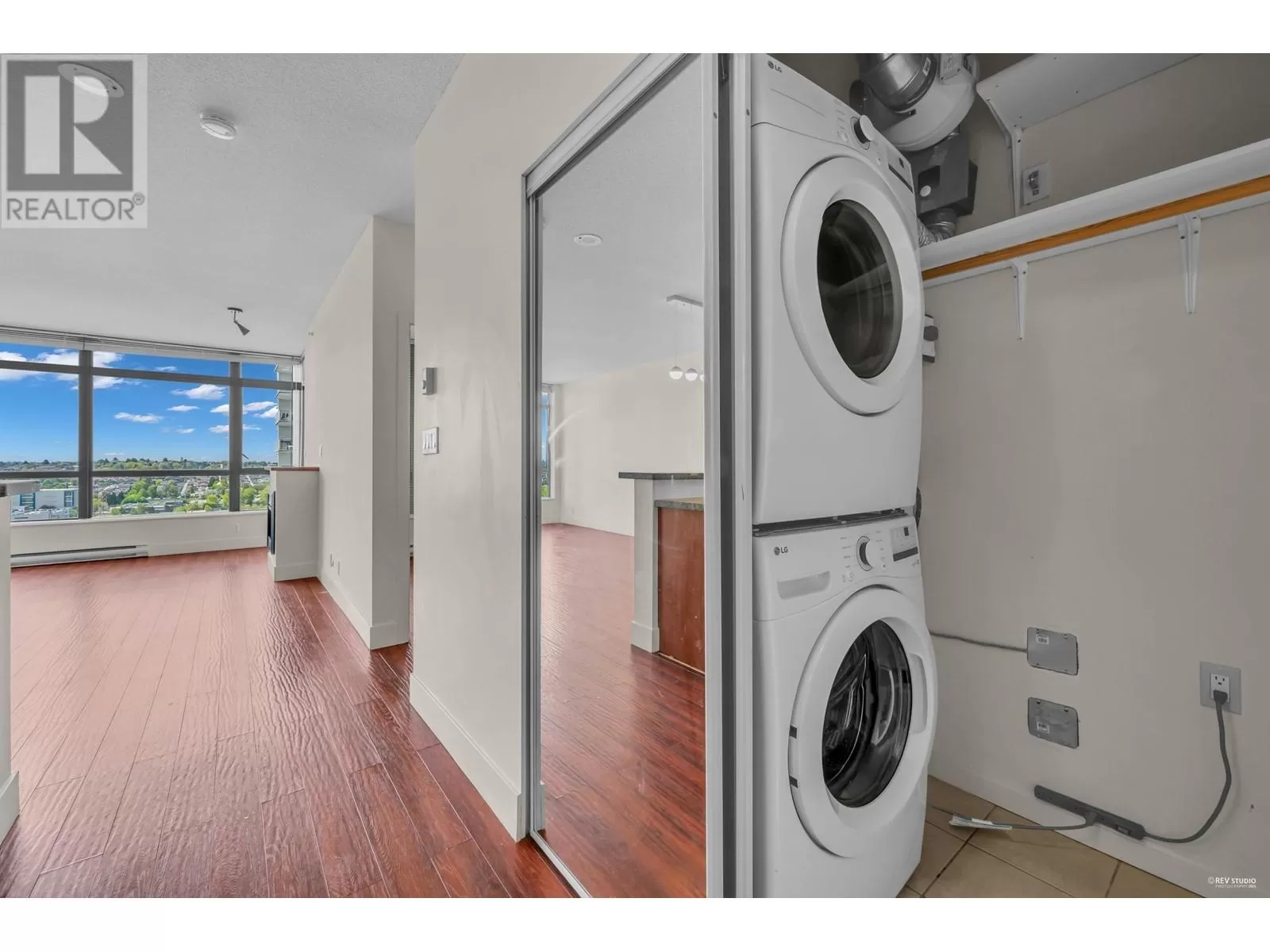 Very bright spacious 855 Sqf one bedroom plus Den in Marquis Grande with over height ceiling (10') with beautiful westerly view of city features laminated floor, open kitchen with granite counters , S/S appliances, full size new washer and dryer, master bedroom with walk-in closet facing almost 100 sqf covered balcony close to all amenities, Brentwood shopping mall, Sky train station and Save on Foods and Restaurants comes with all building amenities you asked for, fully equipped Gym, hot tub, sauna, out door pool, guess suite and media room comes with 1 secured underground parking and Storage locker. (id:27476)