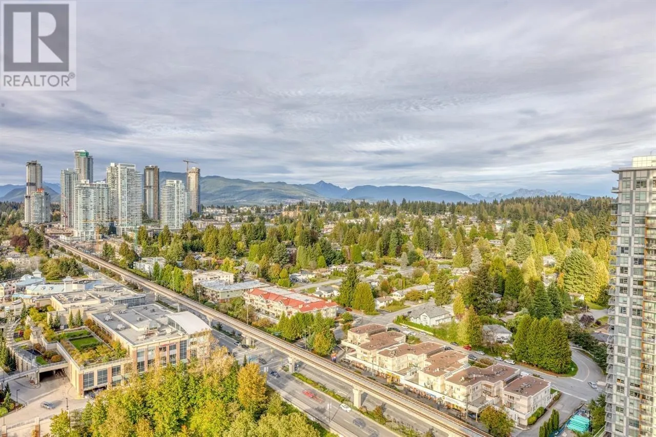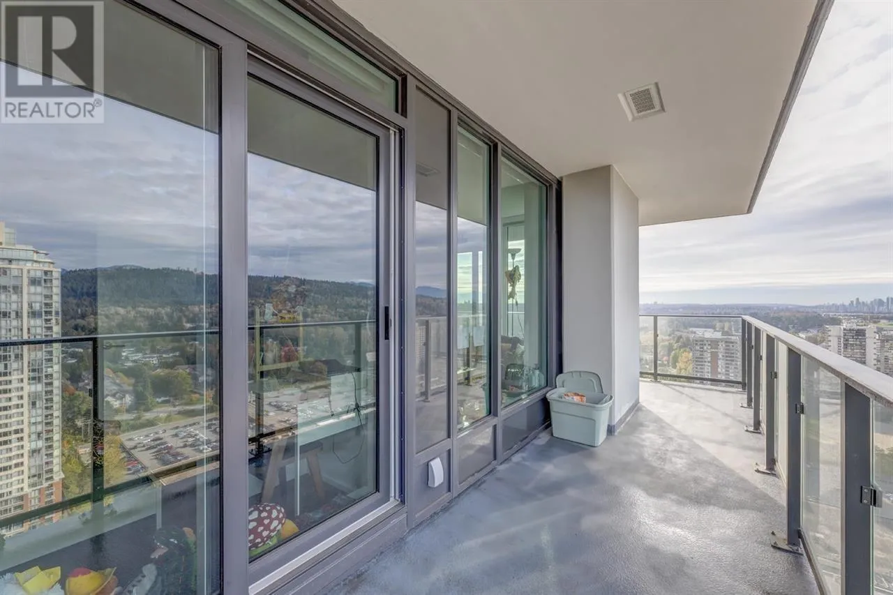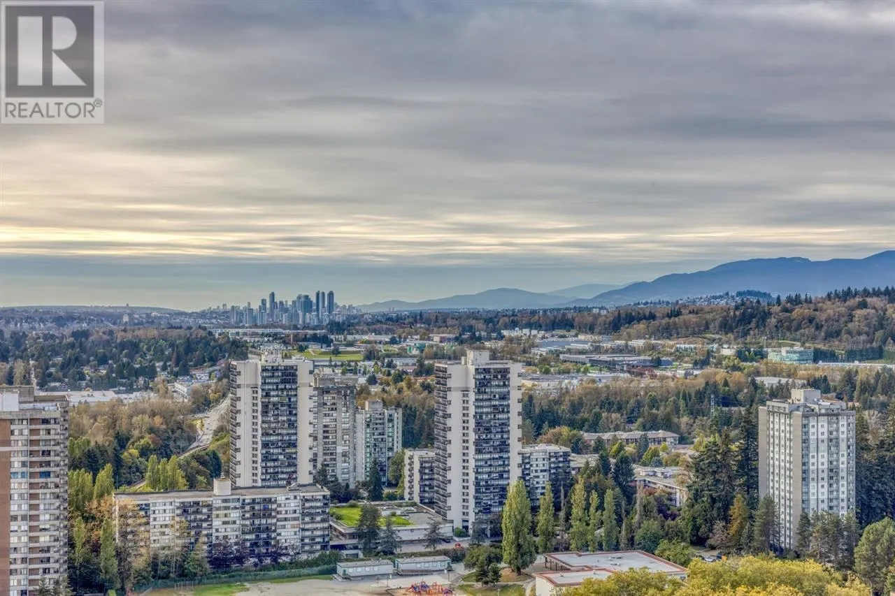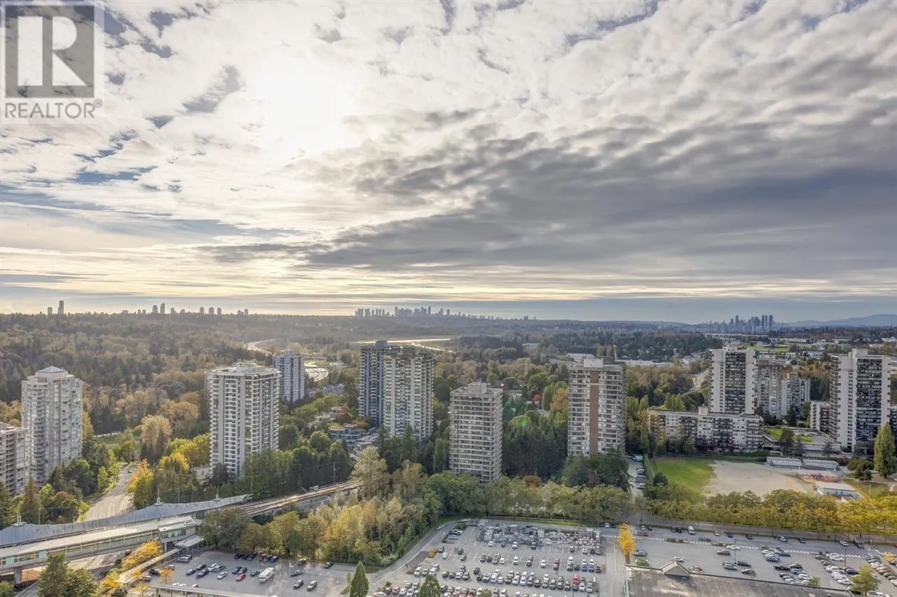 CITY OF LOUGHEED - TOWER 1: This 27th-floor NW corner unit features 2 bedrooms with ensuites, a den, and a 350 sq. ft. wraparound balcony. The space offers high ceilings, large windows, and premium finishes including quartz countertops, Bosch appliances, and a Panasonic microwave. Enjoy stunning views of the city, mountains, and water, from downtown to SFU and Metrotown. Amenities include A/C, a 3-floor, 18,000 sq.ft. clubhouse with indoor/outdoor spaces, a fitness center, yoga studio, game rooms, and more. The building also features 24-hour concierge services, 5 high-speed elevators, a dog park, and easy access to shopping, dining, and banking. (id:27476)