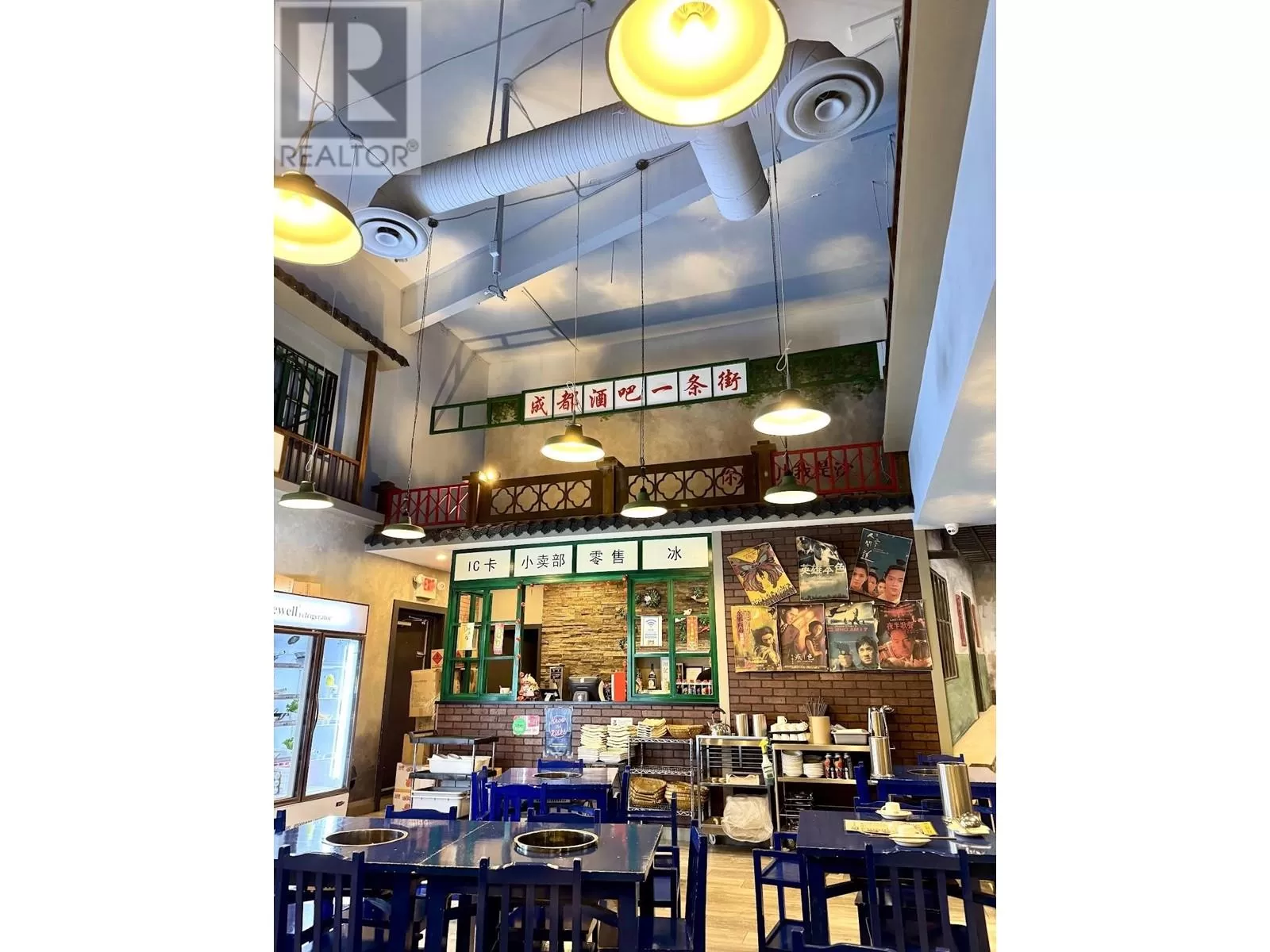 Seize the chance to acquire a well-established hot pot restaurant located in the vibrant commercial heart of Burnaby. Situated on high-traffic Kingsway and surrounded by numerous residential developments, this location offers outstanding visibility and foot traffic. The restaurant features vivid interior decor and individual table ventilation, ensuring a comfortable dining experience. A fully equipped commercial kitchen, complete with a long exhaust hood, ample storage, and a liquor license valid until 11 PM. The space spans 2,252 sq ft, providing a spacious dining area and convenient on-site parking. This versatile space offers the perfect opportunity for carrying on the current successful concept or introducing new ideas!Please contact listing agent for more information. (id:27476)