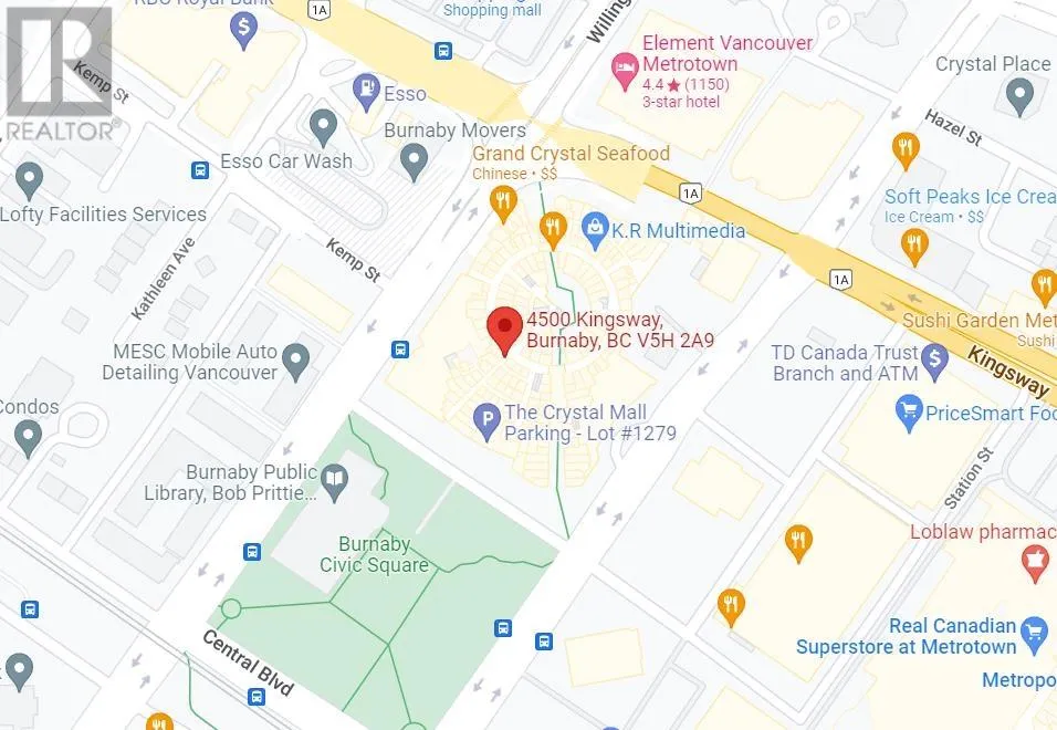 Must see! Approx. 495 sq. ft. second-floor retail unit located in The Crystal Mall, a vibrant, high-traffic shopping center known for serving the local Asian community. Ideally situated at 4500 Kingsway, the corner of Willingdon Avenue in bustling Metrotown, and directly connected to the Hilton Vancouver Metrotown Hotel. High-exposure location, directly facing the main parking stairs. Suitable for retail, service business, or professional office use. Currently, tenanted on a renewable monthly lease. Attractive 3.8% CAP rate. BC Assessment value at $944,000 (July 2023) Take advantage of the potential for long-term property value growth in one of Burnaby's most sought-after Commercial Mall. One permanent parking permit. Whether you're an investor looking for reliable income or a business owner seeking prime retail space, this is an opportunity you don't want to miss. Contact for a viewing. (id:27476)