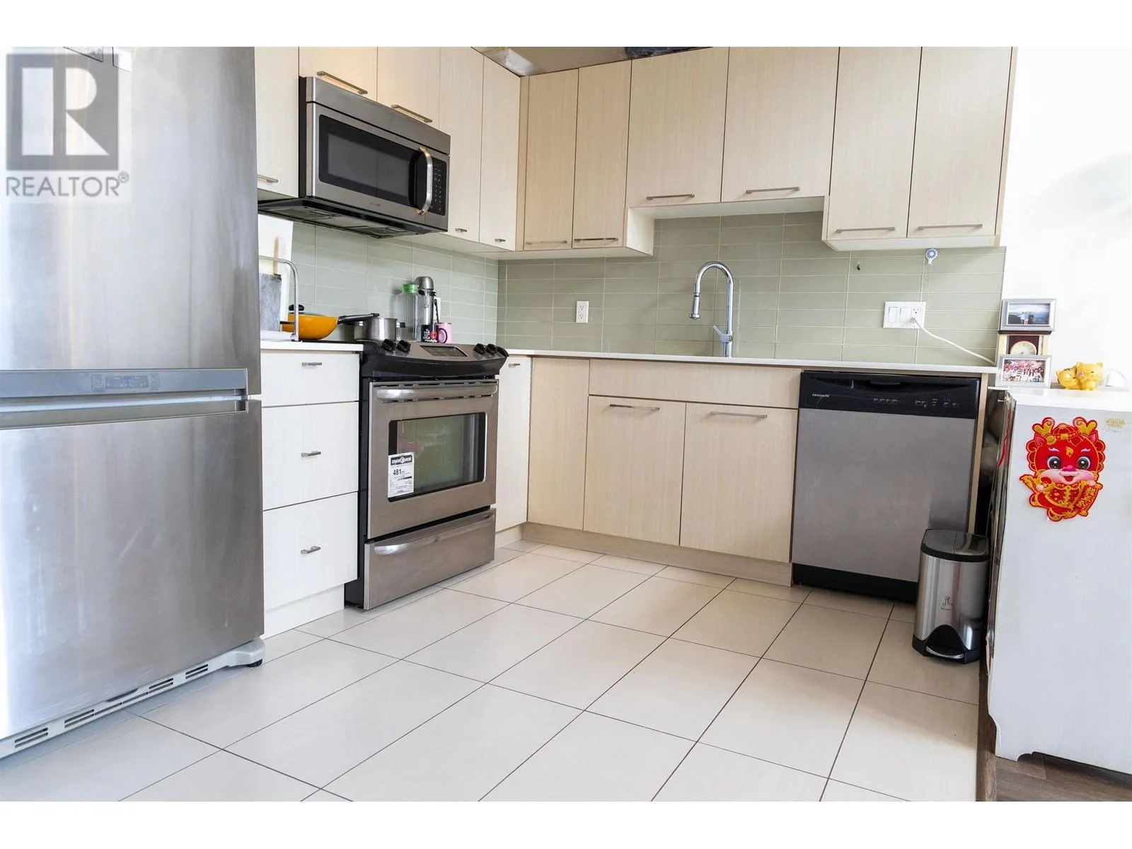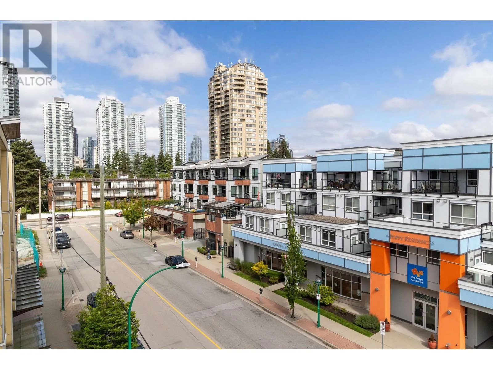 Rare Penthouse Opportunity at Metro One - 1 Bed / 1 Bath.Experience stunning North Shore mountain views from this exclusive top-floor penthouse. This bright and airy home features soaring 15-foot vaulted ceilings in the living room, expansive windows, and a large private balcony overlooking a beautifully landscaped courtyard. Stylish laminate flooring throughout.Located in the heart of Metrotown, just steps from Kingsway & Royal Oak:5-mins walk to SkyTrain.10 mins to Metropolis at Metrotown.Close to Burnaby South Secondary, Bonsor Recreation Centre, banks, and dining options.1 parking stall and 1 storage lock. (id:27476)