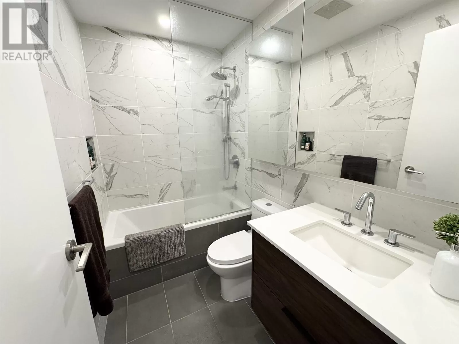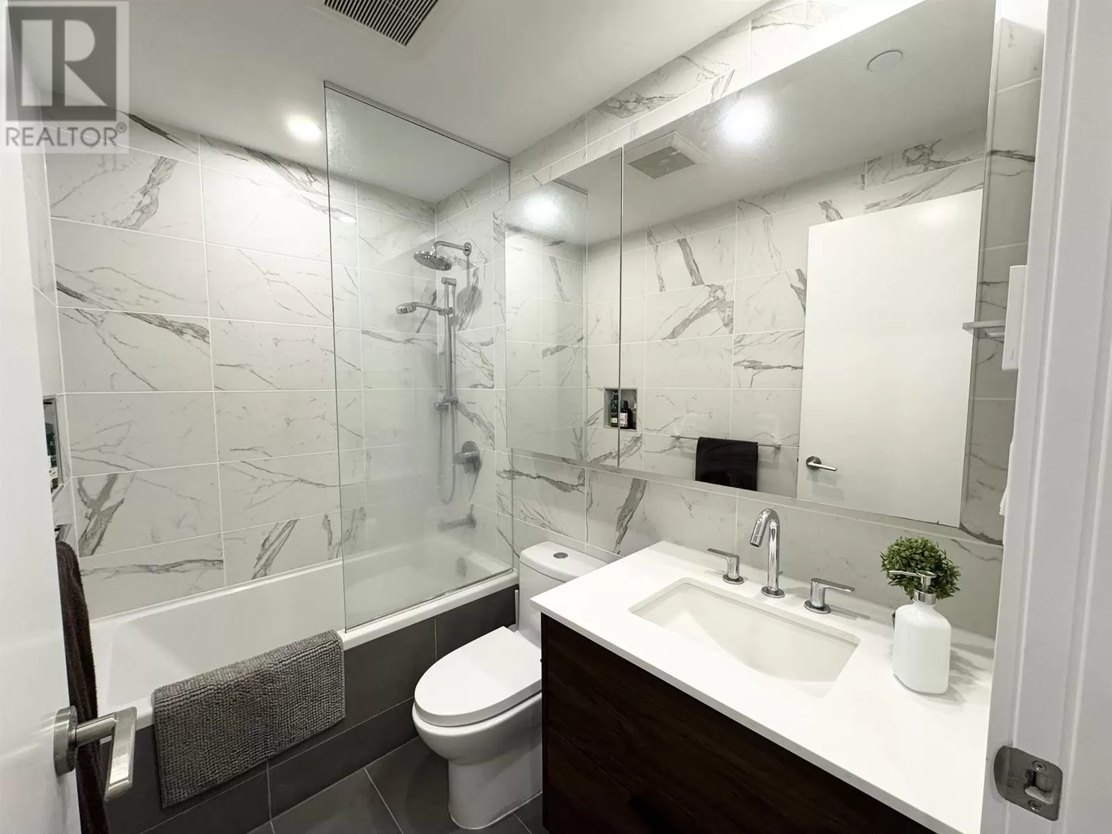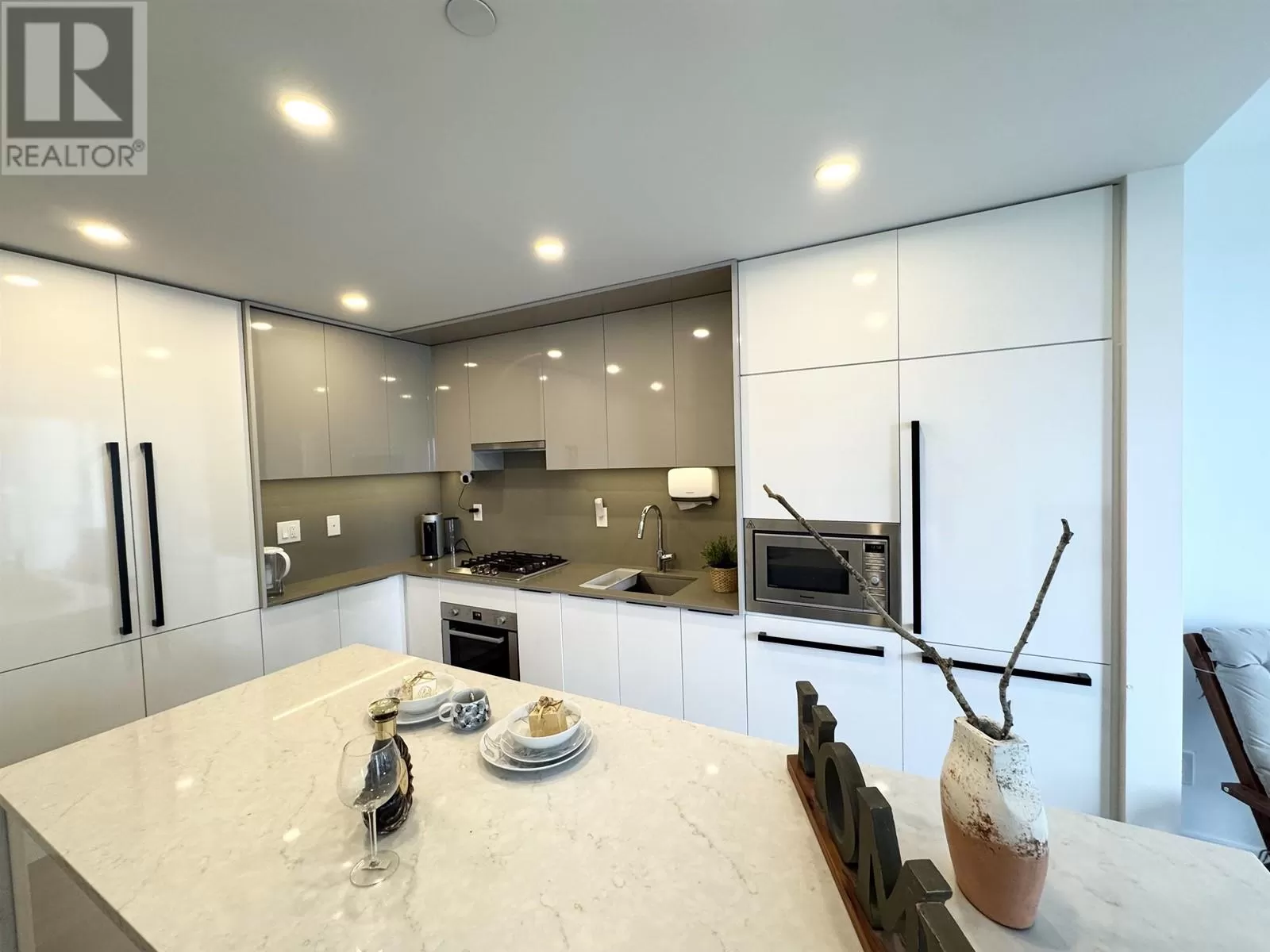 Welcome to Sussex by Townline - a Signature Tower in the Heart of Metrotown! This stunning 1 bed, 1bath unit offers breathtaking lake and city views from the comfort of your home. Thoughtfully designed with modern living in mind, the home features sleek white cabinetry with ample storage space, premium Bosch appliances, and an open-concept layout that maximizes natural light. Enjoy luxury finishes throughout, including engineered hardwood flooring, spa-inspired bathroom, and a private balcony perfect for relaxing or entertaining. Located steps from Metropolis at Metrotown, Crystal Mall, transit, and restaurants. Enjoy world-class amenities including a concierge, fitness centre, bowling alley, and more. 1 EV Parking and storage are included. Balanced 2-5-10 warranty. O H June 21, 2-4pm (id:27476)