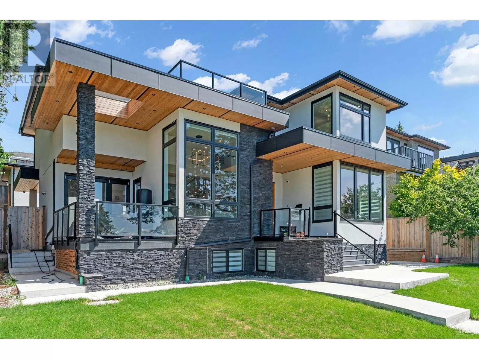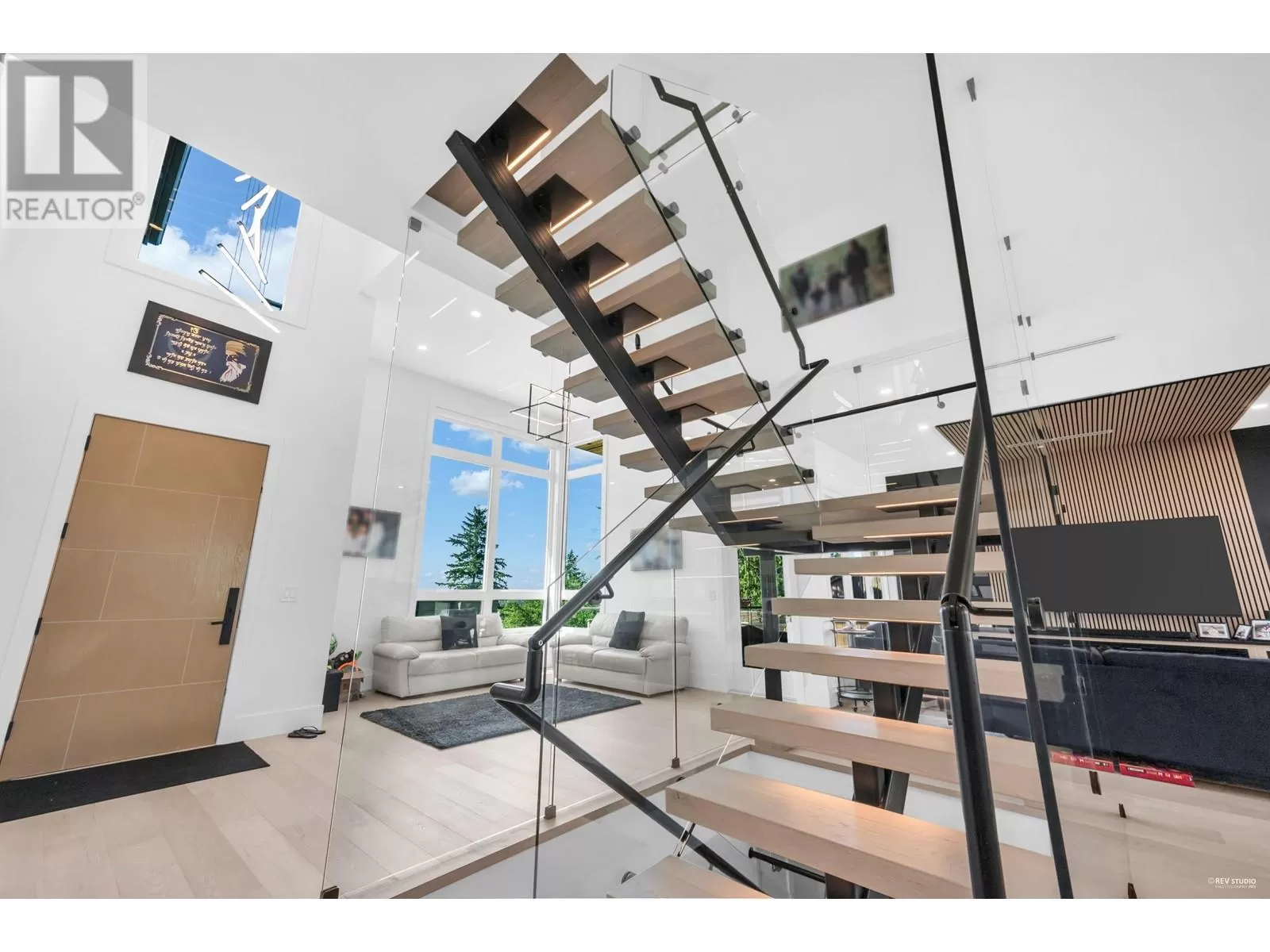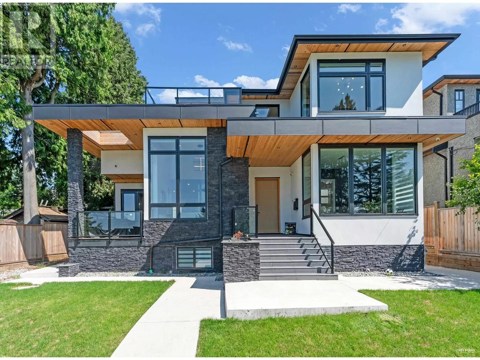 Unmatched modern luxury in South Slope! Step inside & you will be stunned by the gorgeous all glass floating lit staircase (a true statement piece). One of a kind home includes in-floor heating, on-demand hot water, central A/C, HRV, engineered hardwood throughout, 10 ft high ceilings, California closets, Versace wallpaper, custom automated lighting, dream kitchen with Thermador appliances(built-in coffee system), quartz counters & soft-close cabinetry. Accordion doors open to north & south decks, for indoor-outdoor entertaining & a rooftop deck for the hottub! Additionally there is smart security throughout, EV charger, built in sauna, 110" home theatre & a gym! Legal AirBnB suite earns $4K-$5K/month. Steps to Riverway Park, great schools, Markets, transit & Metrotown. Don't miss out! (id:27476)