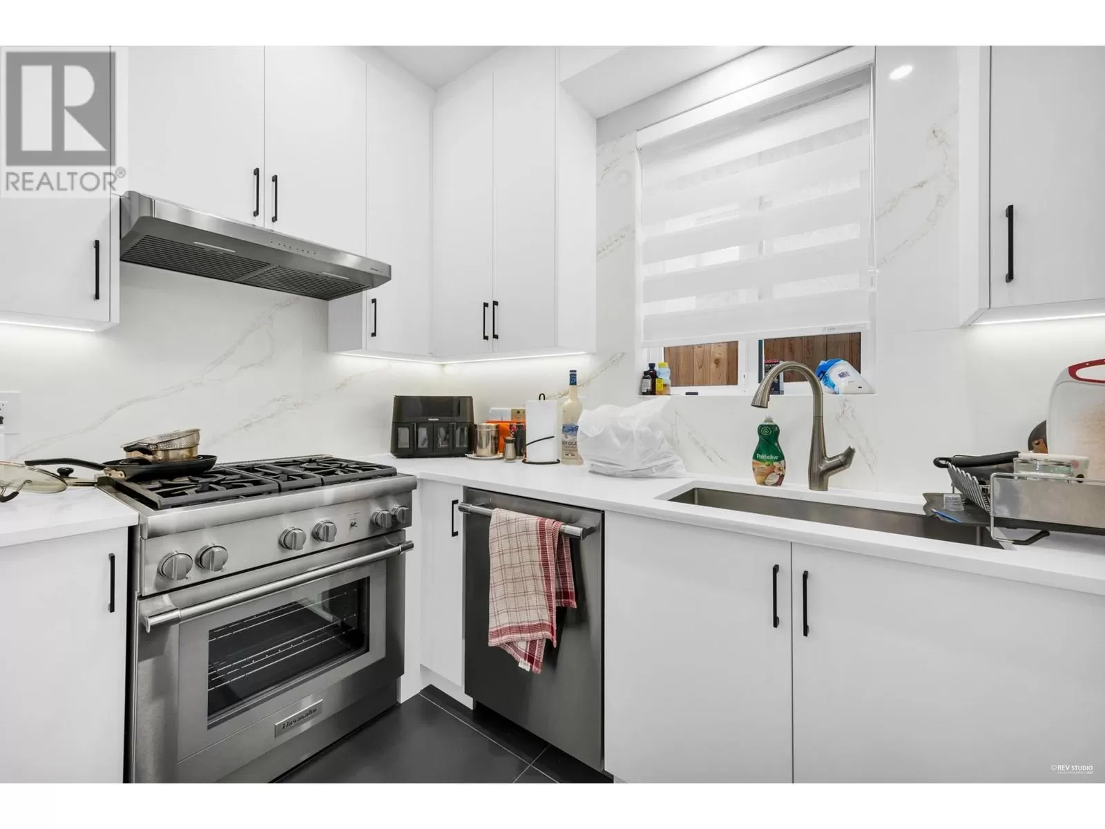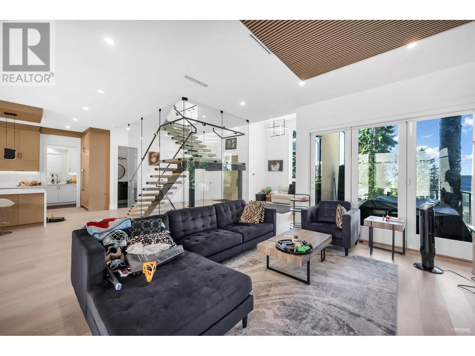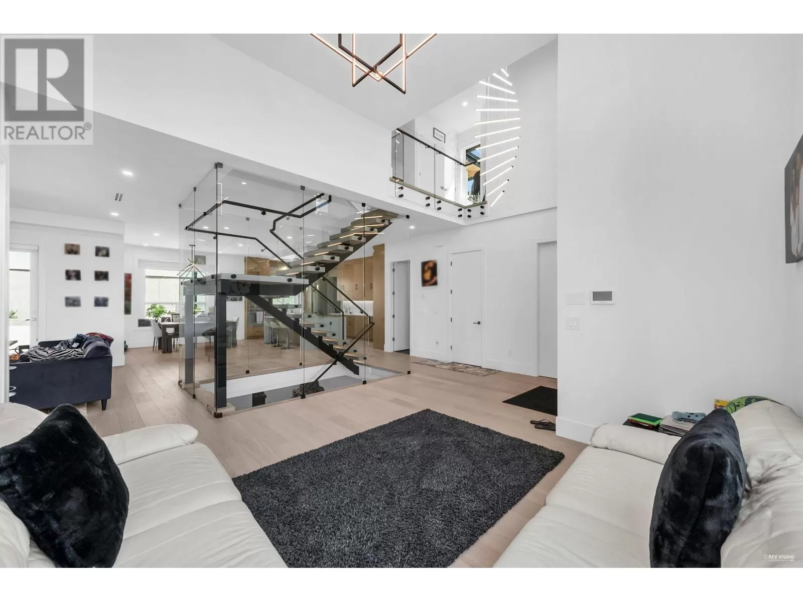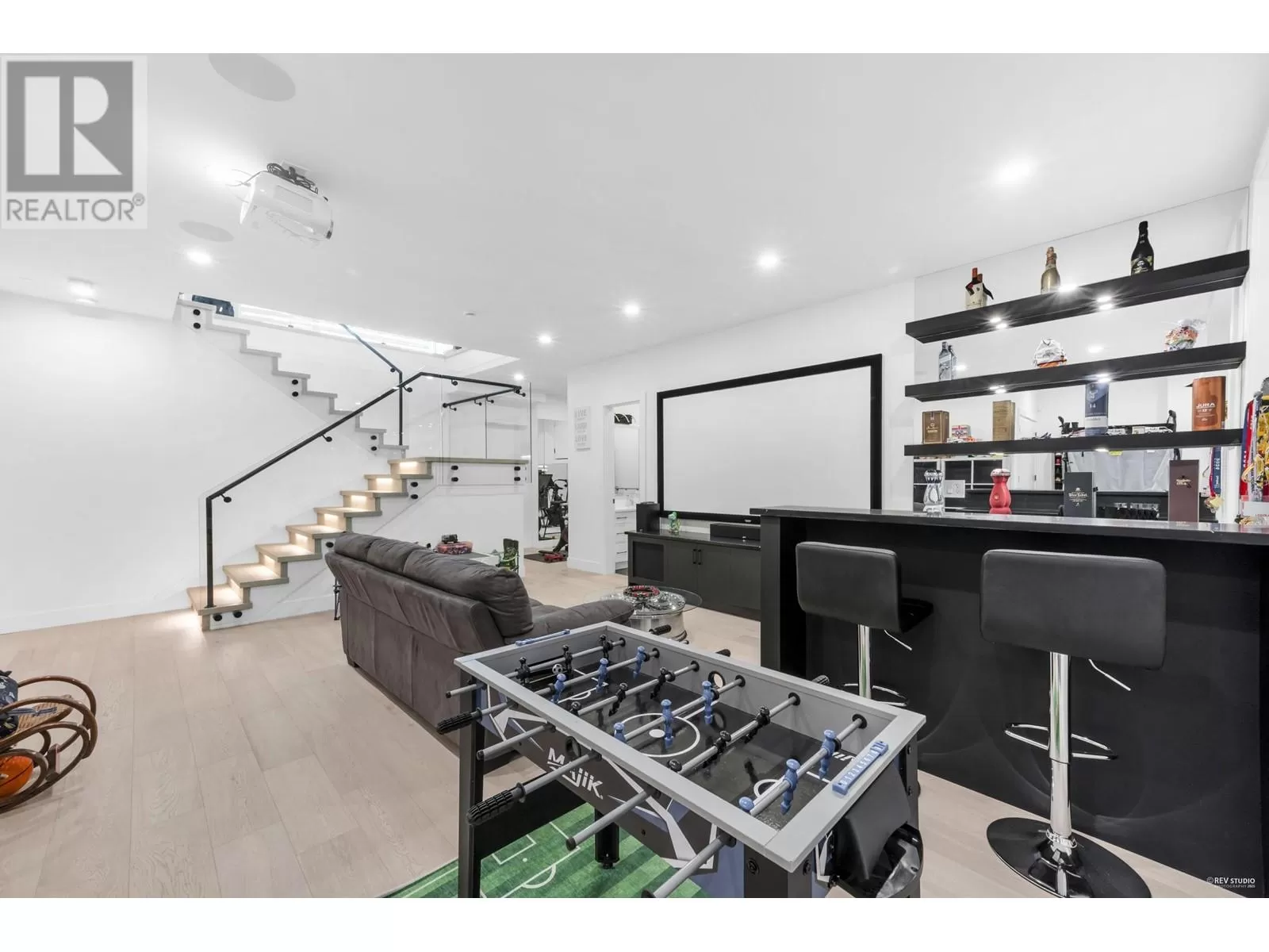 Unmatched modern luxury in South Slope! Step inside & you will be stunned by the gorgeous all glass floating lit staircase (a true statement piece). One of a kind home includes in-floor heating, on-demand hot water, central A/C, HRV, engineered hardwood throughout, 10 ft high ceilings, California closets, Versace wallpaper, custom automated lighting, dream kitchen with Thermador appliances(built-in coffee system), quartz counters & soft-close cabinetry. Accordion doors open to north & south decks, for indoor-outdoor entertaining & a rooftop deck for the hottub! Additionally there is smart security throughout, EV charger, built in sauna, 110" home theatre & a gym! Legal AirBnB suite earns $4K-$5K/month. Steps to Riverway Park, great schools, Markets, transit & Metrotown. Don't miss out! (id:27476)