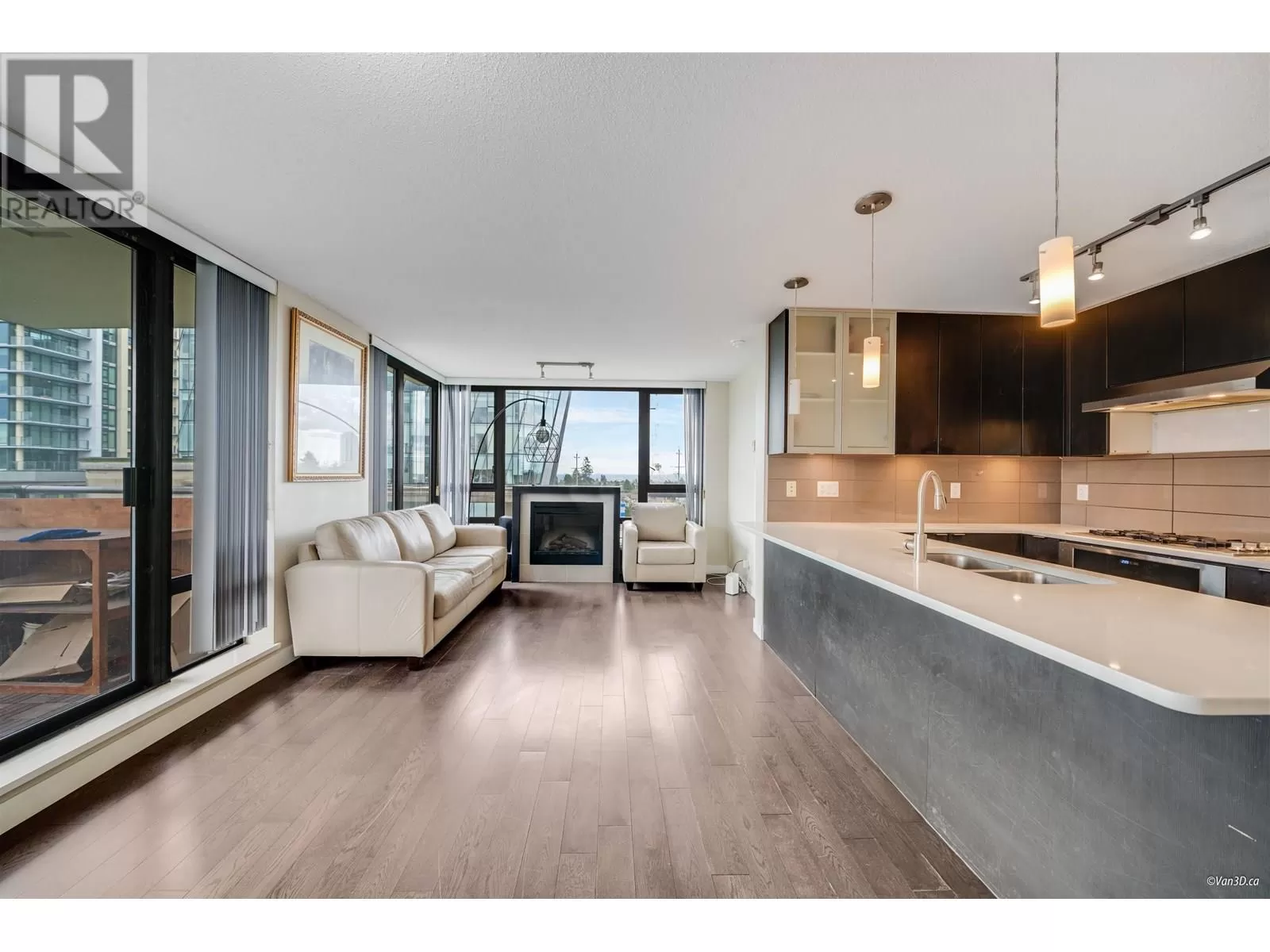 Espirit by Bosa! This well maintained stunning 2 bedroom and 2 bath open floor concept home, Stylish kitchen feature designer composite stone countertops w/polished edging, natural woodgrain cabinetry & premium stainless steel appliances, also comes with a cozy fireplace, hardwood floor, insuite laundry, underground parking & a storage locker. Convenient exercise centre, terrace garden and fully-secured parking. Centrally Located in Highgate Village, steps to library, community centre, shopping and transit. A MUST SEE!! (id:27476)