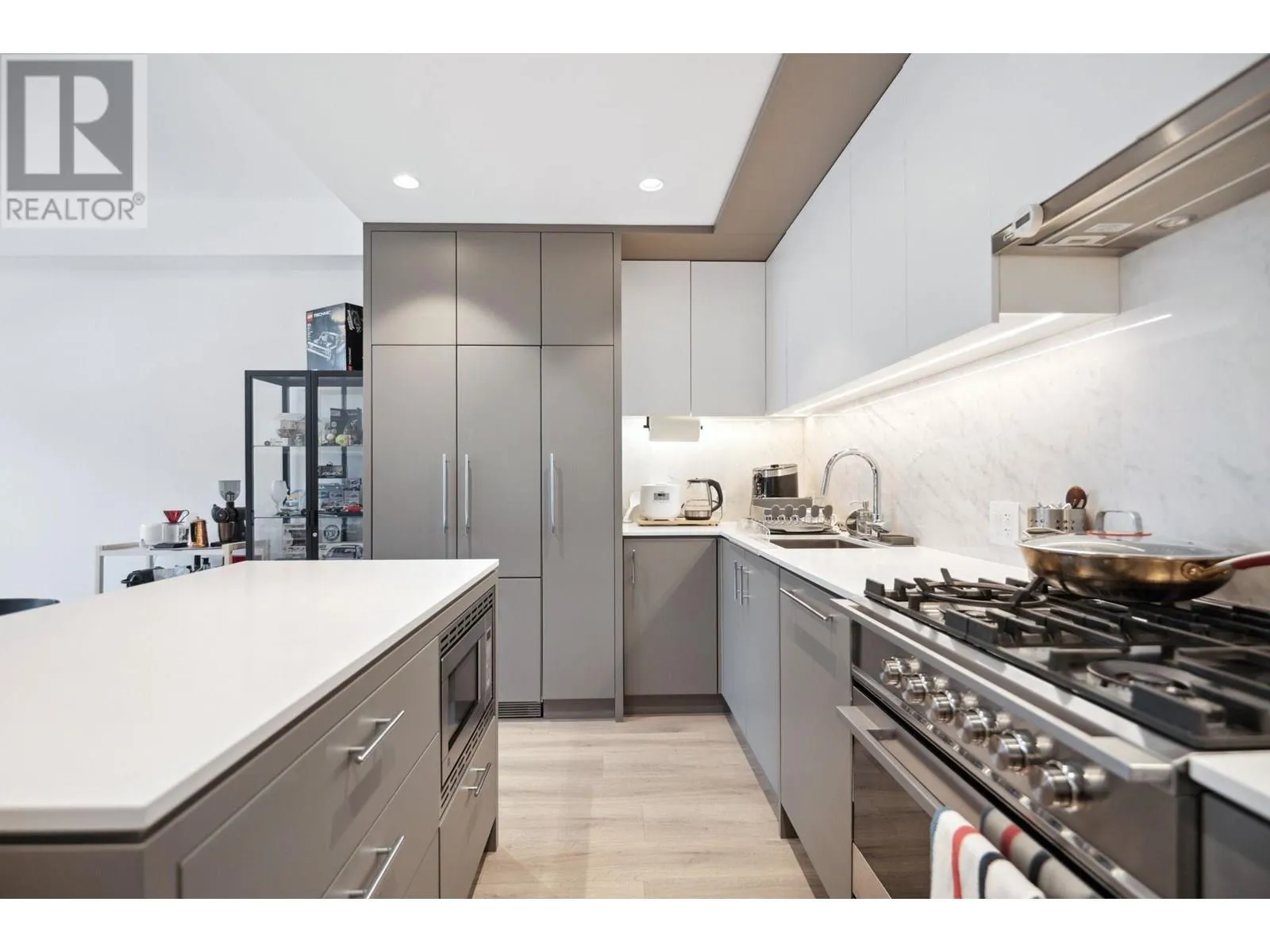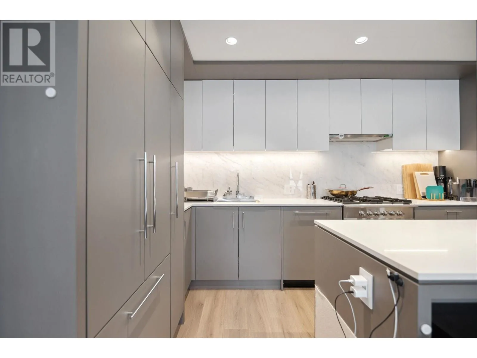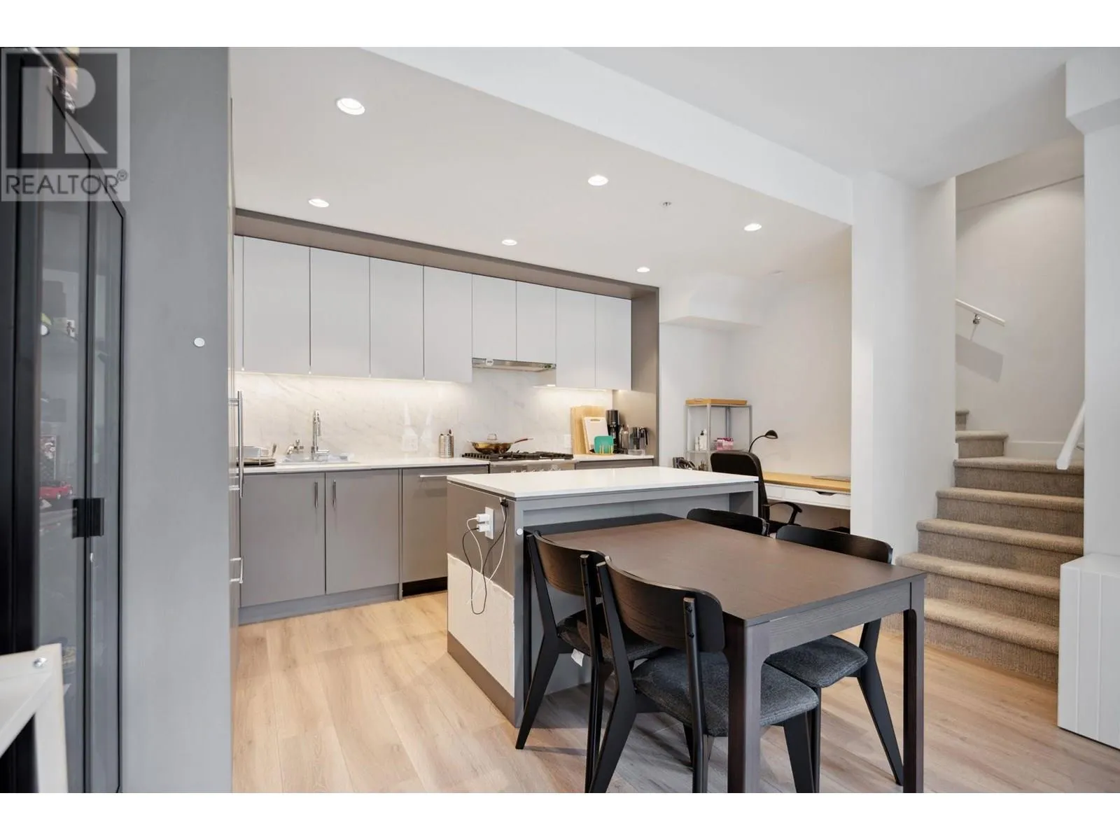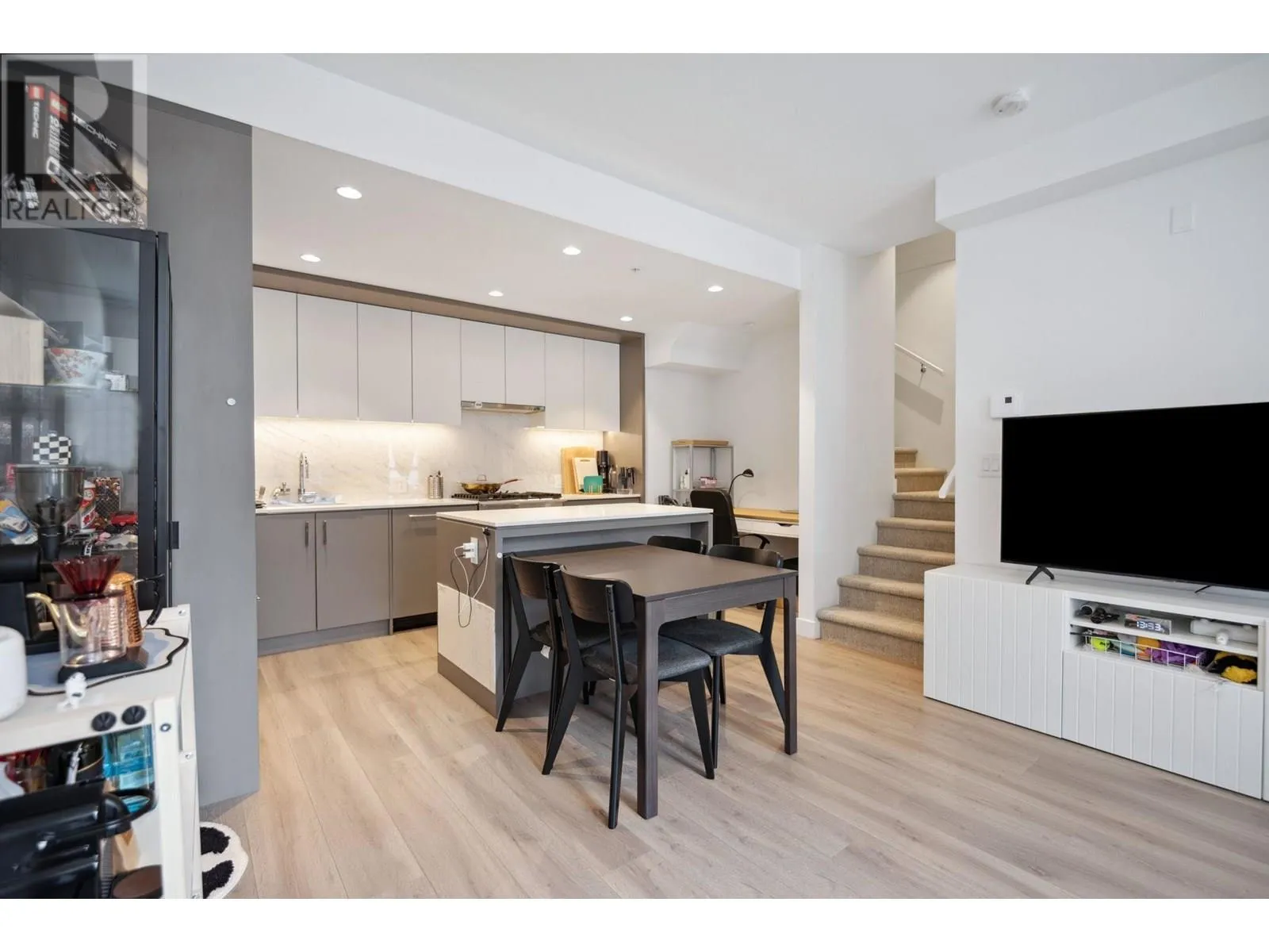 KIN Collection by Beedie - a stylish 2-bedroom + nook + 3 bath+ 400sf rooftop patio townhome in Metrotown´s Royal Oak area. This elegant home boasts a modern open-concept kitchen with Fisher & Paykel appliances, a gas stove, and natural wood accents. The functional layout two bedrooms on upper level, including a spacious primary suite and a beautifully finished ensuite, a nook space ideal for a home office or more pantry, and comes with one EV ready parking + storage. Enjoy an oversized laundry room with plenty of storage. Rooftop deck with panoramic view. Amenities: outdoor bbq area, gym, yoga studio and a party room with bar and outdoor table tennis and patio for entertainment. Steps to Royal Oak Station, shops and restaurants on Kingsway + Metrotown. OH JUL 20 (Sun) 2:30-4PM (id:27476)