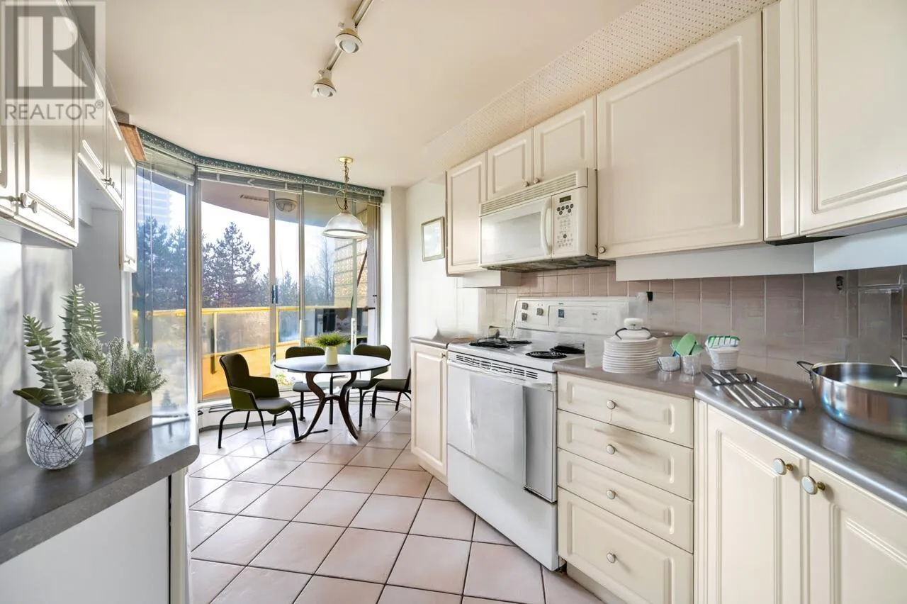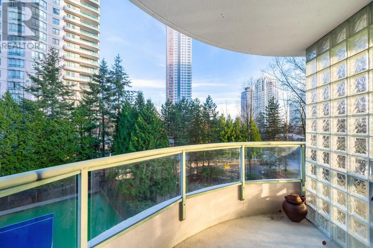 Spacious 2-bedroom, 2-bathroom unit in the heart of Burnaby's sought-after Metrotown area! This home is just a 3-minute walk to the SkyTrain station yet perfectly positioned away from train noise. Surrounded by shopping centers, supermarkets, restaurants, and all the amenities you could ask for, this unit offers unmatched convenience. Featuring an open-concept living area with abundant natural light, a designated dining space, and two balconies for enjoying the views. The secondary bedroom includes a space-saving murphy bed, overlooking the community tennis court, while the building provides access to an enclosed glass pool and other recreational facilities. An ideal place to call home with comfort and accessibility combined! (id:27476)