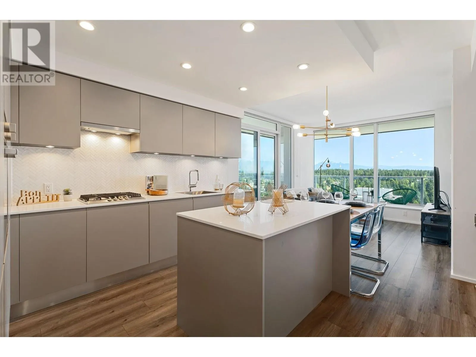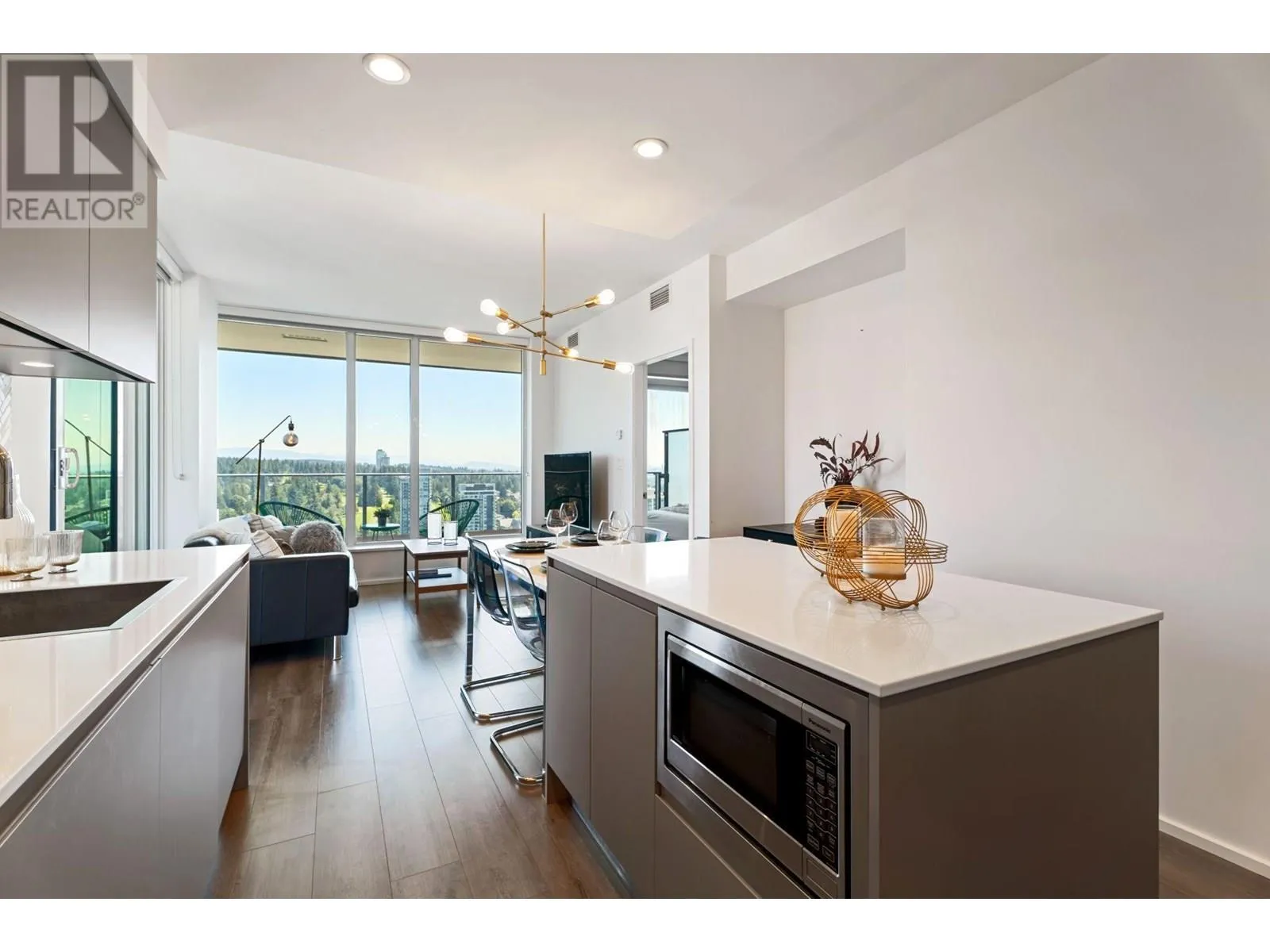 This beautiful northeast corner unit in the desirable City of Lougheed offers stunning views from every angle. Enjoy breathtaking views of the Fraser River, golf course, and mountains, all without any obstructions. The home features three bedrooms and two full bathrooms. The well-designed layout includes a kitchen with Bosch appliances, a large center island, and a spacious living room with a thoughtful layout that allows you to fully enjoy the stunning scenery. The large balcony is perfect for entertaining family and friends. Conveniently located within a shopping mall, you'll have easy access to shops, banking, restaurants, and cafes. Plus, the SkyTrain station is just steps away, offering an unbeatable combination of luxury living and convenience. (id:27476)