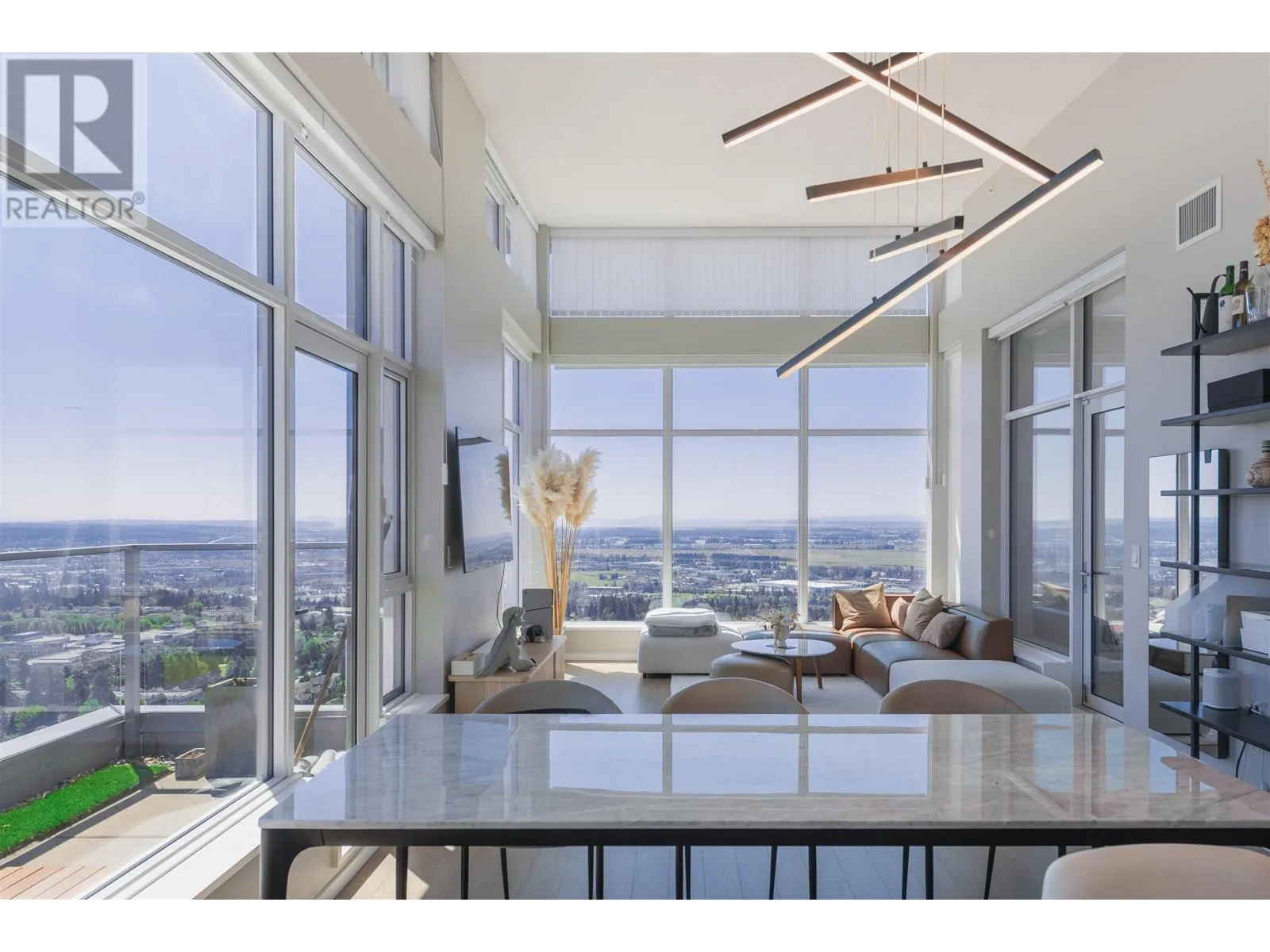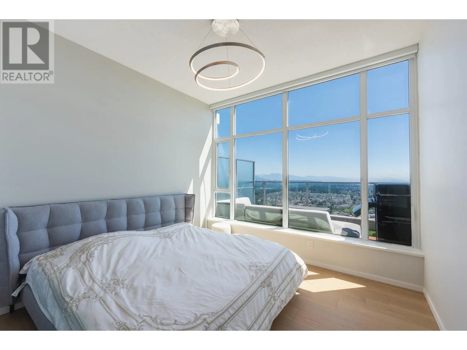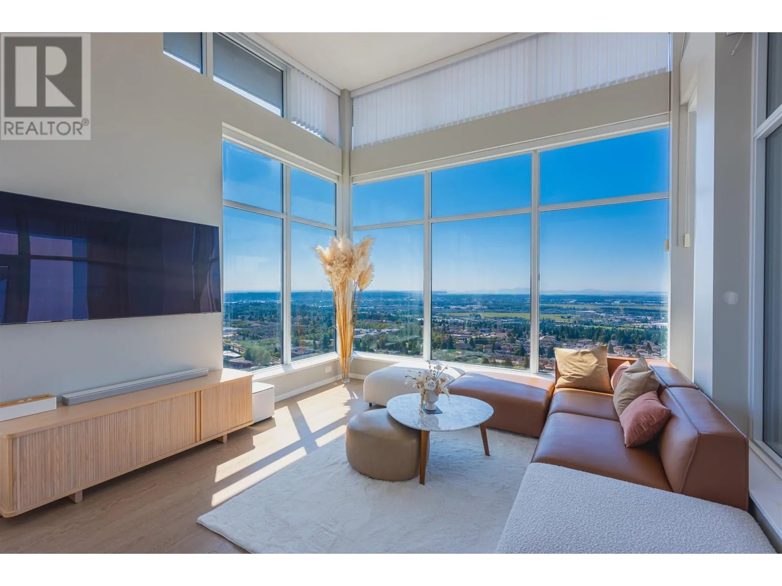 Enjoy luxury penthouse living in the heart of Metrotown! This meticulously maintained home features soaring ceilings, sun-drenched interiors, and 270-degree unobstructed views including Mount Baker and the city skyline. Two spacious decks provide the perfect setting for outdoor relaxation or entertaining. Upgrades include premium flooring, modern light fixtures, custom interior doors, and elegant window drapes. Designer furniture is included, making this an exceptional turn-key opportunity. Each bedroom comes with its own walk-in closet, and the gourmet kitchen is equipped with high-end appliances. Enjoy over 5,000 square ft of residents-only amenities including a full-size gymnasium, fitness studio and study rooms. Shwoing by appointment. Showing by appointment. (id:27476)