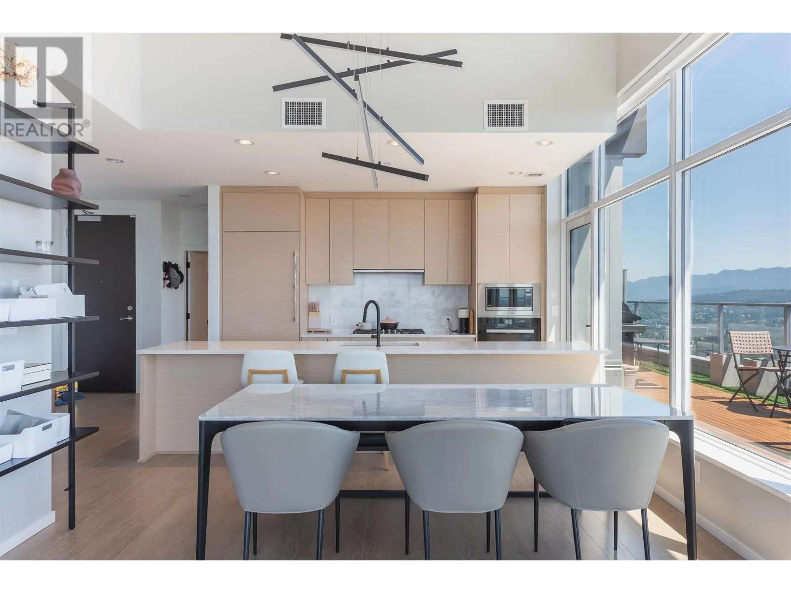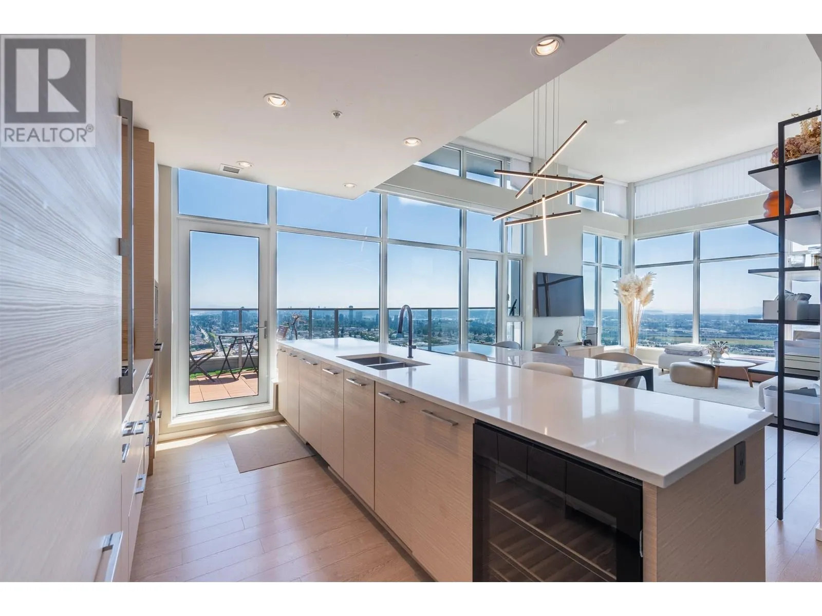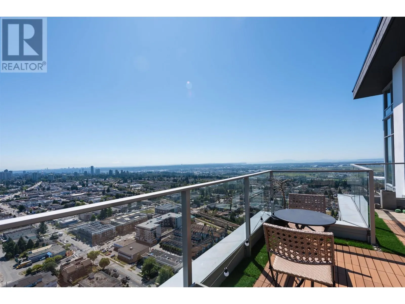 Enjoy luxury penthouse living in the heart of Metrotown! This meticulously maintained home features soaring ceilings, sun-drenched interiors, and 270-degree unobstructed views including Mount Baker and the city skyline. Two spacious decks provide the perfect setting for outdoor relaxation or entertaining. Upgrades include premium flooring, modern light fixtures, custom interior doors, and elegant window drapes. Designer furniture is included, making this an exceptional turn-key opportunity. Each bedroom comes with its own walk-in closet, and the gourmet kitchen is equipped with high-end appliances. Enjoy over 5,000 square ft of residents-only amenities including a full-size gymnasium, fitness studio and study rooms. Shwoing by appointment. Showing by appointment. (id:27476)