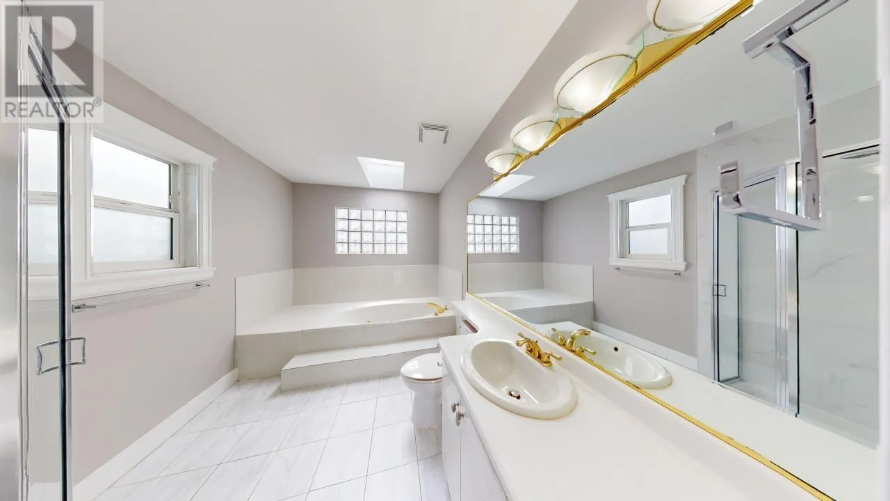 Welcome to this beautiful home with over 2800 sqft on an approx. 6500 sqft lot. Features: double garage and open parking in the back [4 cars]. TOP level has 4 BDRMS & 3 baths, big master bath with jacuzzi. 2 BDRMS share a bath plus 1 more common bath. MAIN level: LARGE size living and dining. Updated kitchen with Island opens into the family room. 1 BDRM and 1 full bath. Basement offers 1 BDRM with full bath. Home was renovated in 2013 with new paint inside/outside, new kitchen, double glaze windows, all carpet and laminate floors and light fixtures. Walking distance to both Cariboo Hill Secondary and Armstrong Elementary. Close to transit and SFU. Directions: turn on Cascade St. from Armstrong Ave., right on 15th Ave., then left into the alley. Third house on the right. A must see !!!! (id:27476)
