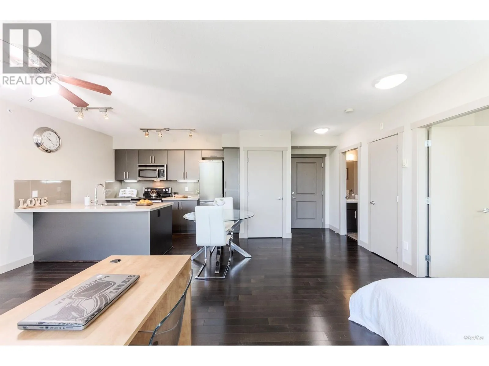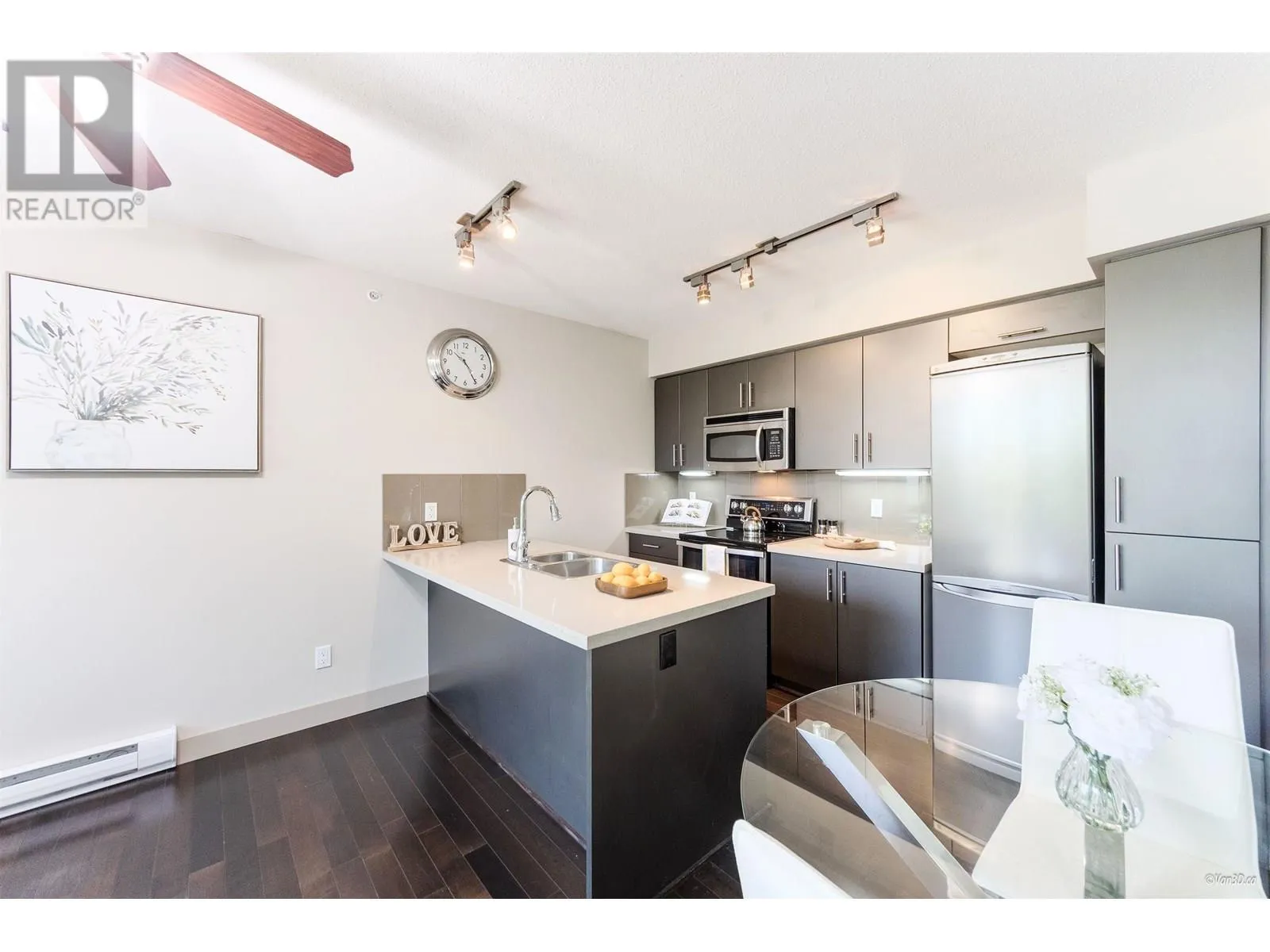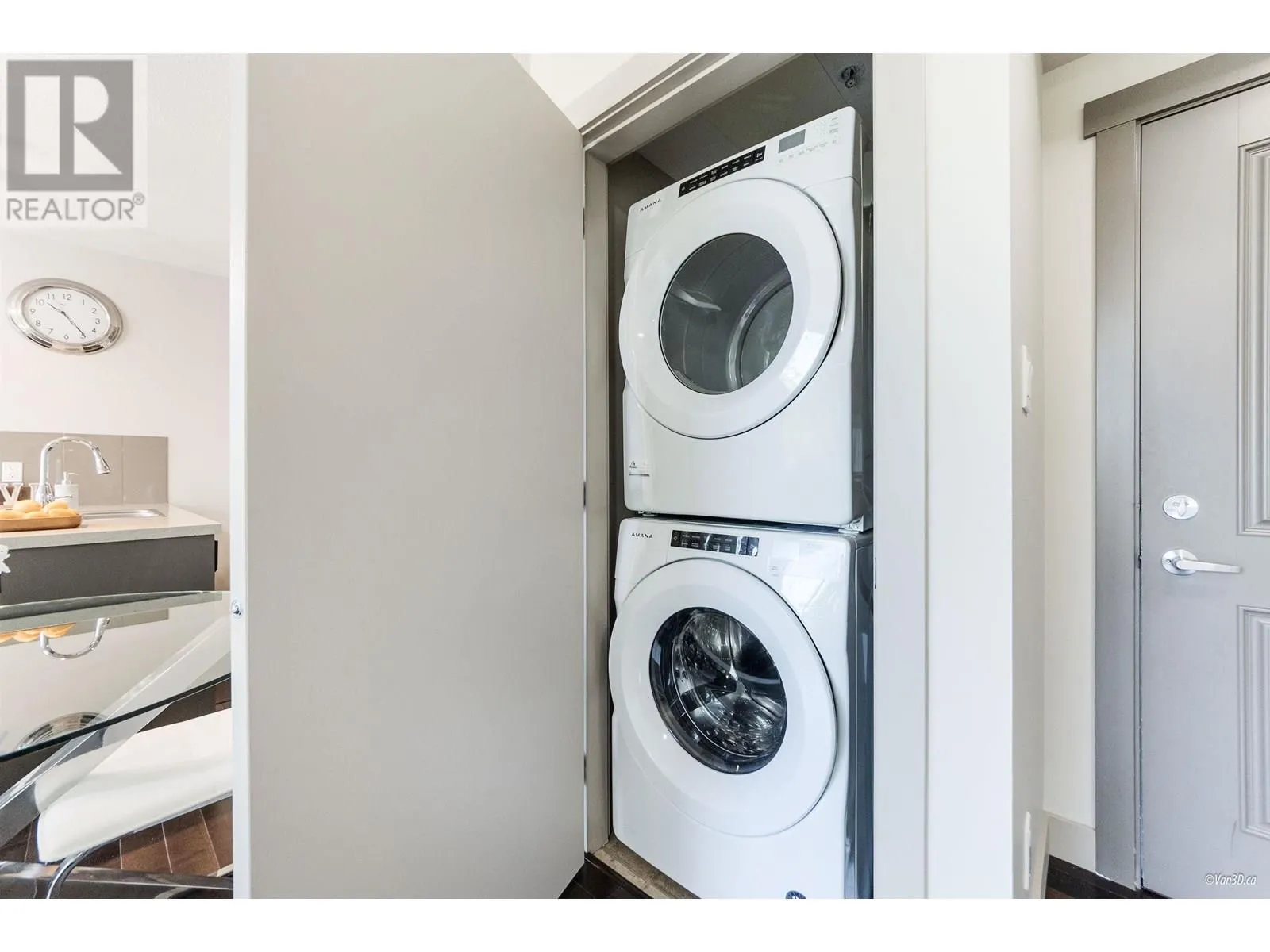 The Hub at University by Liberty Homes. Concrete construction and no other unit above! This enables the unit to stay extra quiet and peaceful. This also means that there is no risk of water leak happening by human mistakes from the above. South facing and ample natural sunlight. Smart and square layout makes the unit feel much more spacious. Private outlook with no building directly across; enjoy seasonal beauty from trees outside-lush privacy in Spring and Summer, autumn colors in Fall, and city views in Winter. Freshly painted. Newer washer and dryer (2020). Steps from the bus loop, shops, restaurants, daycare, and elementary school. Furniture may be included (optional). 1 parking and 1 locker. Shared car wash stall available in P3. Must see! First come first serve. (id:27476)