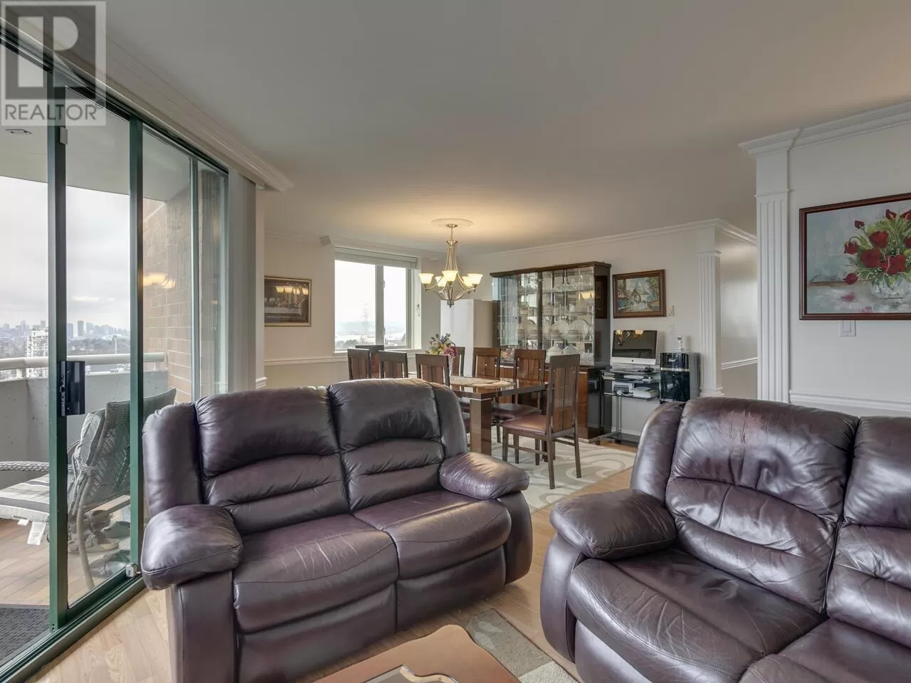 Stunning CORNER unit in Burnaby Heights offering breathtaking panoramic south, west, and north VIEWS of Brentwood, Metrotown, Downtown, the Ocean, and the North Shore Mountains. This spacious suite features living/dining areas perfect for entertaining, a large kitchen with ample storage, and two generous bedrooms, including a primary with a walk-through closet and cheater ensuite. Enjoy balconies on both the North and South sides. Steps from trendy restaurants, cafes, shops, and minutes to Downtown and the North Shore. Well-maintained Bosa concrete building with updates (roof, plumbing, windows, elevator). Includes 1 parking and 1 storage. Extra parking available to rent. Don't miss out! Call your agent for a private appointment or come to the Open House Sat. Oct. 25, 2-4! (id:27476)