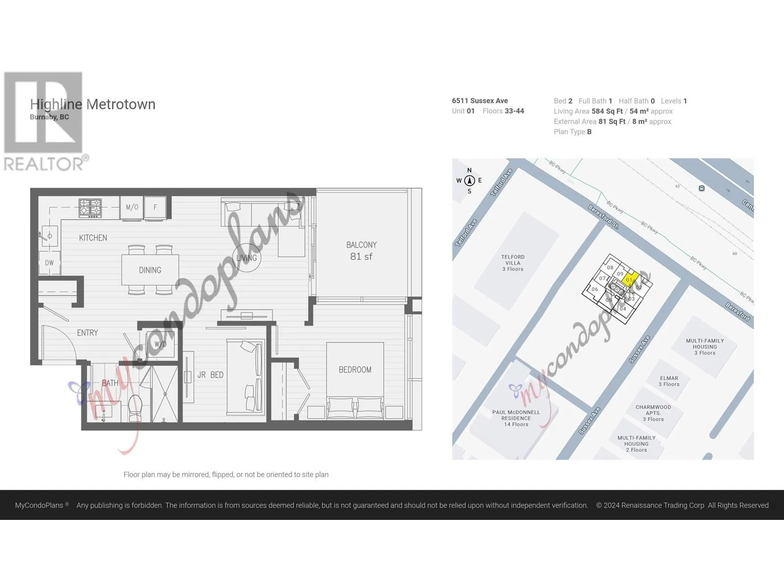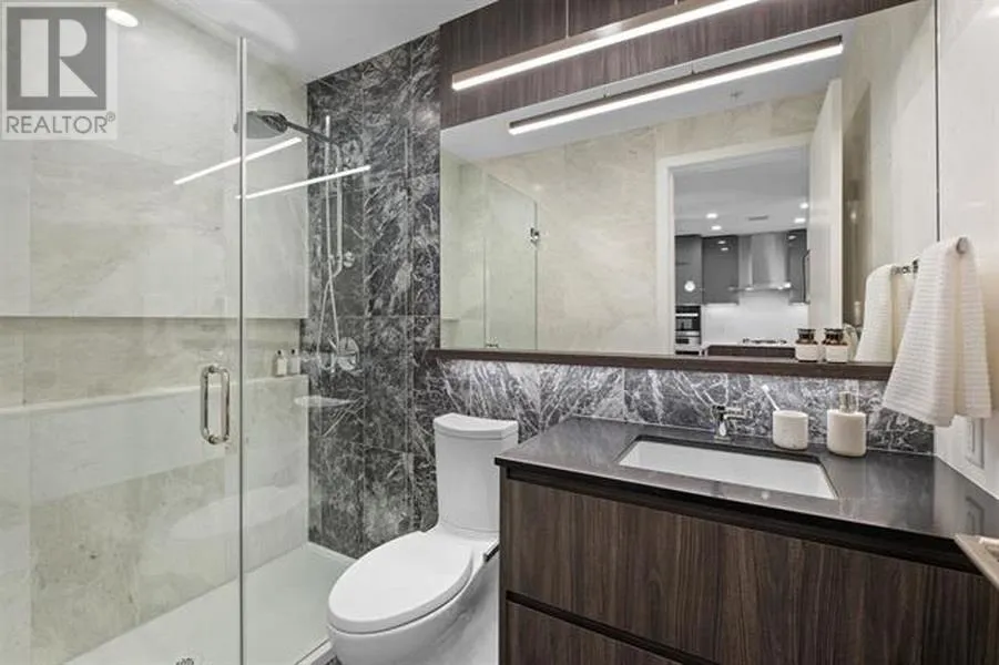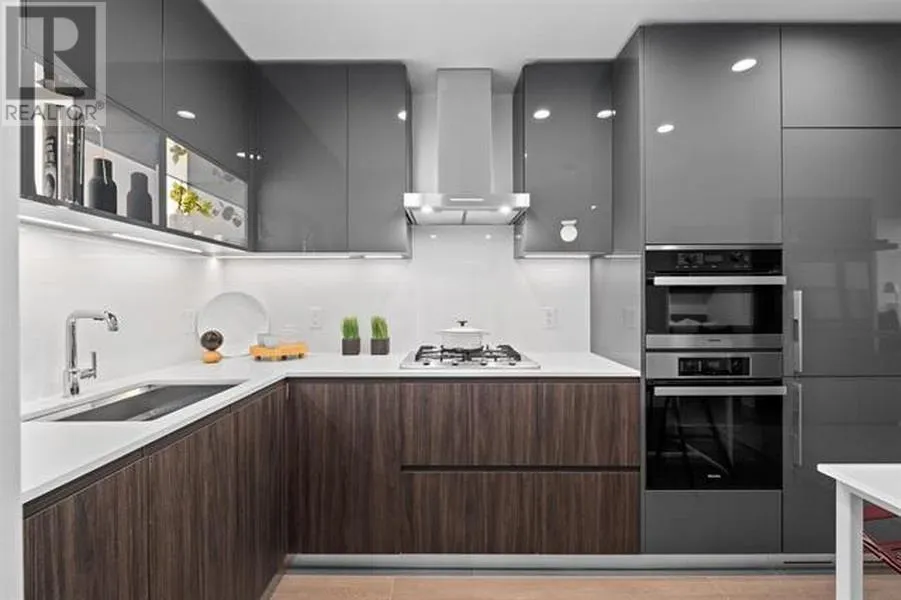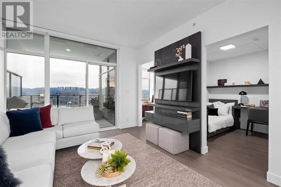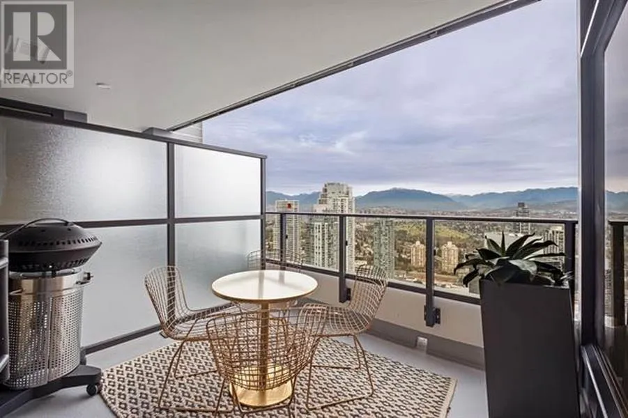 "Highline in Metrotown," luxury condo located in heart of Metrotown. Great layout without useless space, features: 1 bedrm plus 1 Den LARGE enough as 2nd bedroom; A spacious living room with a functional design boasts Italian designer kitchen cabinets; Whole Miele top kitchen appliances; Rarely high 9' ceiling; Marble-clad bathroom creating a spa-like ambiance for relaxation; and beautiful high-level view. "Highline" offers club-grade amenities on the 4th and 11th floors, including a fully equipped gym, sauna, steam room, lounge, and two guest suites. The SkyTrain Metrotown station is just across the street, providing urban extreme conveniences and cultural attractions, and defining a life style of unparalleled convenience and connectivity. One parking P6-R179# & One Locker P6-2# (id:27476)