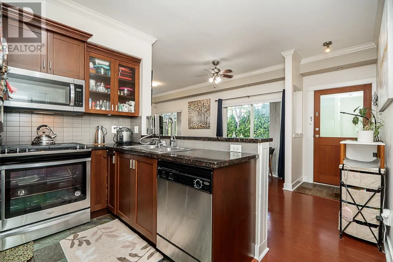 METROTOWN AREA. Compare this 2 bedroom + 1 bath across Burnaby South Secondary School. Aragon's Acacia Gardens is a family oriented community that features a playground, a bike room and a car wash area. Own an electric vehicle? There are 4 EV charging stations in the visitor's parking. The property has a functional lay-out with stainless steel appliances, fireplace, large walk in closet and 2 full size side by side parking stalls. Bright and modern, this ground level townhome is a great starter home. Close to skytrain, parks, stores and metrotown. (id:27476)
