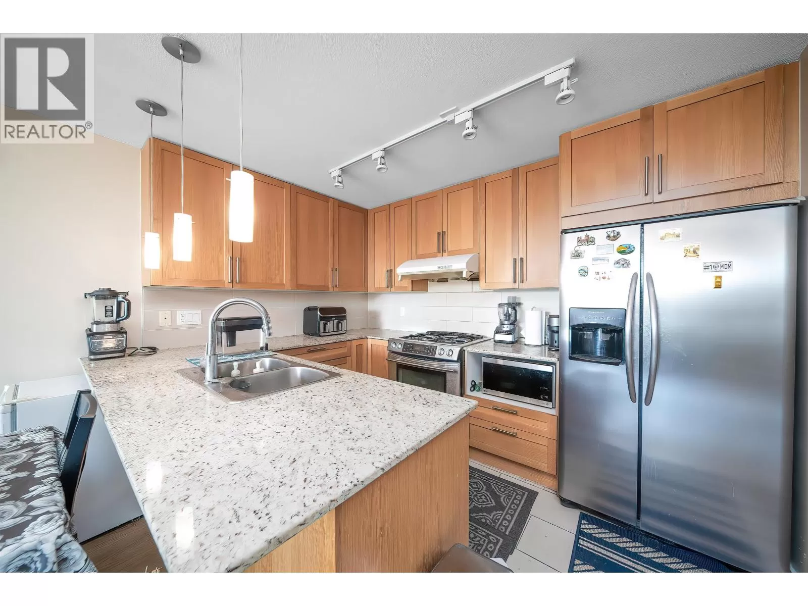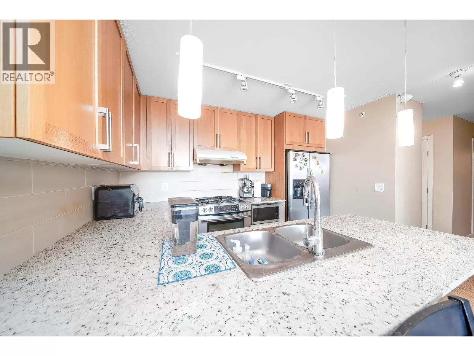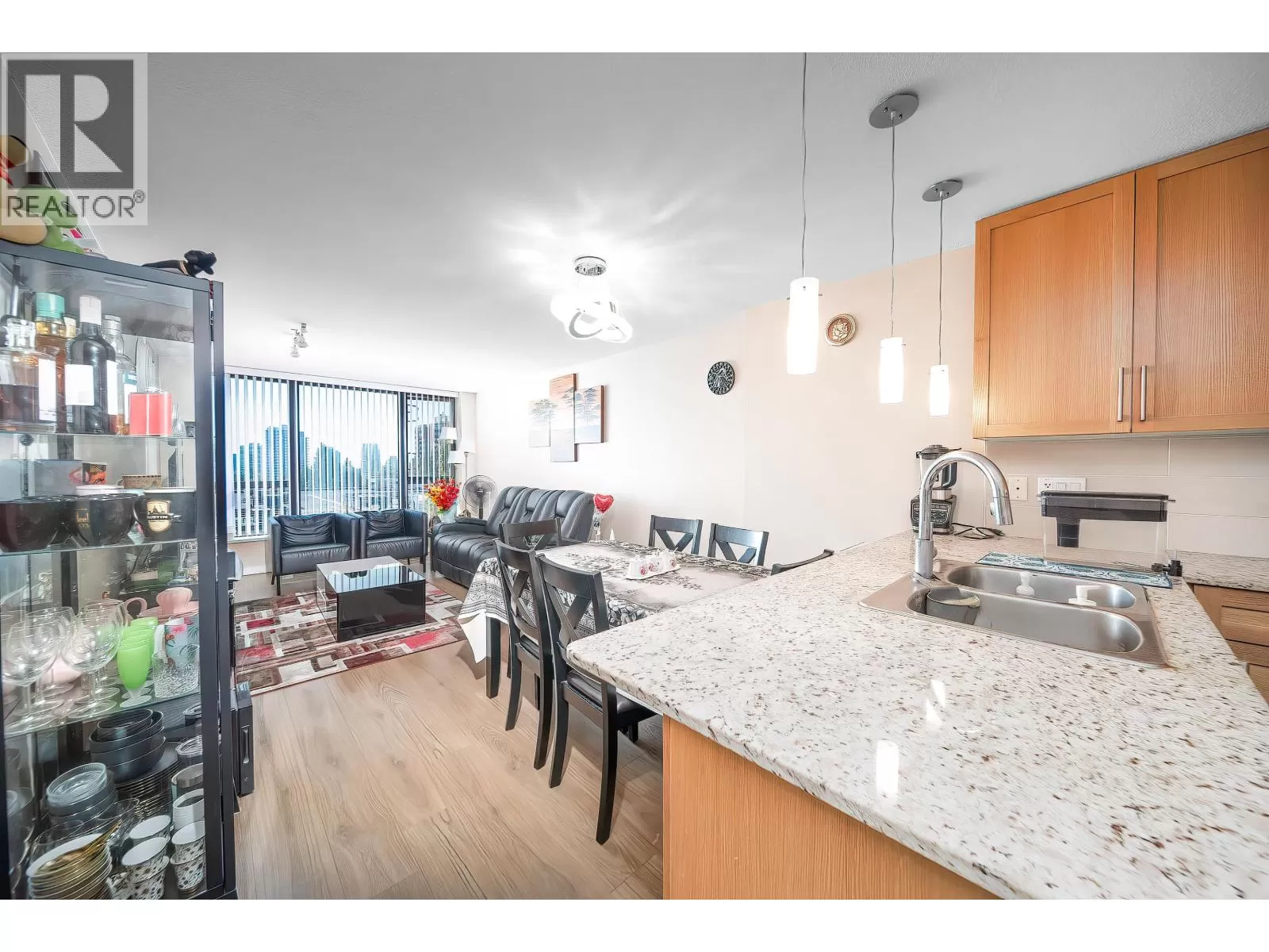 Welcome to West at Highgate Village, a quality BOSA-built concrete tower in prime Burnaby South. This bright south-facing 3 bed 2 bath home on the ideal 5th floor is perfect for families-not too high, not too low. UNIQUE to the 5th floor: ACCESS to THREE elevators and TWO separate entry points, offering unmatched convenience and safety-no more long elevator waits! Thoughtfully designed layout with no wasted space. Spacious primary bedroom. Granite counters in kitchen and baths, newer laminate floors. Large covered balcony with access from living room and bedroom. Includes TWO secure underground parking stalls and ONE storage locker. Amenities: gym and lounge. Steps to bus, Save-On, Shoppers, Club16, Starbucks, banks, clinics, library, Edmonds Centre, parks and more.Pet and rental friendly! (id:27476)