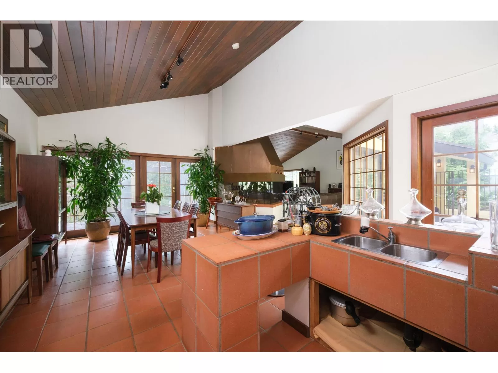 Premier BUCKINGHAM HEIGHTS location! QUALITY CUSTOM BUILT WEST COAST style home with a touch of Italy! Unique entrance from a large courtyard! Tile & hardwood flooring. Wood framed doors & windows throughout home. Large central fireplace. Wood vaulted ceilings on main w/track lighting. Built-in bar w/tiled counter & double sink in dining room. BRIGHT large kitchen w/ample counter space & storage. Industrial sized gas stove, fridge & triple basin sink!. All rooms generous in size. Hardwood stairs. Spacious landing. 4 bed up! Large Master bed double patio doors off to a large balcony. 6 pc ensuite! Large in-house storage room. Convertible 1 or 2 bed suite w/patio. 5 patios + 1 balcony = 988 SF outdoor space! Mature landscaping. Walking distance to Buckingham Elem. Close to Deer Lake Park. (id:27476)