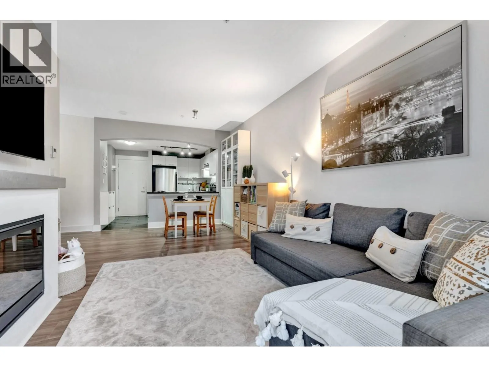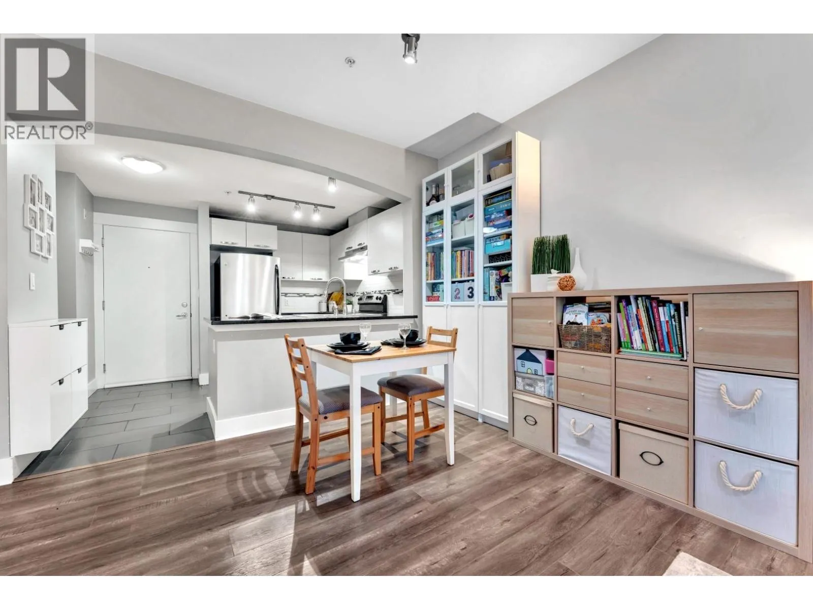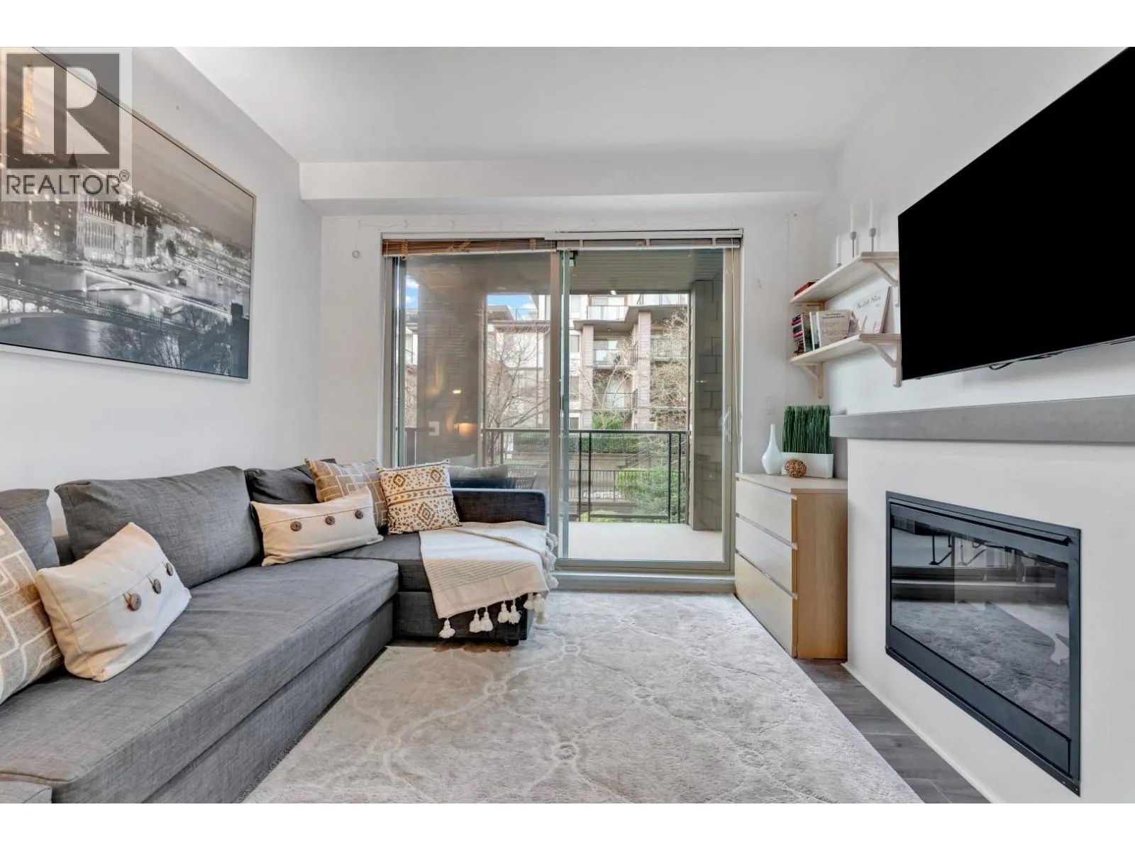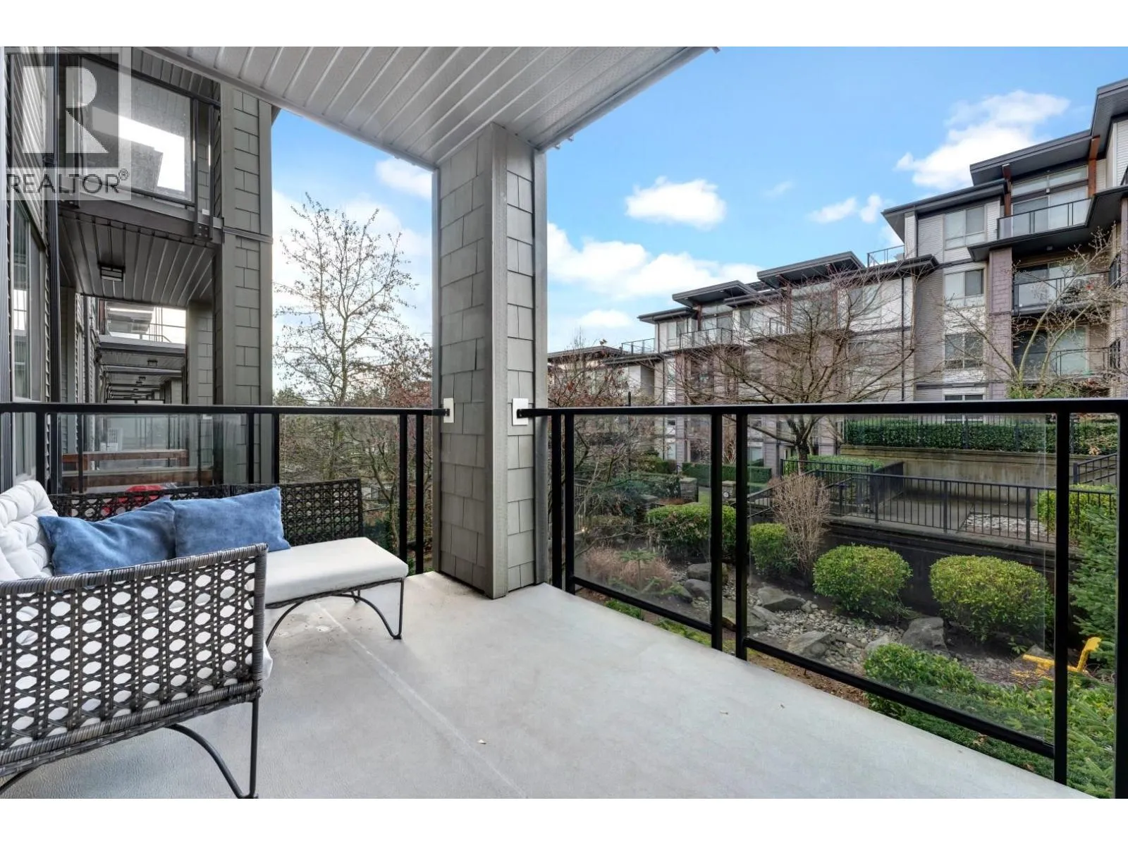 Award-winning GREEN development by eco-conscious builder Adera, nestled in Byrne Creek Ravine Park! This 1 bedroom + den, 1 bath condo boasts an open layout with a well-designed kitchen featuring granite countertops & SS appliances, seamlessly connected to the dining area and a living room with a cozy electric fireplace. High-quality laminate flooring, in-suite laundry & a private balcony overlooking a garden and tranquil water features complete this charming home. Includes 1 parking & 1 locker; complex has EV chargers and ample visitor parking. Pets & rentals allowed. Seasons Club amenities: gym, sauna, yoga studio, lounge, party room, playground and outdoor BBQ. Conveniently located near Taylor Park Elementary, Edmonds Skytrain, Market Crossing & Highgate Malls and Riverway Golf Course. A perfect blend of comfort, convenience, and eco-friendly living! (id:27476)