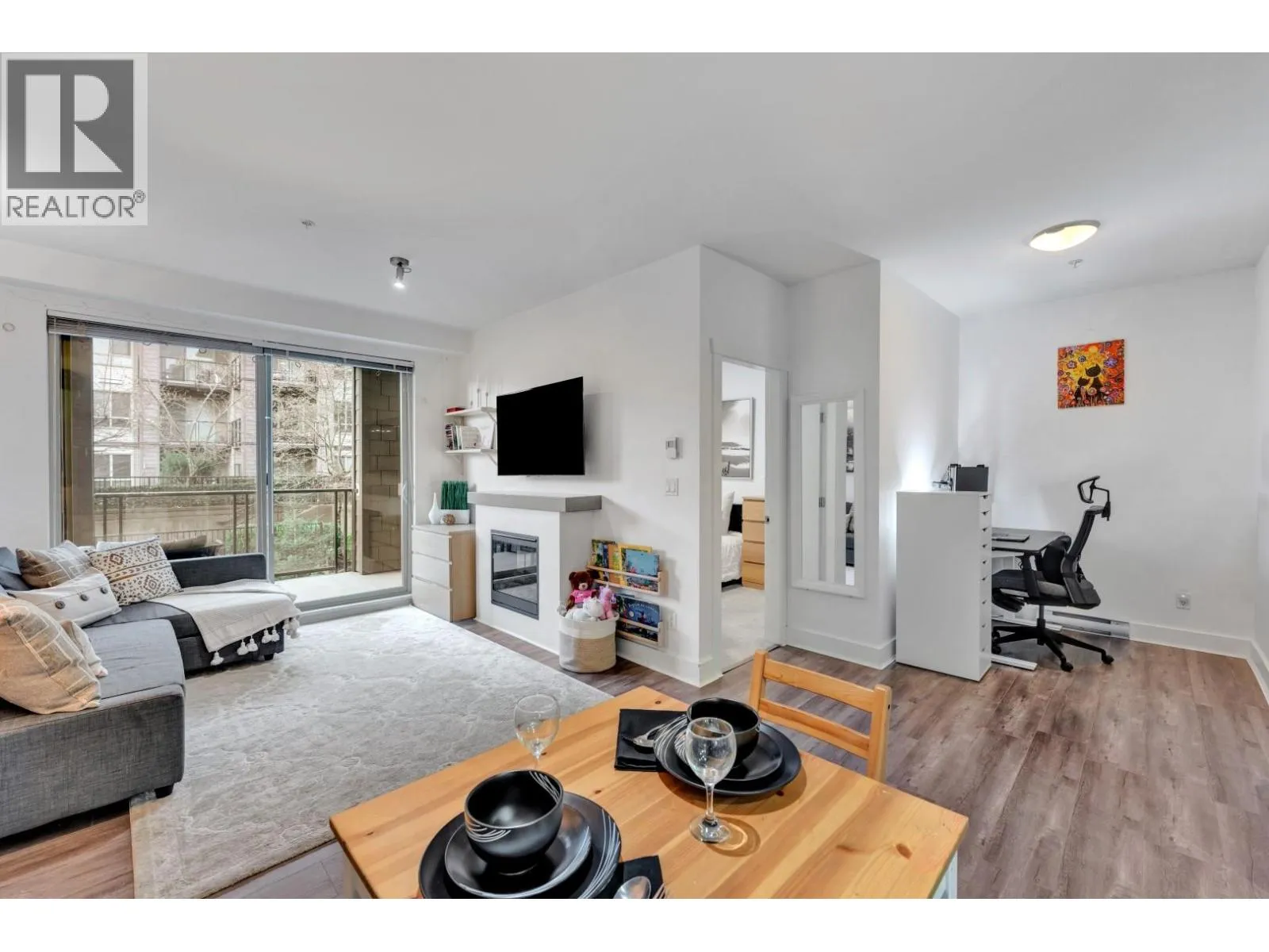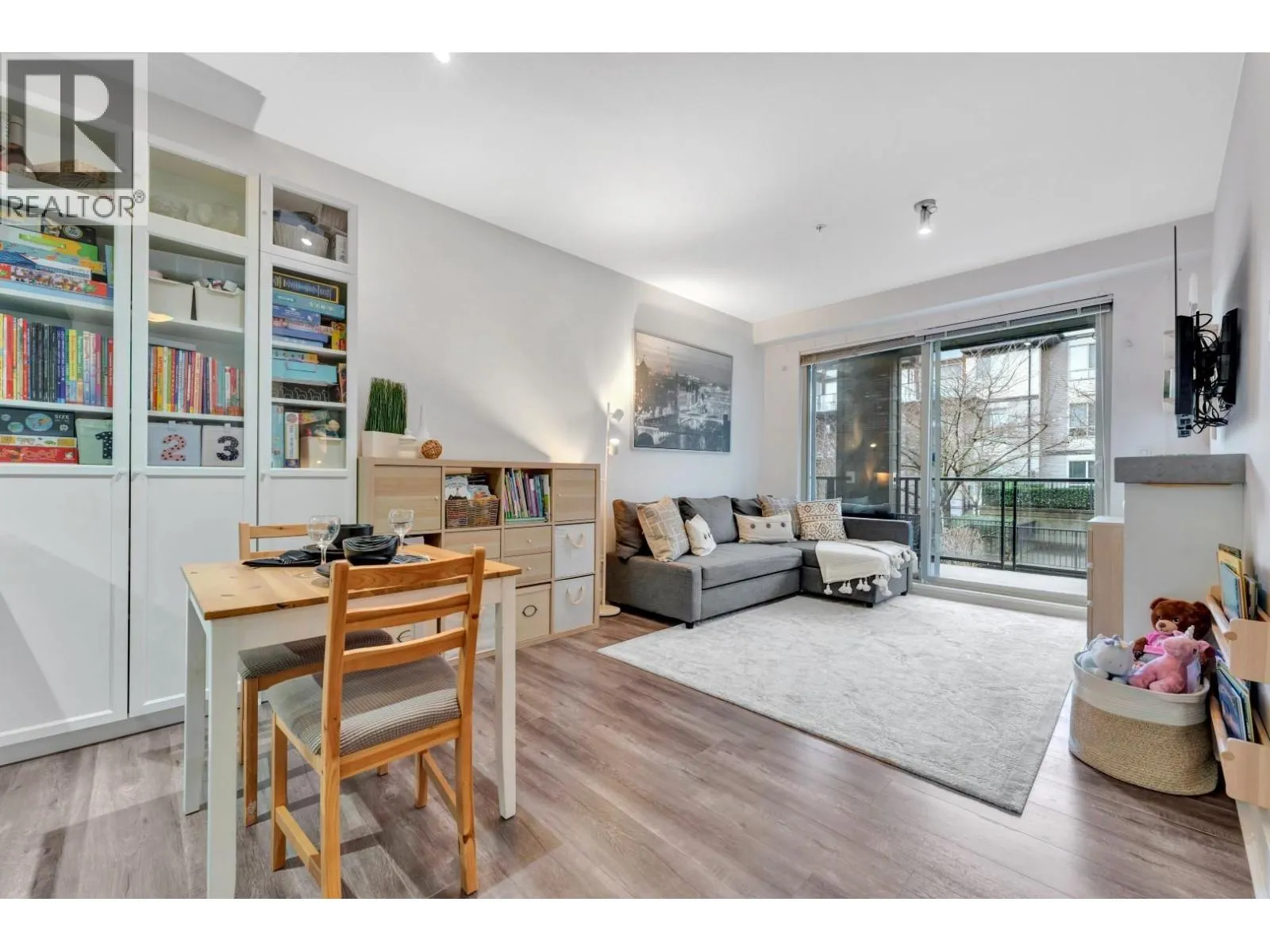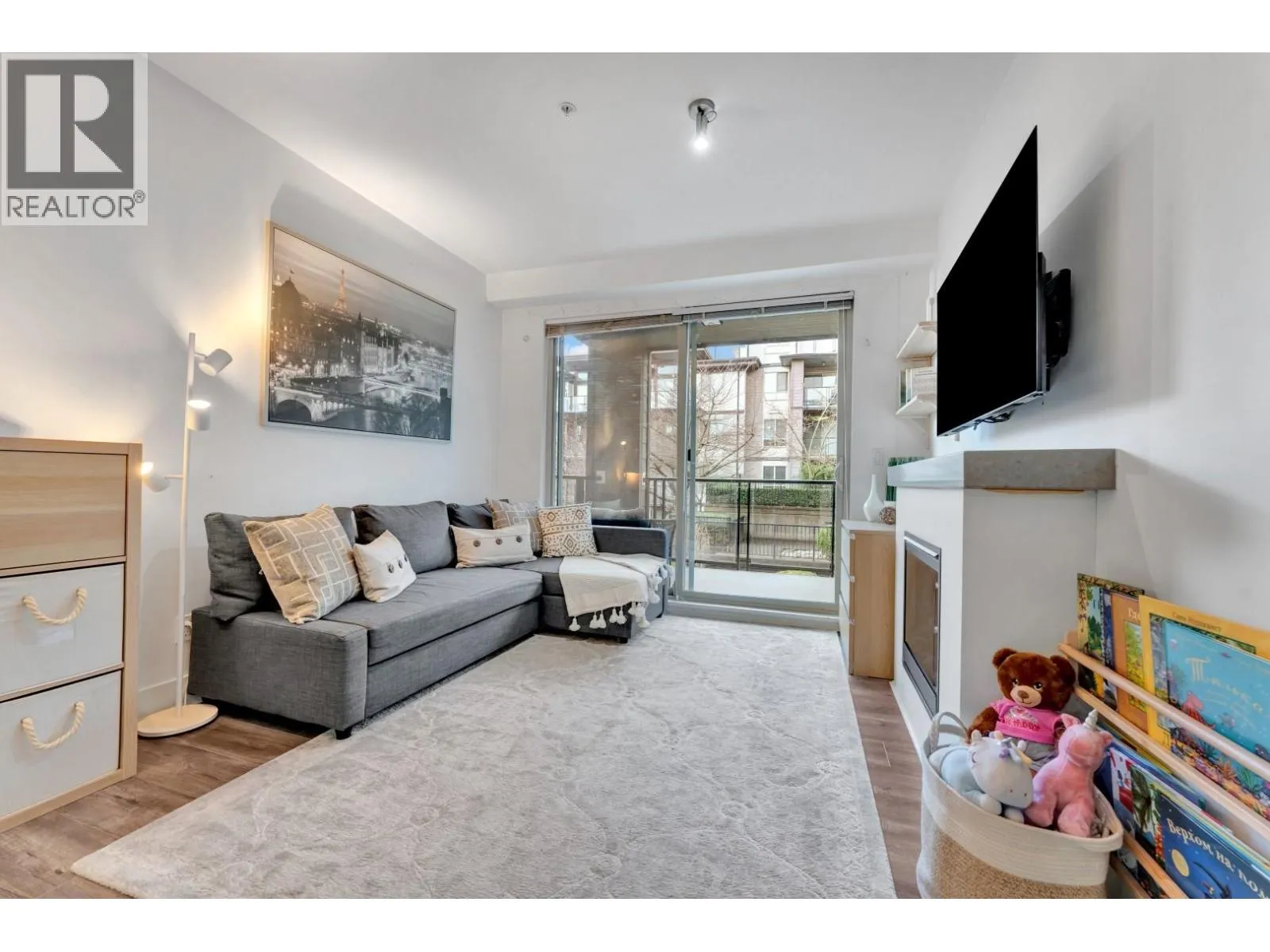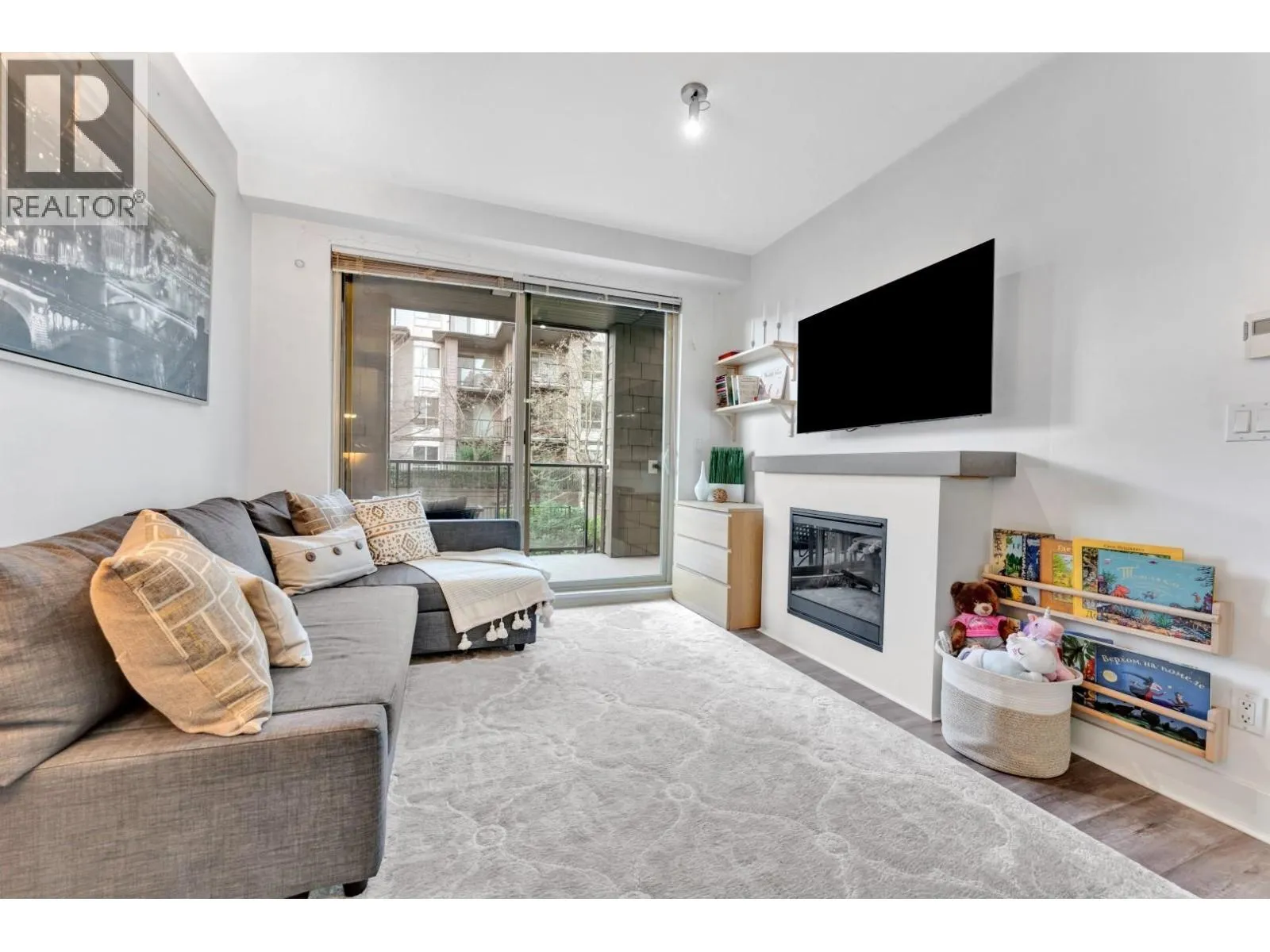 Award-winning GREEN development by eco-conscious builder Adera, nestled in Byrne Creek Ravine Park! This 1 bedroom + den, 1 bath condo boasts an open layout with a well-designed kitchen featuring granite countertops & SS appliances, seamlessly connected to the dining area and a living room with a cozy electric fireplace. High-quality laminate flooring, in-suite laundry & a private balcony overlooking a garden and tranquil water features complete this charming home. Includes 1 parking & 1 locker; complex has EV chargers and ample visitor parking. Pets & rentals allowed. Seasons Club amenities: gym, sauna, yoga studio, lounge, party room, playground and outdoor BBQ. Conveniently located near Taylor Park Elementary, Edmonds Skytrain, Market Crossing & Highgate Malls and Riverway Golf Course. A perfect blend of comfort, convenience, and eco-friendly living! (id:27476)