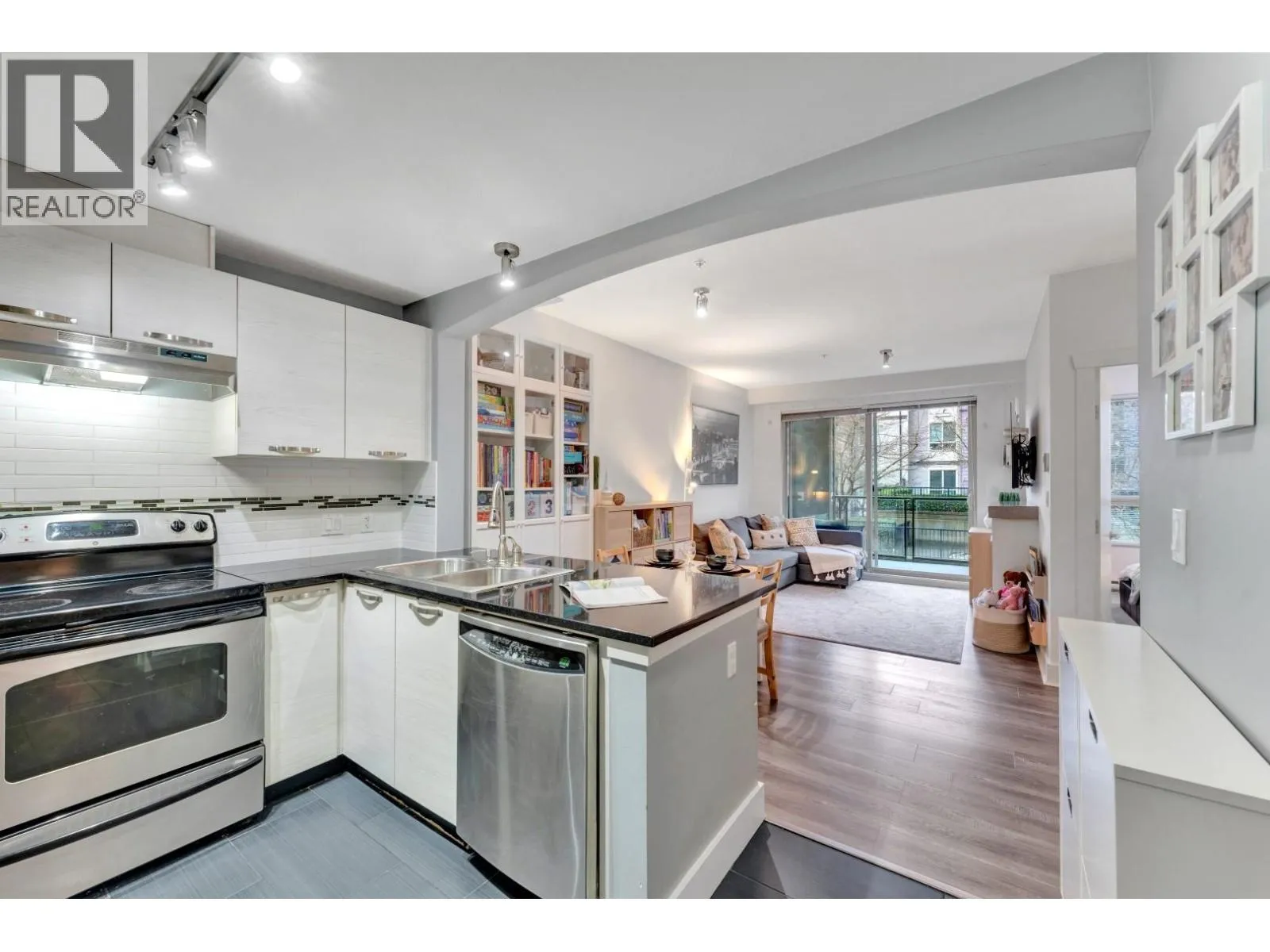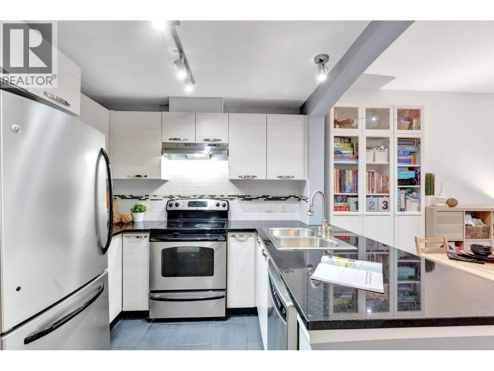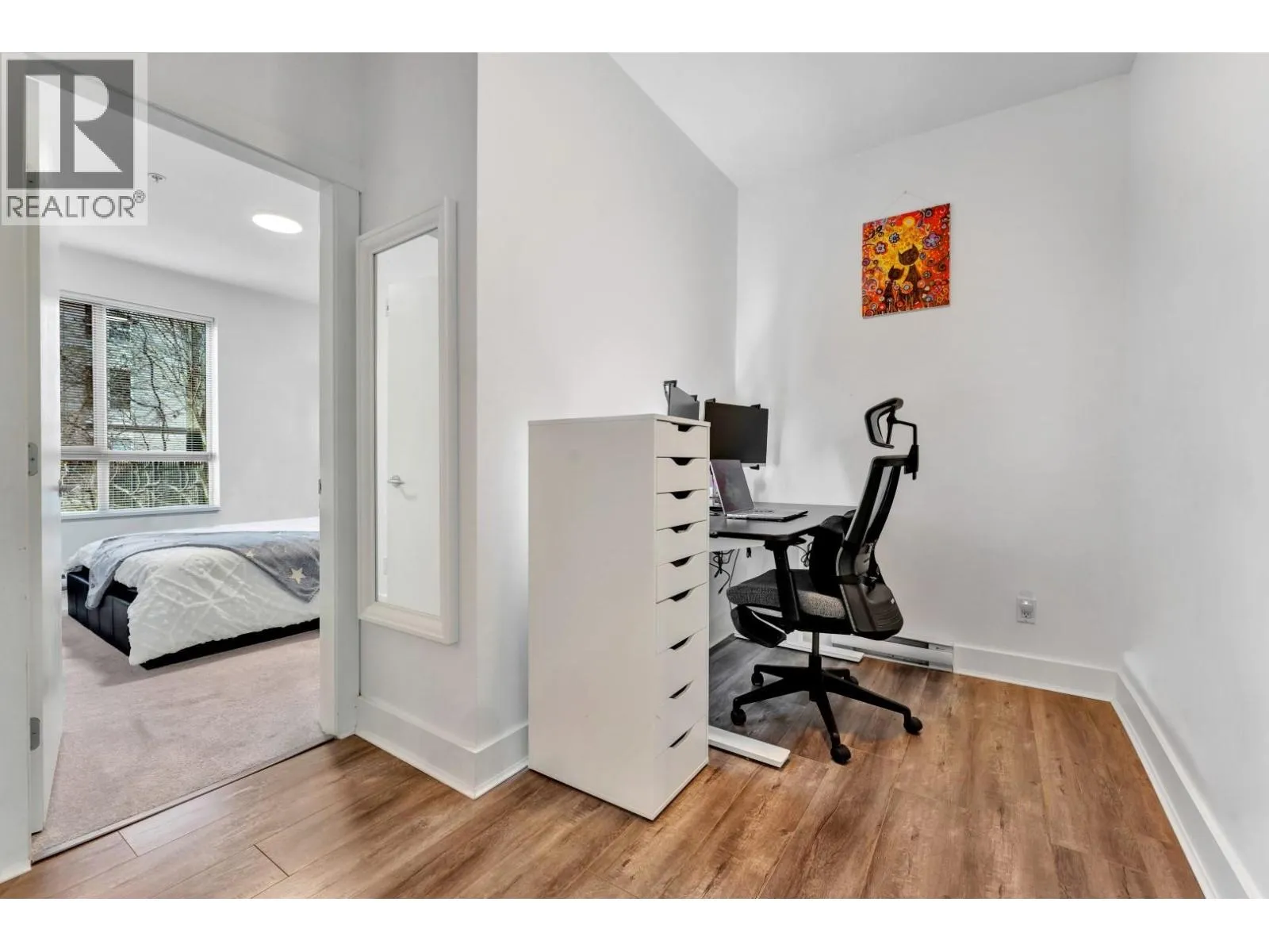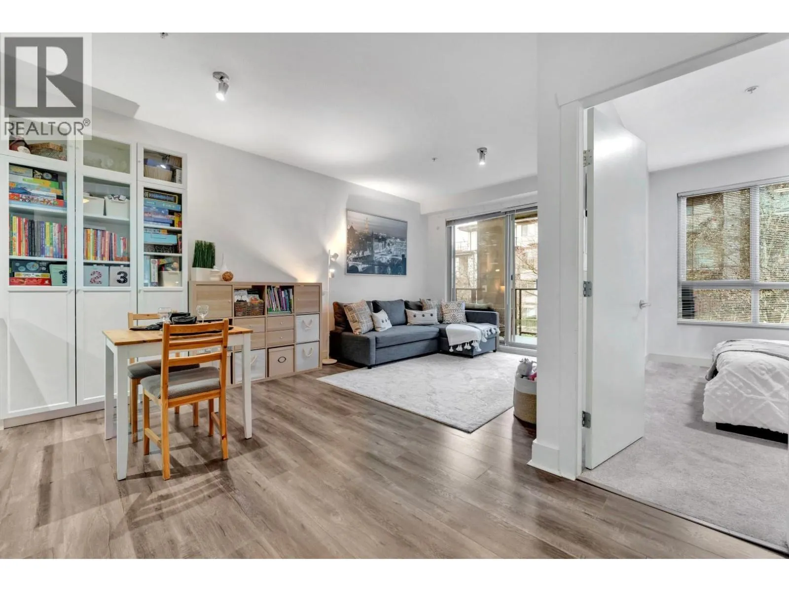 Award-winning GREEN development by eco-conscious builder Adera, nestled in Byrne Creek Ravine Park! This 1 bedroom + den, 1 bath condo boasts an open layout with a well-designed kitchen featuring granite countertops & SS appliances, seamlessly connected to the dining area and a living room with a cozy electric fireplace. High-quality laminate flooring, in-suite laundry & a private balcony overlooking a garden and tranquil water features complete this charming home. Includes 1 parking & 1 locker; complex has EV chargers and ample visitor parking. Pets & rentals allowed. Seasons Club amenities: gym, sauna, yoga studio, lounge, party room, playground and outdoor BBQ. Conveniently located near Taylor Park Elementary, Edmonds Skytrain, Market Crossing & Highgate Malls and Riverway Golf Course. A perfect blend of comfort, convenience, and eco-friendly living! (id:27476)