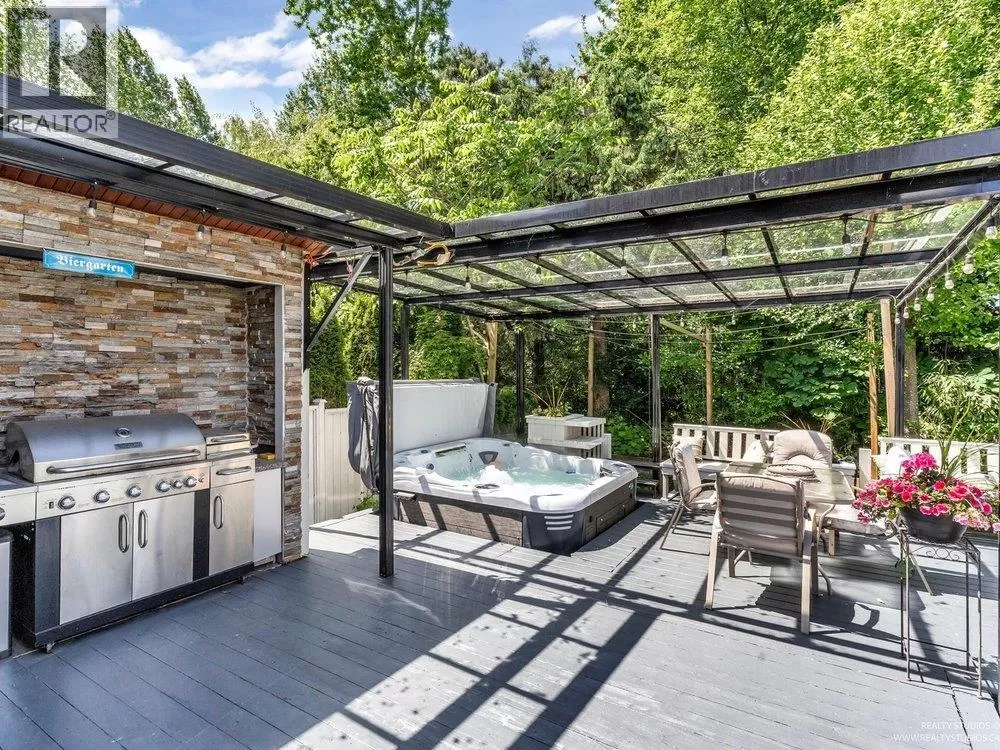 This beautifully cared for corner lot family home, owned by the same family since day one, offers the perfect blend of comfort and entertainment. With six bedrooms, five full bathrooms, and two half baths, it is ideal for growing families and hosting loved ones. Elegant Italian tile flows throughout, complementing spacious living areas designed for gatherings. Step outside to a lush backyard oasis featuring a covered jetted spa, outdoor fireplace, industrial natural-gas outdoor heater, and plenty of room for children to play. It also includes a one bedroom, one bathroom suite with a private entrance, perfect for extended family or as a mortgage helper. A warm and inviting home in one of Burnaby´s most desirable neighborhoods. (id:27476)