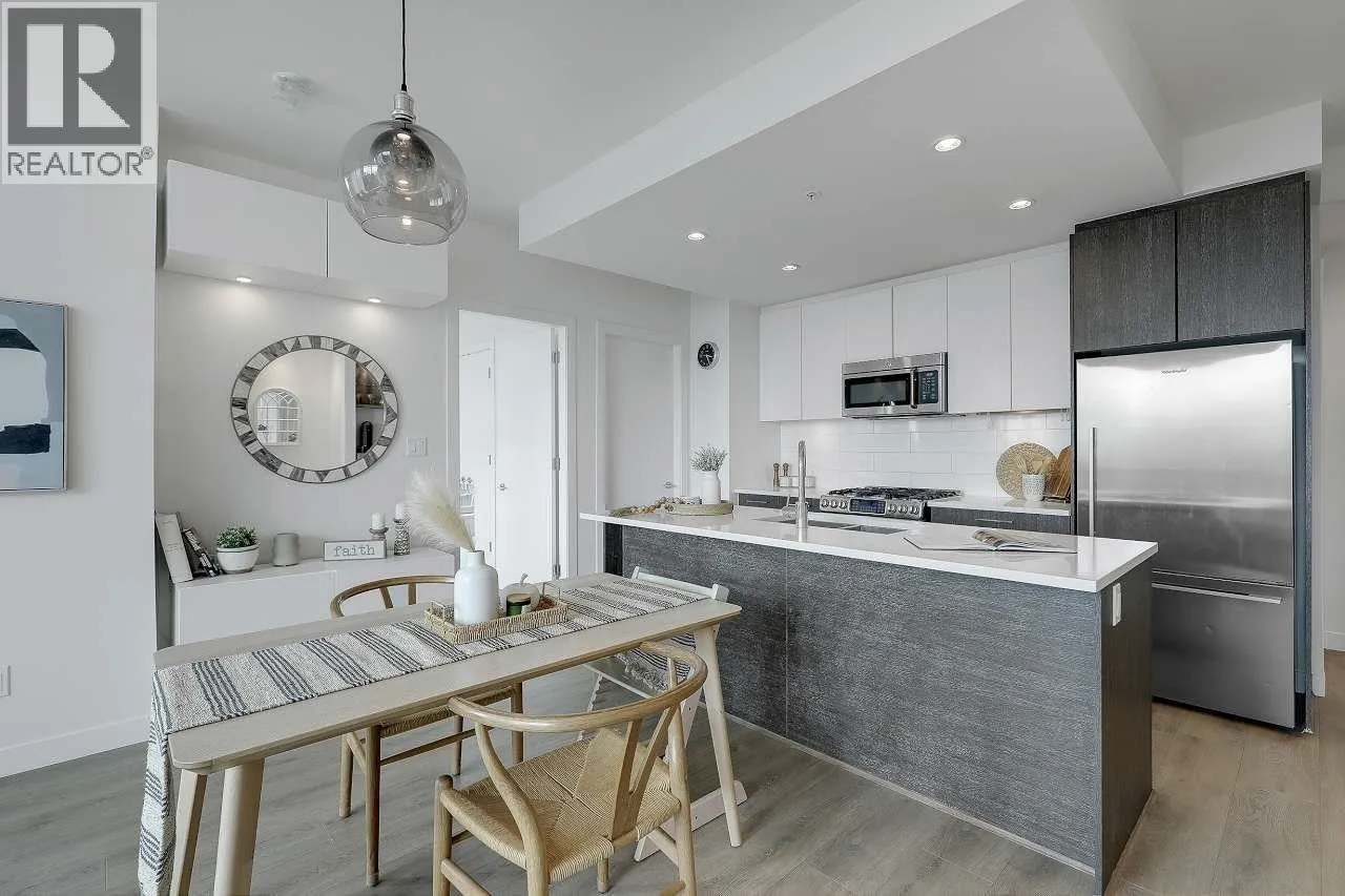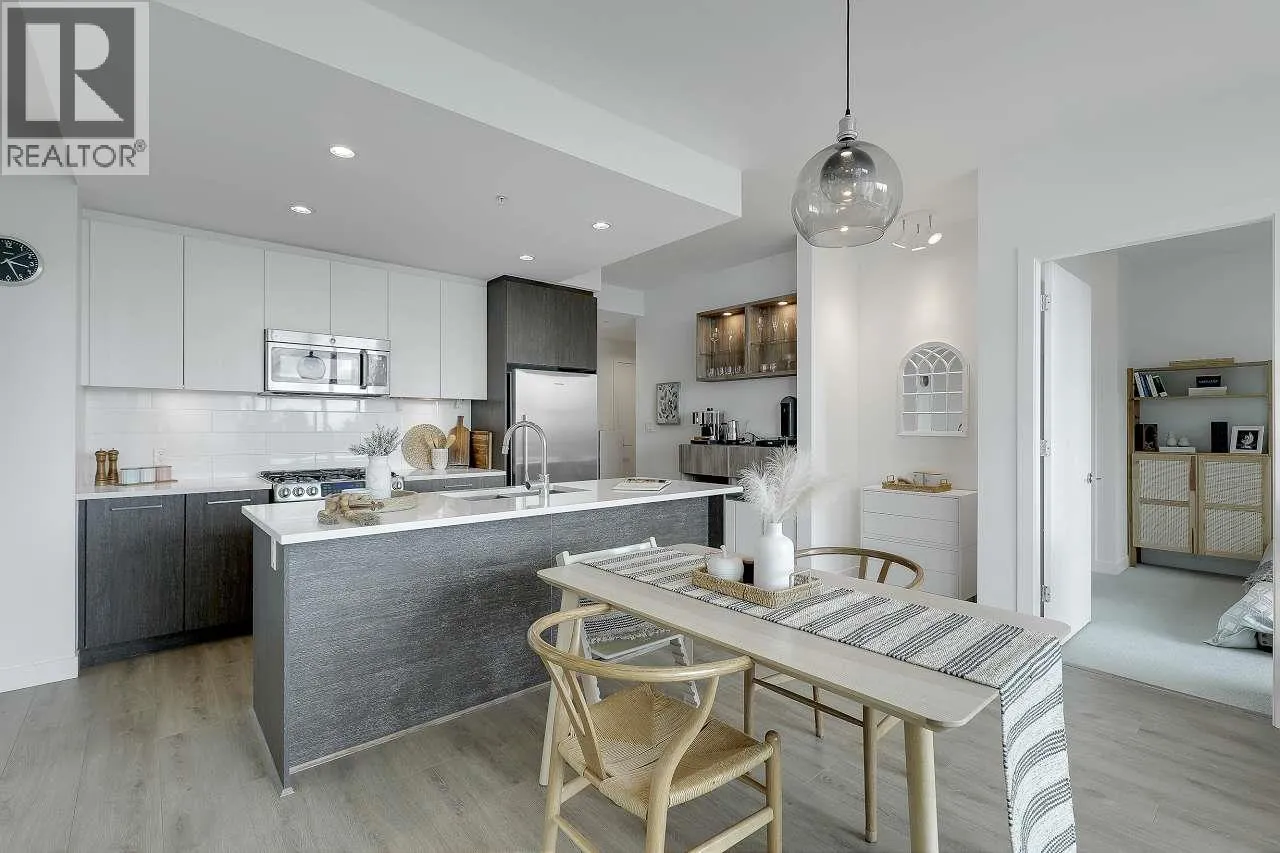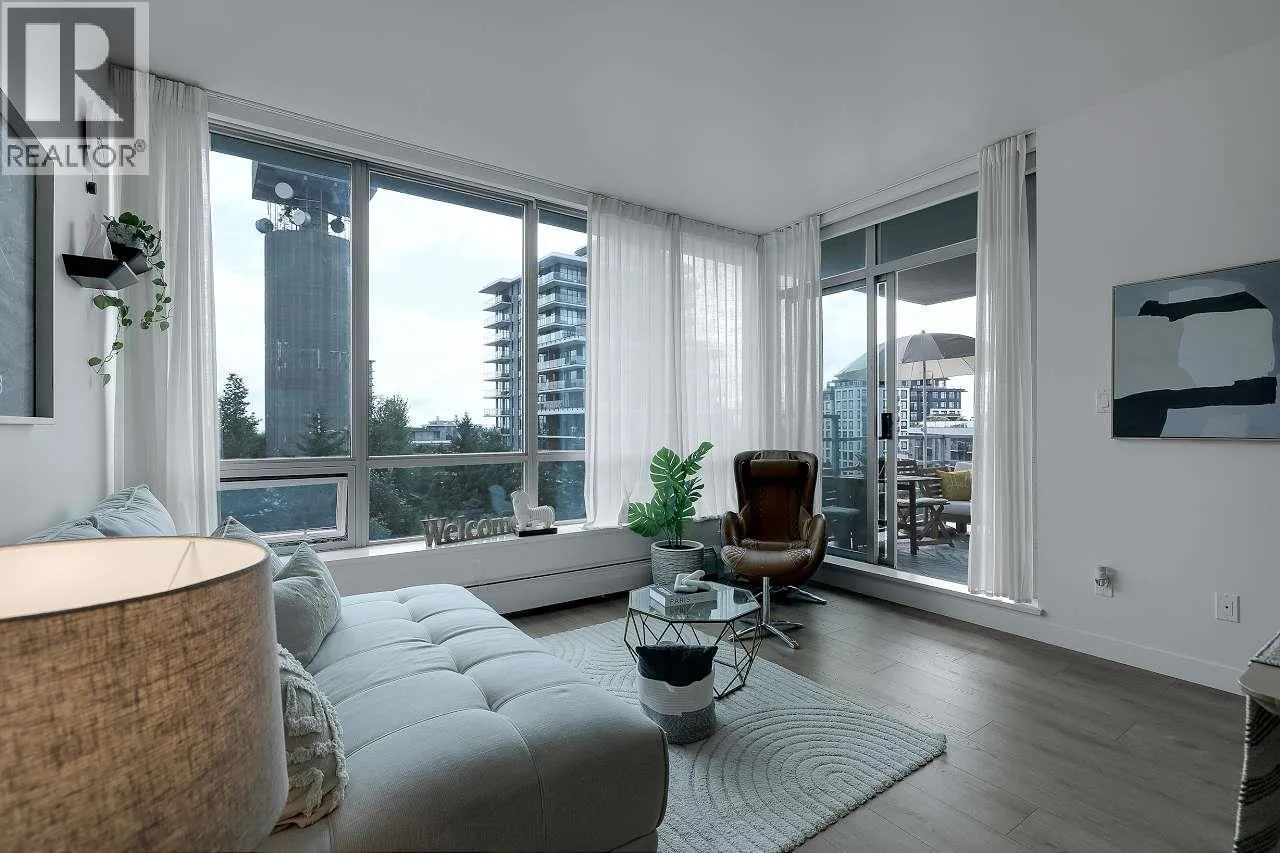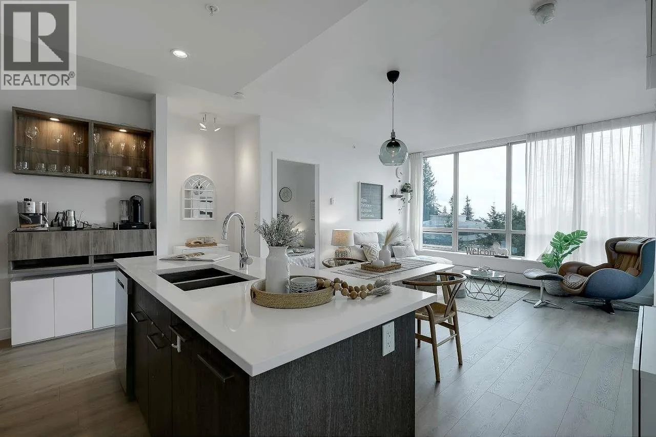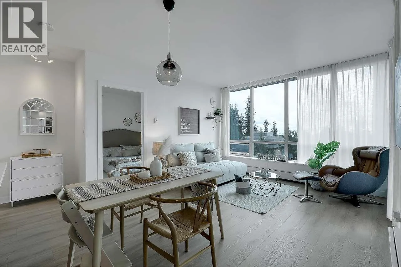 ALTITUDE- SFU's master-planned University District. This bright 3 Bed + 2 Bath + Work station , Southwest CORNER unit has stunning Panoramic Mountain and city Views. NEW laminate flooring (July,2025) in livingroom and kitchen, 9 Ft. ceilings & floor-to-ceiling windows that fill the space with natural light. The two bedrooms are thoughtfully separated by the living/dining area, providing privacy & tranquility, very generous sized. Ample visitor parkings & EV chargers available. Just one block from SFU campus, bus loop, daycare, supermarket, & cafes. Strata fee includes heat , gas and hot water. (id:27476)