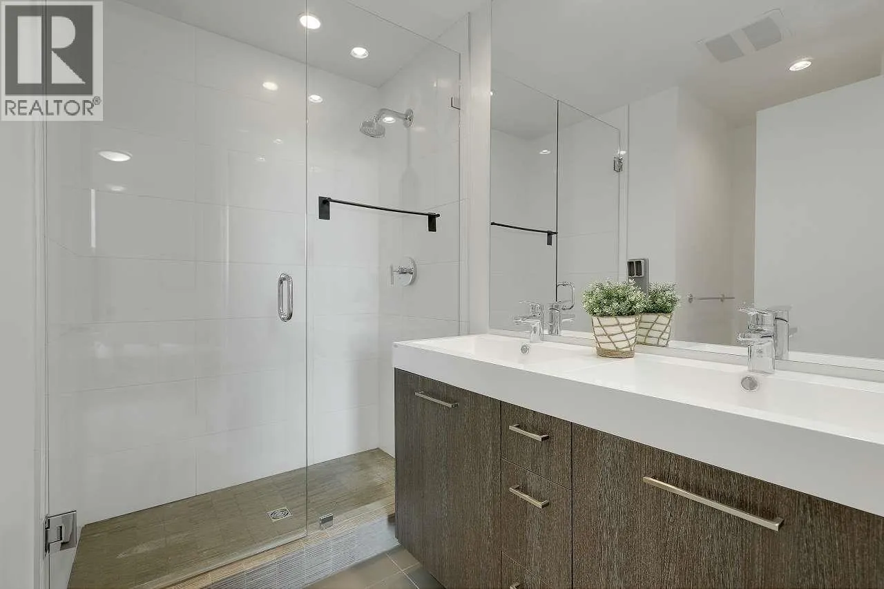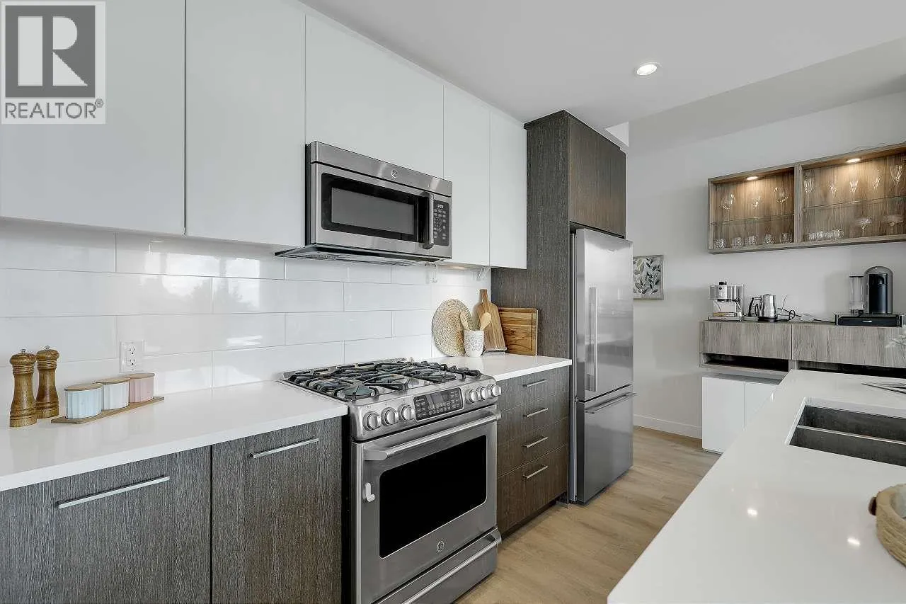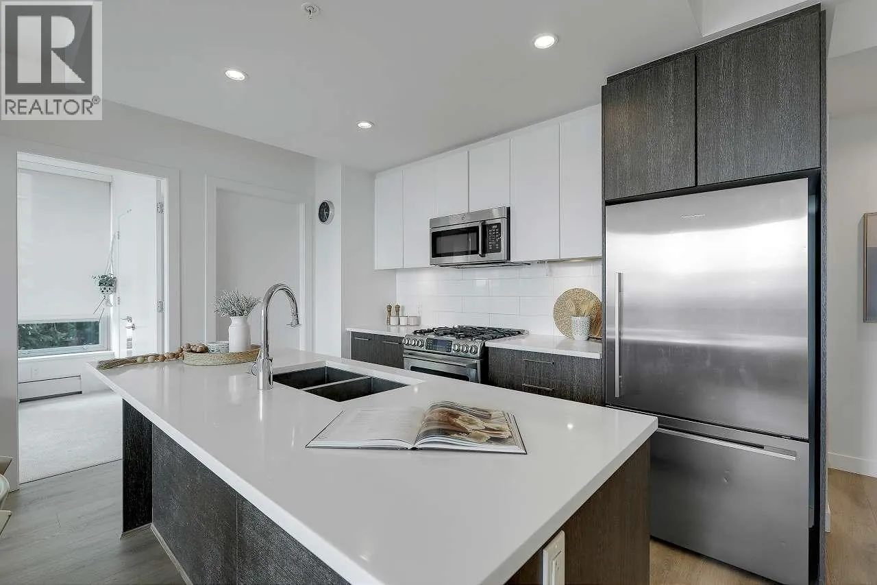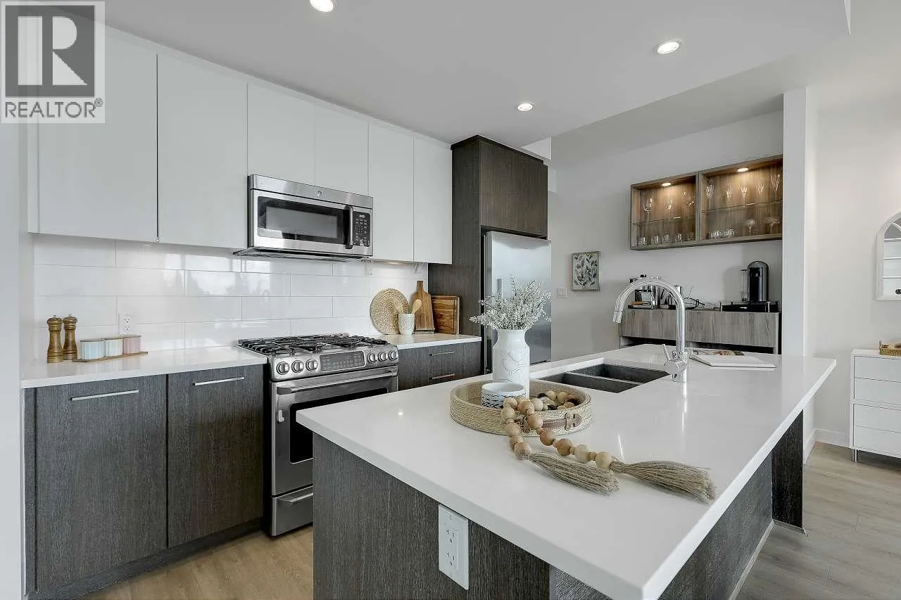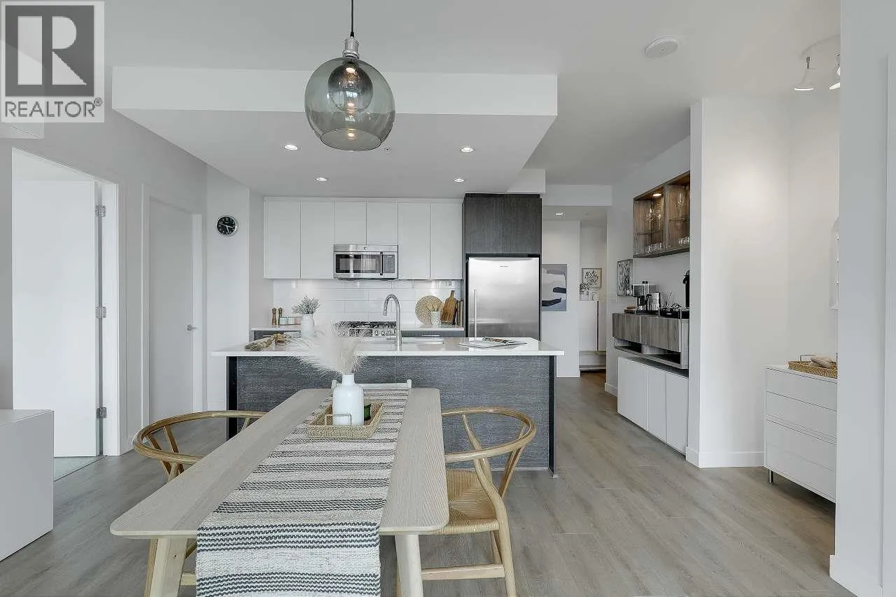 ALTITUDE- SFU's master-planned University District. This bright 3 Bed + 2 Bath + Work station , Southwest CORNER unit has stunning Panoramic Mountain and city Views. NEW laminate flooring (July,2025) in livingroom and kitchen, 9 Ft. ceilings & floor-to-ceiling windows that fill the space with natural light. The two bedrooms are thoughtfully separated by the living/dining area, providing privacy & tranquility, very generous sized. Ample visitor parkings & EV chargers available. Just one block from SFU campus, bus loop, daycare, supermarket, & cafes. Strata fee includes heat , gas and hot water. (id:27476)