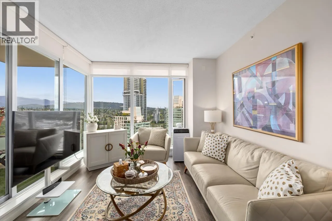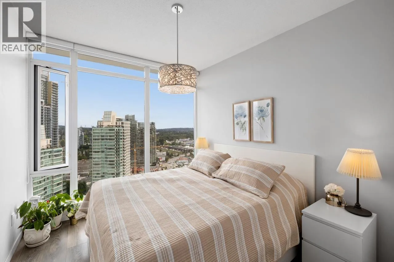 Rarely available 30th-floor east-facing 2 bed 2 bath at Perspectives by Ledingham McAllister! Wake up to breathtaking panoramic views of Mount Baker, city skyline & North Shore mountains through floor-to-ceiling windows. This bright, spacious home features 9´ ceilings, open-concept layout, gourmet kitchen with stone counters & S/S appliances, separated bedrooms for privacy, and premium emission-free engineered flooring. Enjoy a large covered balcony-perfect for relaxing or entertaining. Includes 2 full-size parking stalls + 1 locker-a true rarity in Brentwood! Amenities: 7-day concierge, gym, lounge, party room, EV charging & bike storage. Steps to The Amazing Brentwood, SkyTrain, shops & dining. Pet & rental friendly! (id:27476)